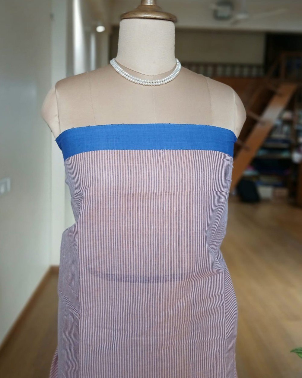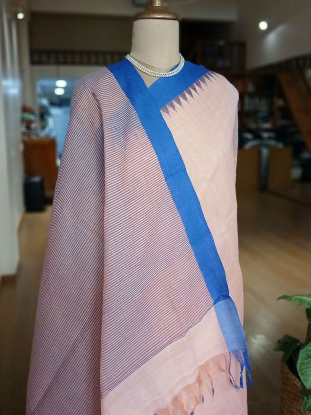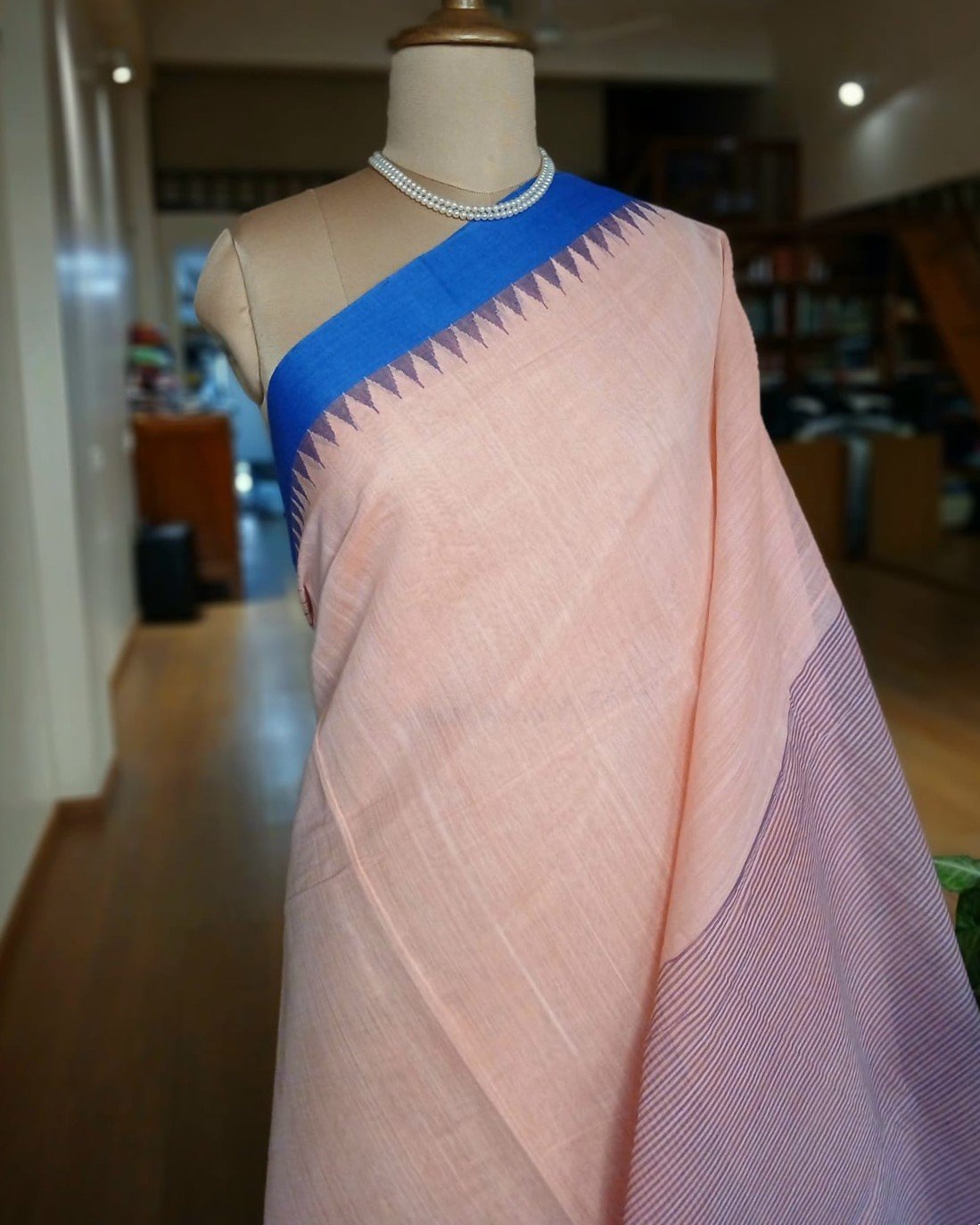 Ponduru handspun handwoven cotton saree with kuppadam border, contrast palla and blousepiece. See more details below.