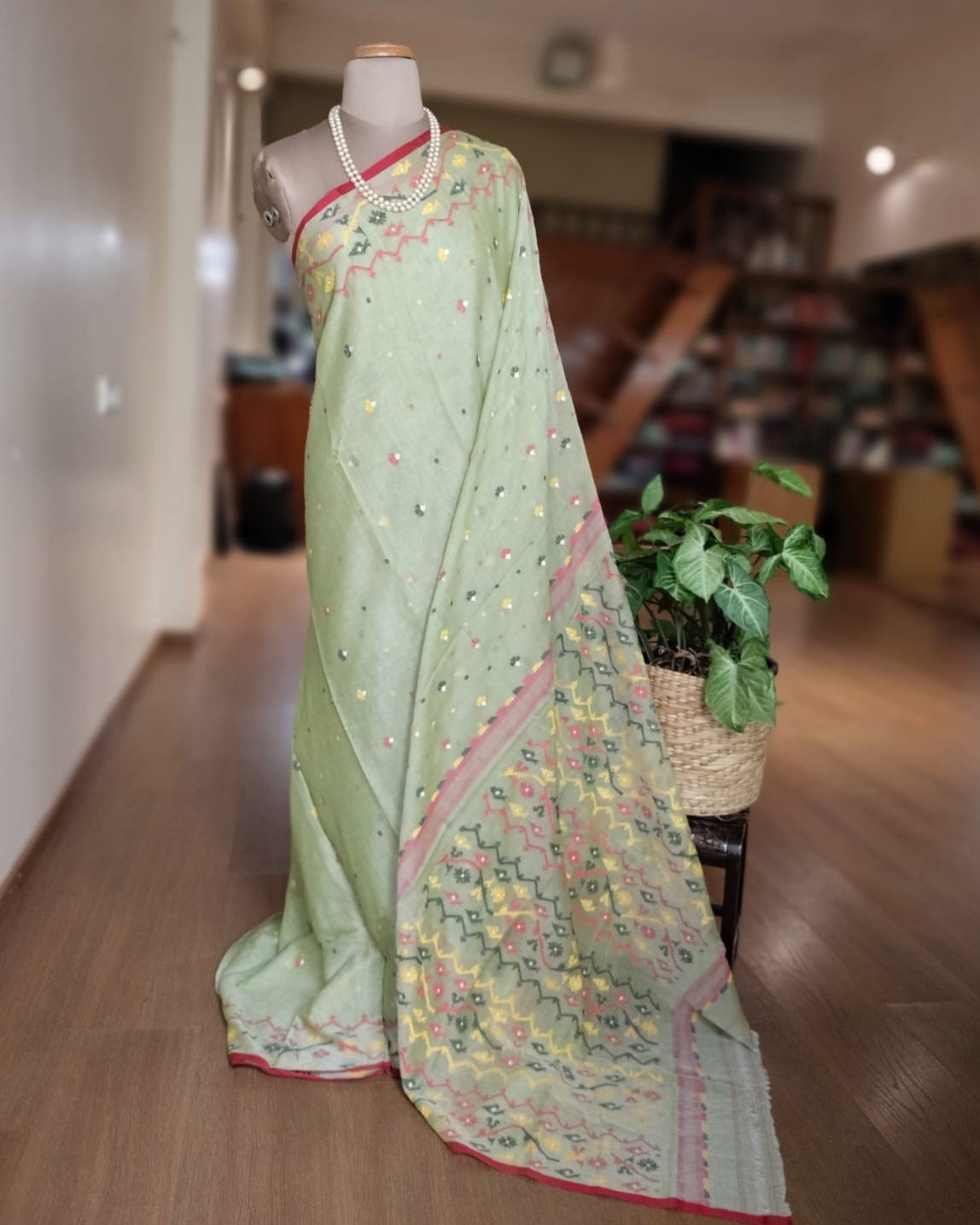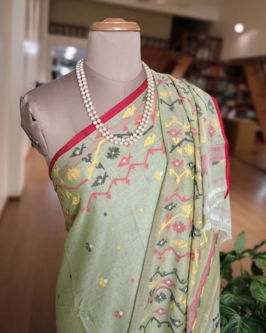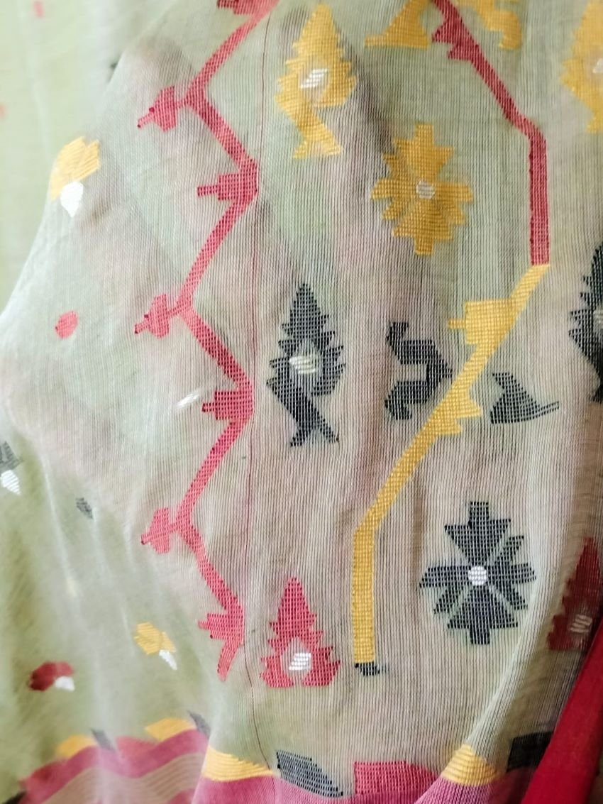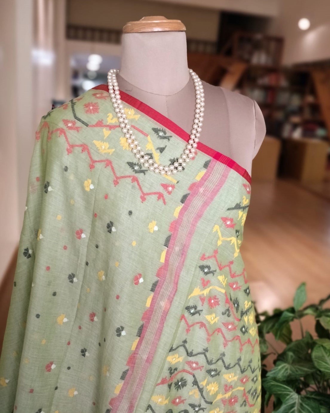 Pujo special: Fine Handweave Jamdani Cotton saree from Phulia in West Bengal.