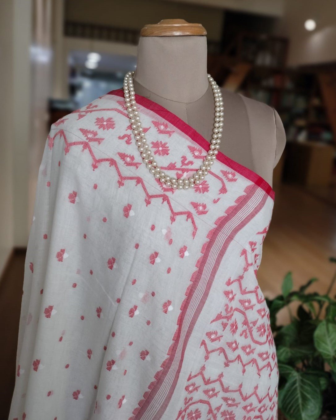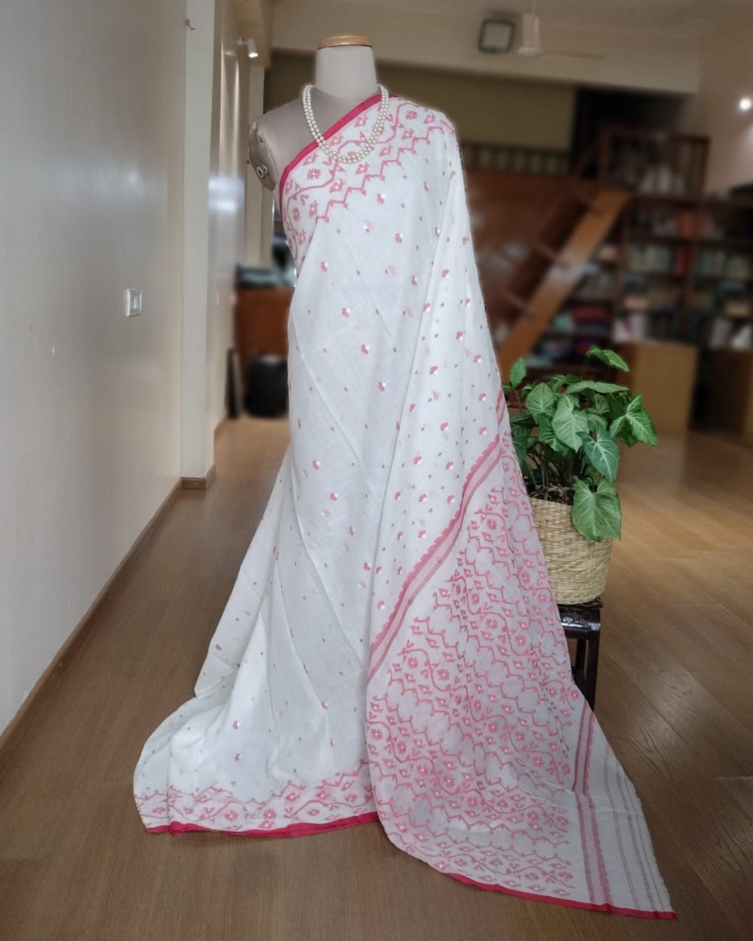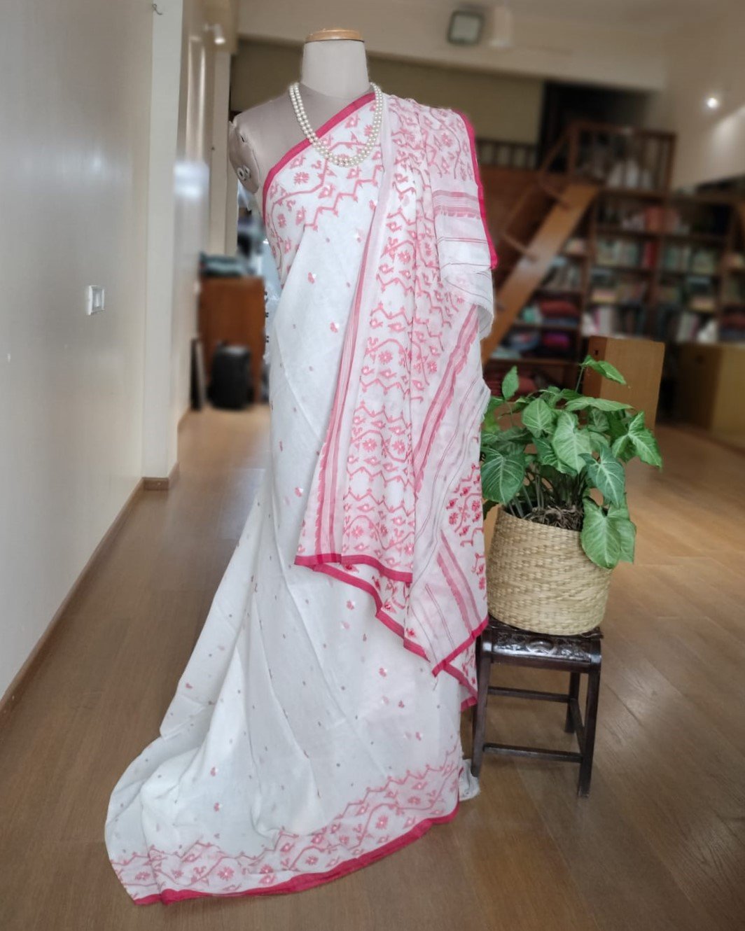 Pujo special: Fine Handweave Jamdani Cotton saree from Phulia in West Bengal.