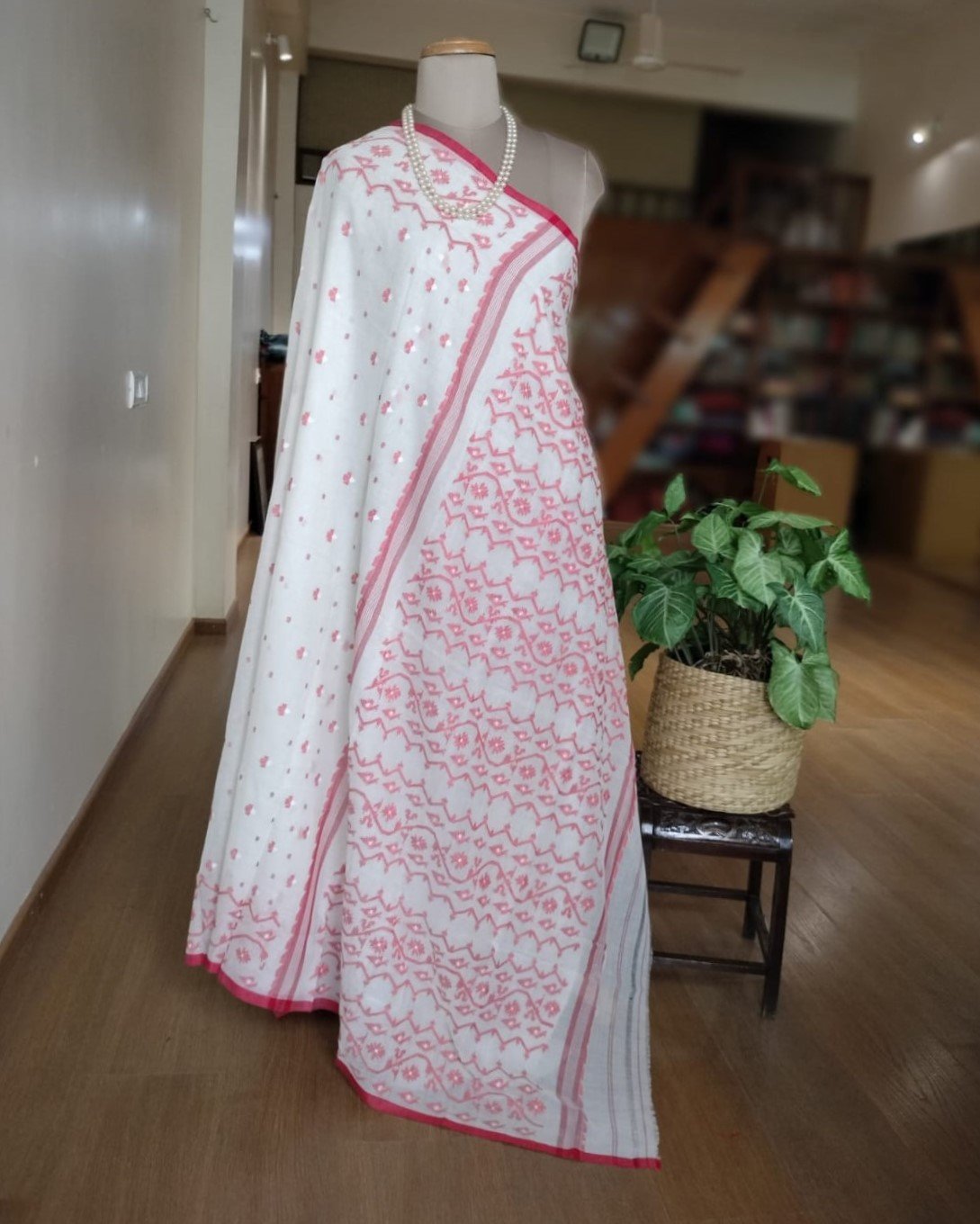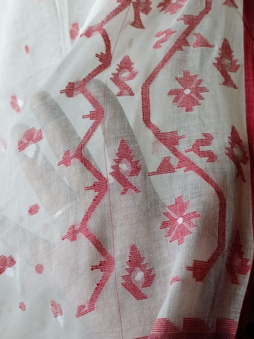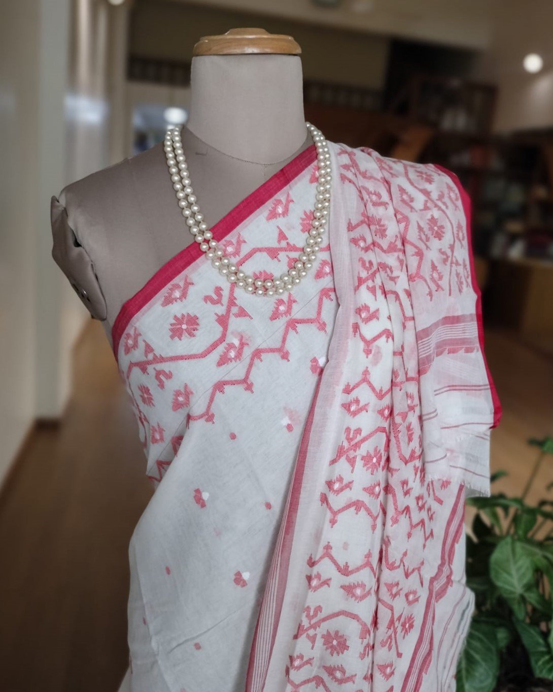 Pujo special: Fine Handweave Jamdani Cotton saree from Phulia in West Bengal.