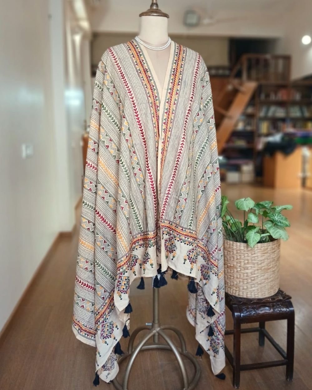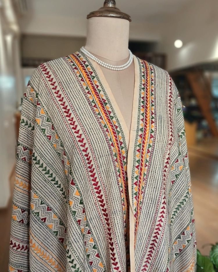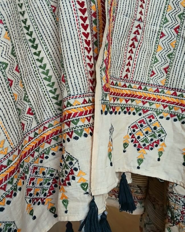 Pure Cotton Kantha Dupatta with hand embroidery from Santiniketan in West Bengal.