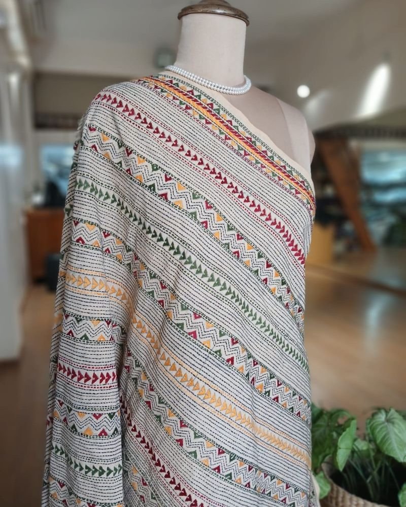 Pure Cotton Kantha Dupatta from Santiniketan.