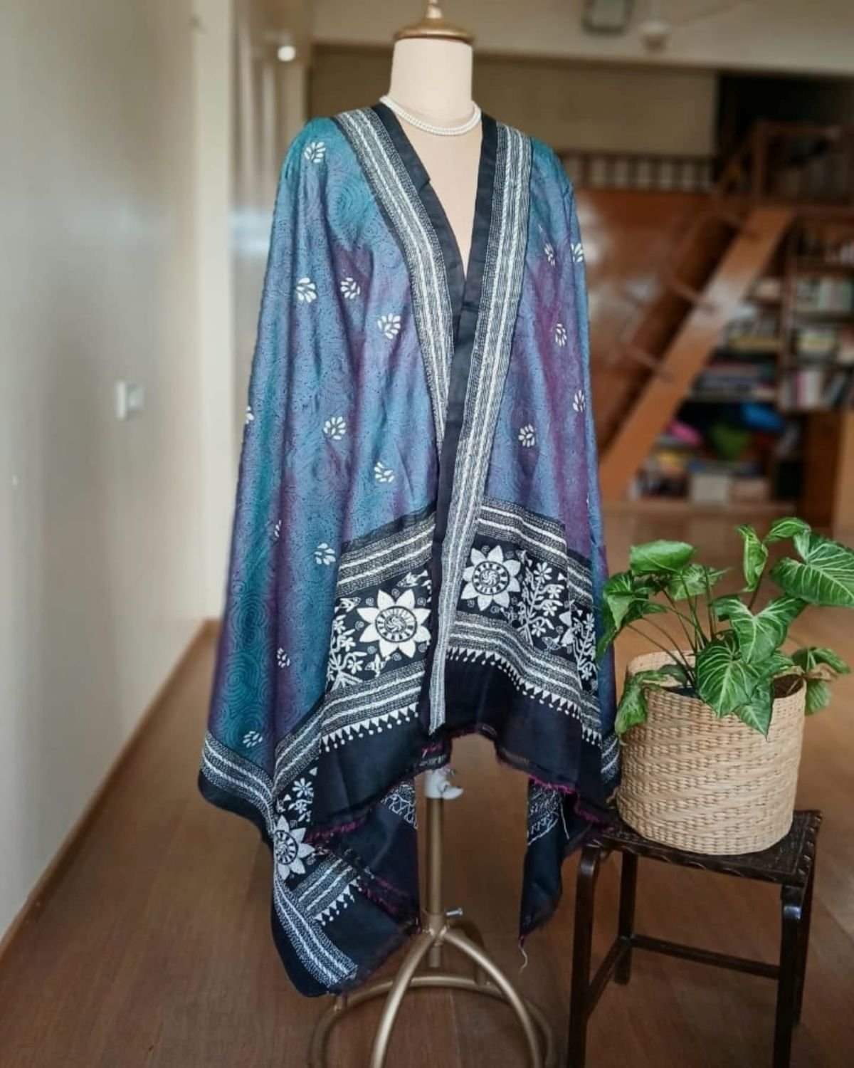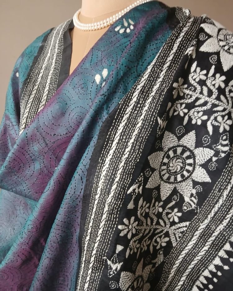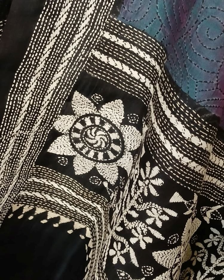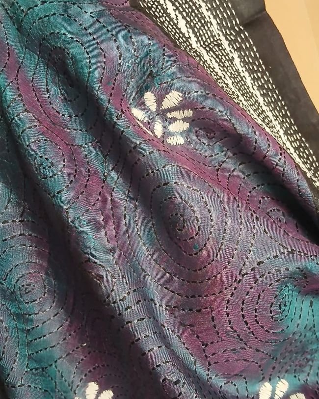Pure Silk Kantha Dupatta from Santiniketan. Beautifully hand embroidered, on good quality Bisnupuri silk. Lovely to drape.