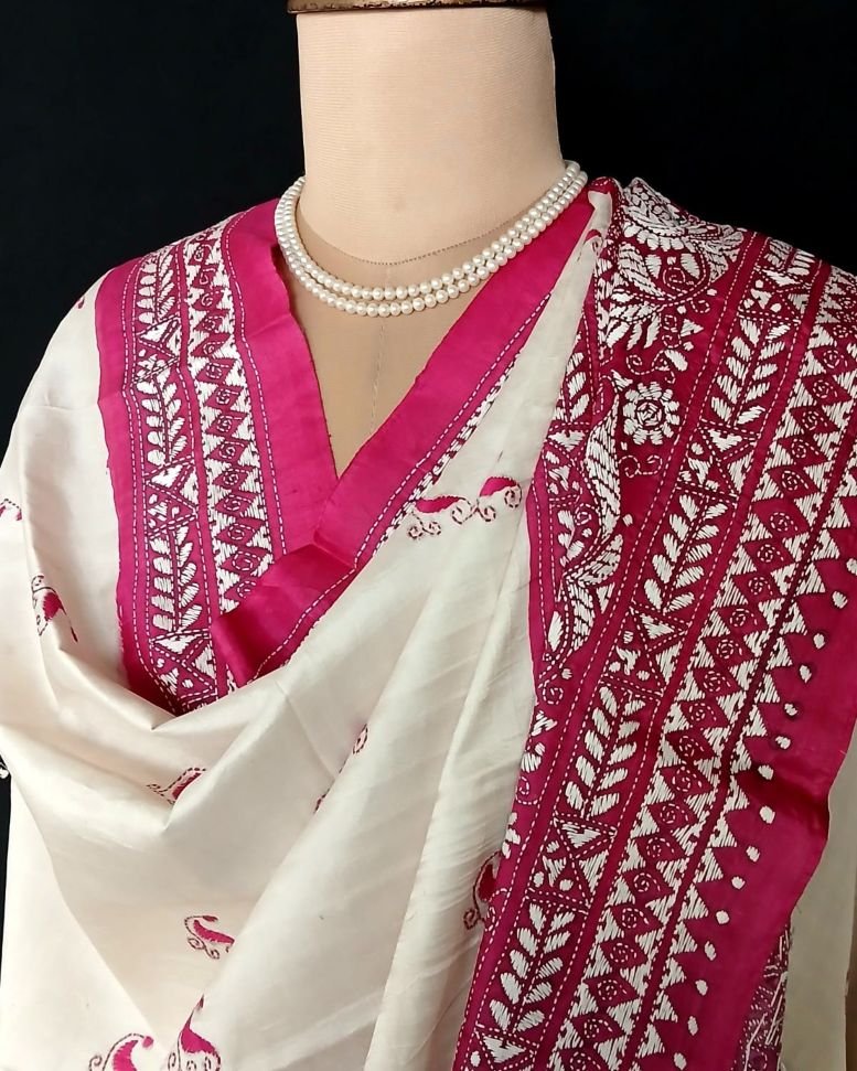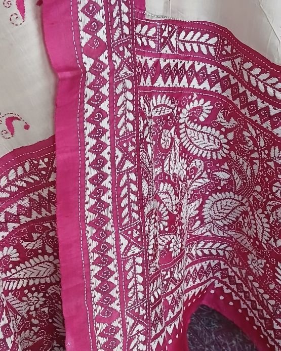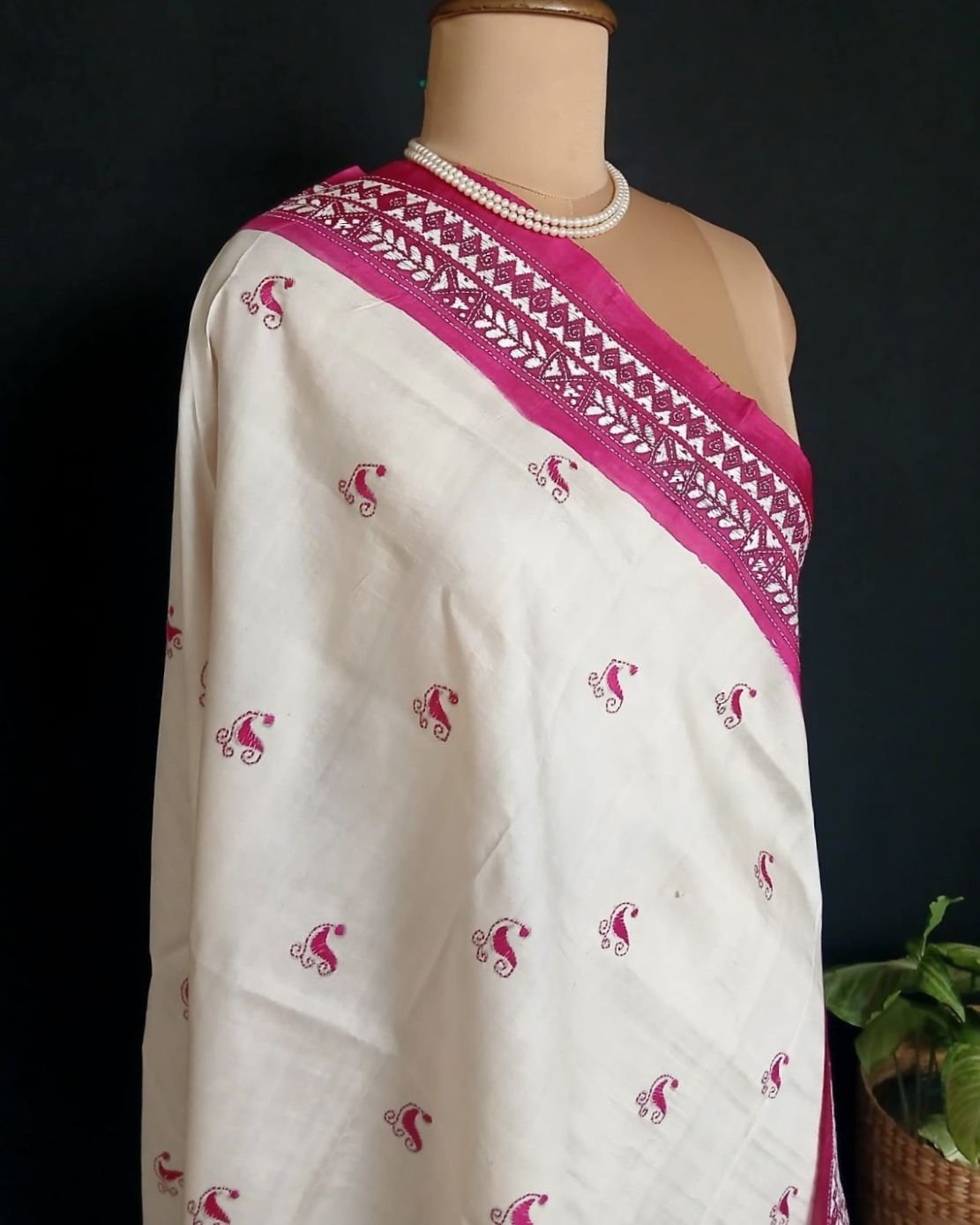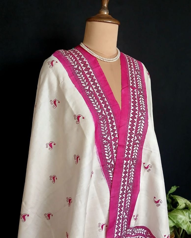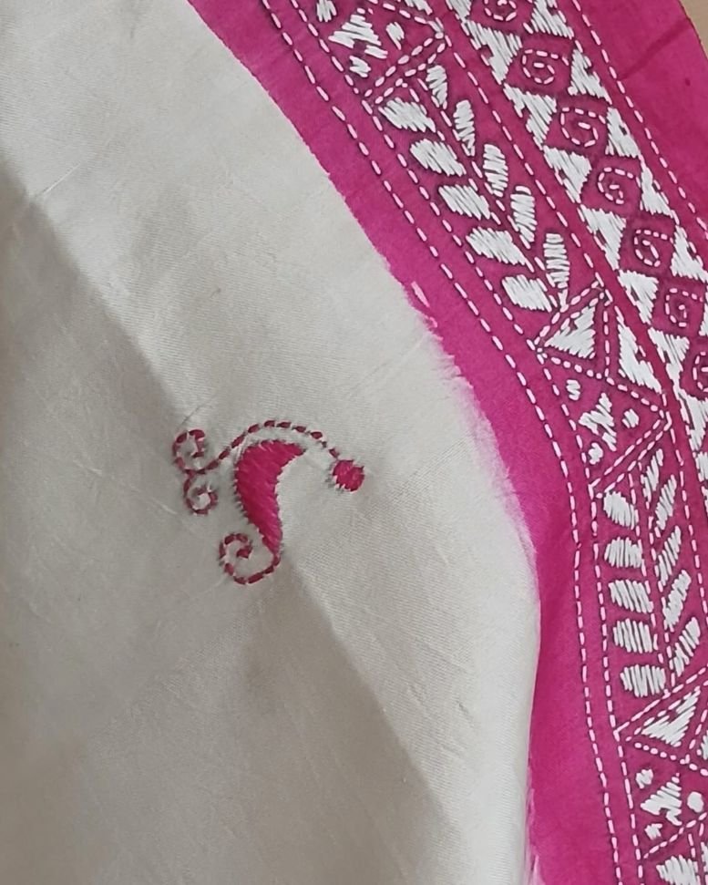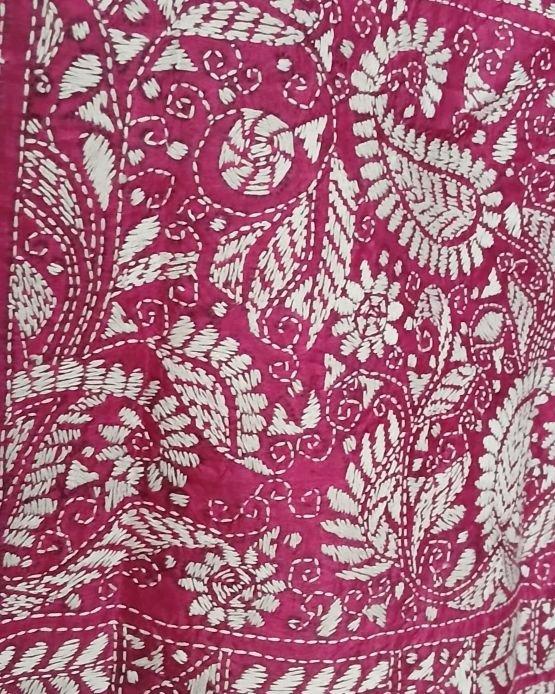 Pure Silk Kantha Dupatta from Santiniketan. Beautifully hand embroidered, on good quality Bisnupuri silk. Lovely to drape.