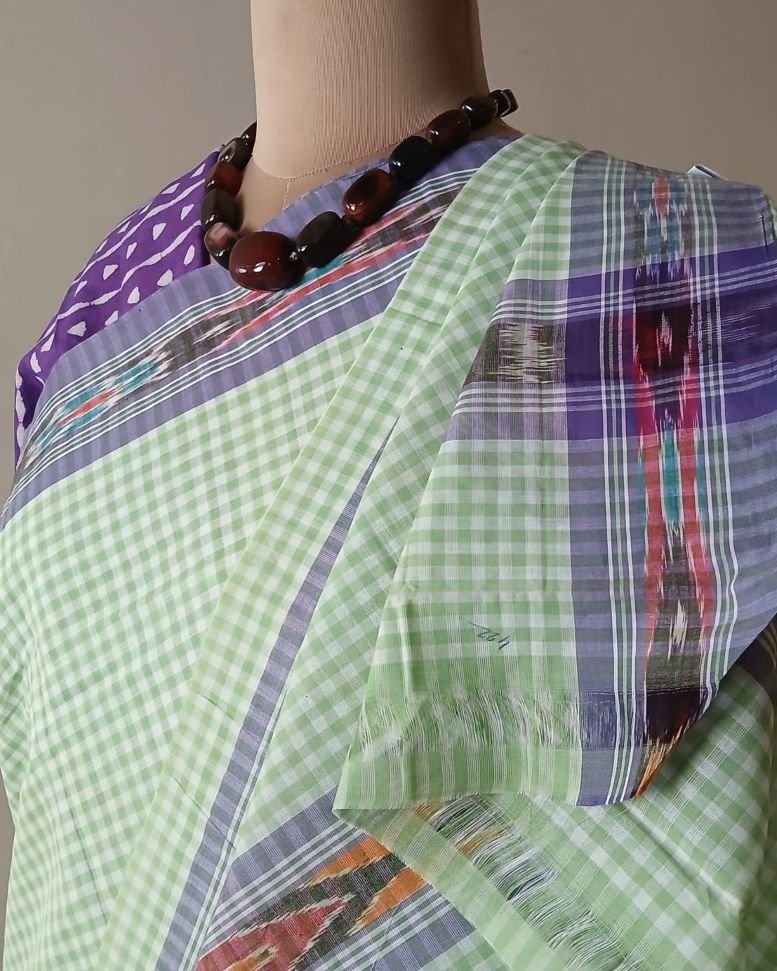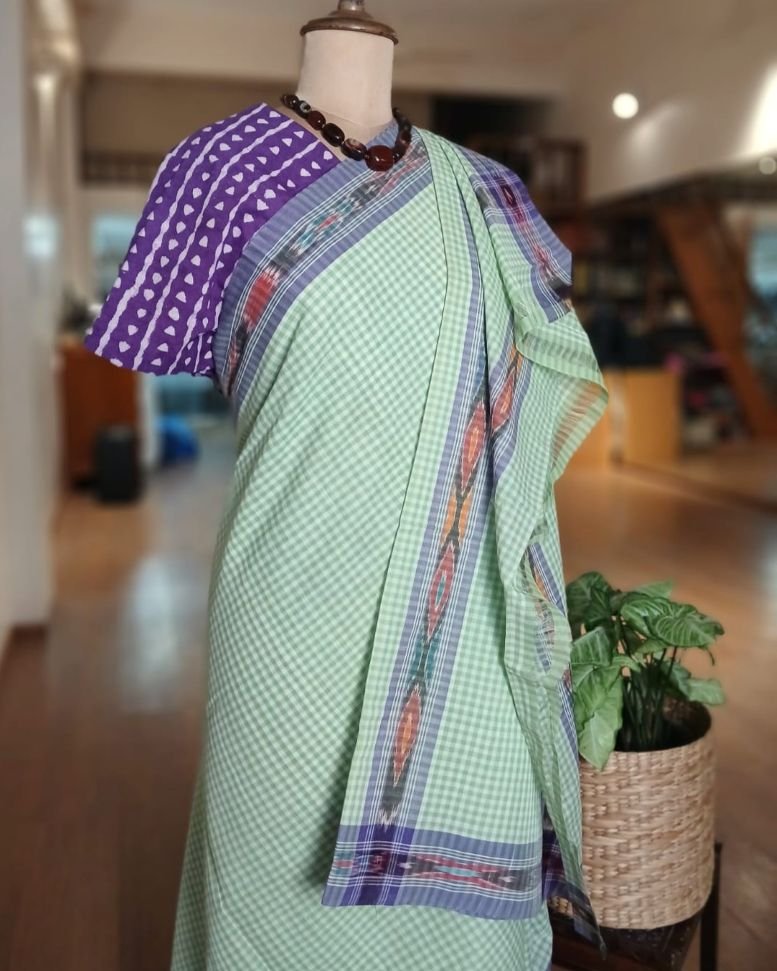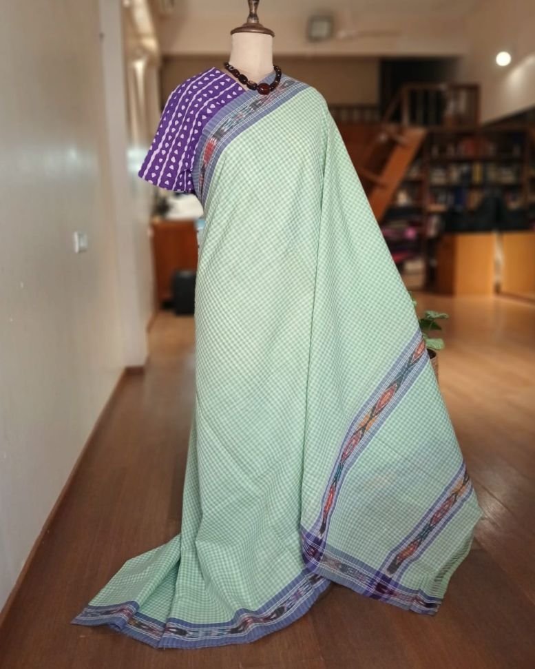 Perfect for daily wear! Handwoven soft cotton saree from Rajahmundry in Andhra Pradesh. It has ikat borders and Ikat palla.