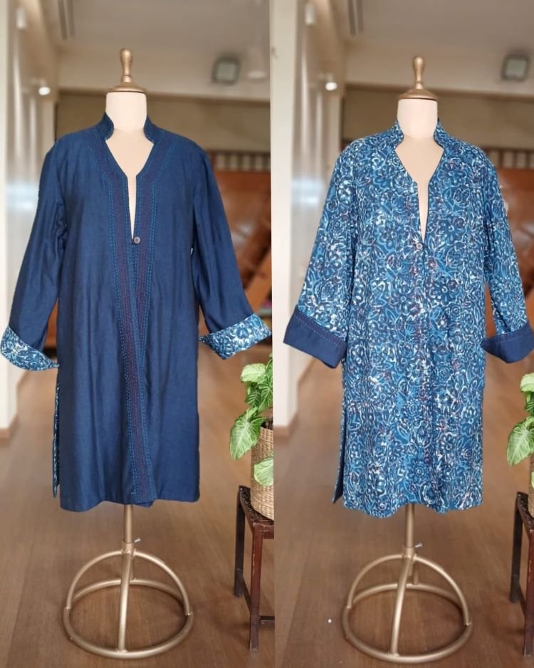 Reversible Cotton Dabu Handblock Print Jacket.