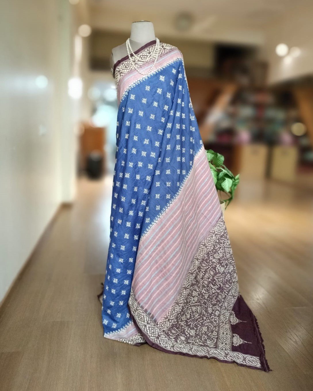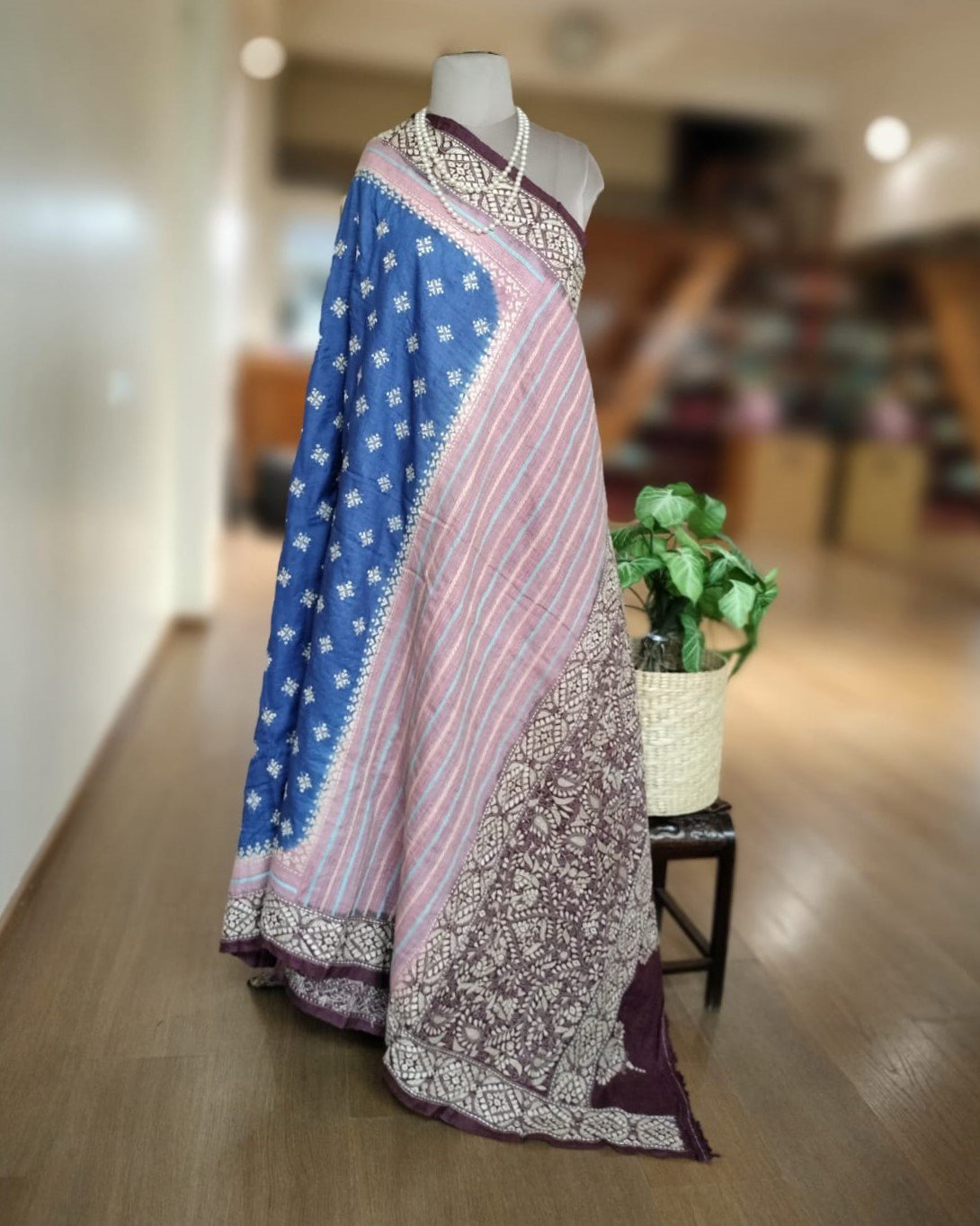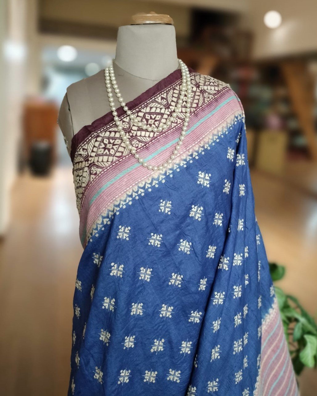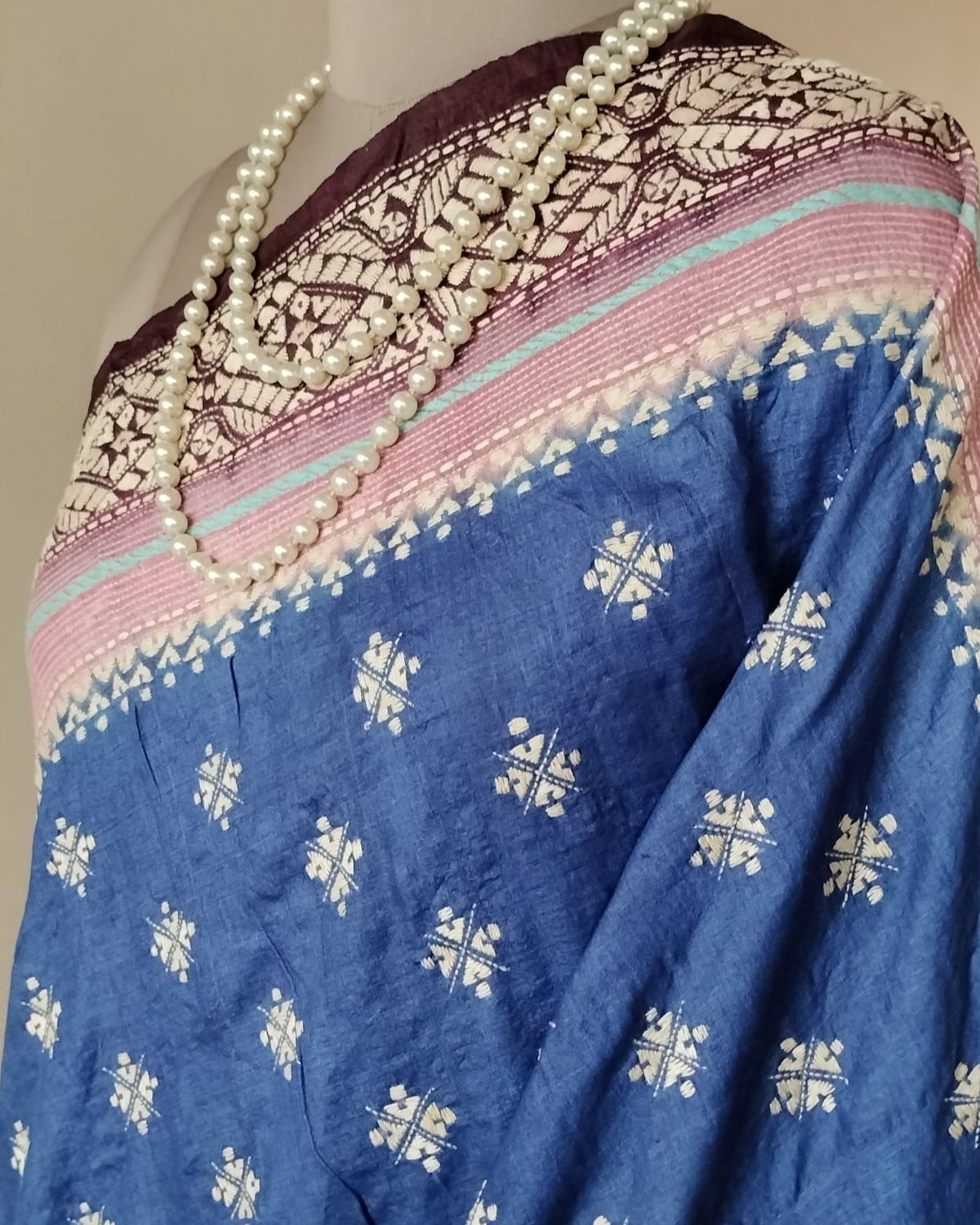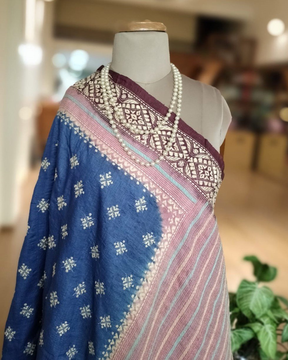 Santiniketan Kantha on Tussar Silk from the talented Padma Shri Takdira Begum. She has numerous awards for her craft, including the National Award, the Shilp Guru award, and most recently, the Padma Shri.