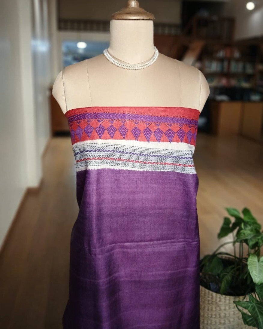 High quality Santiniketan Kantha Embroidery on soft flowing Tussar Silk.