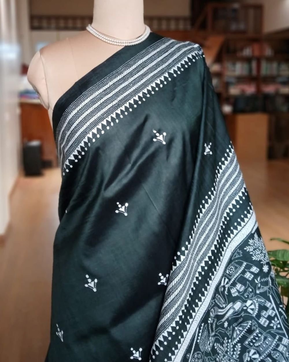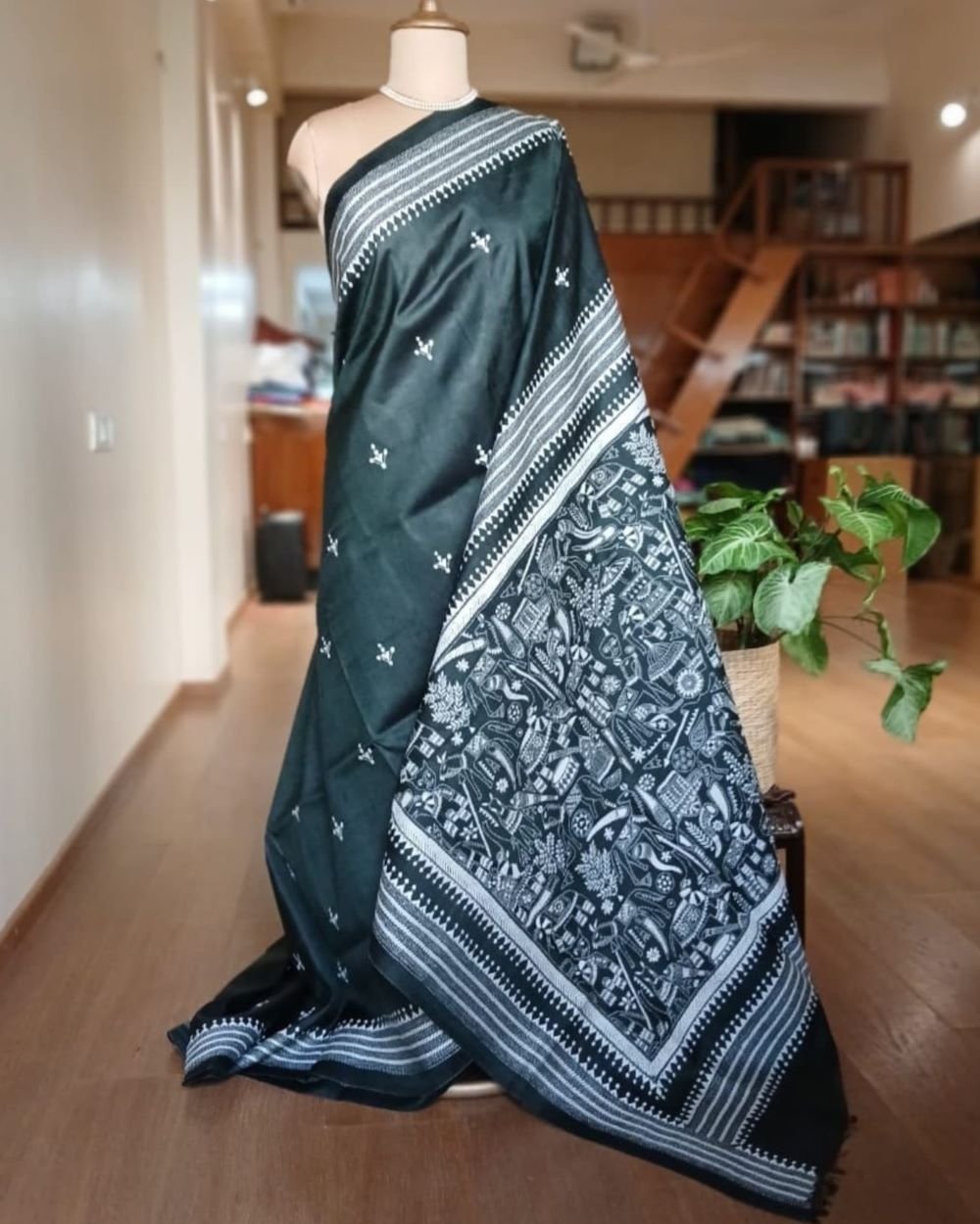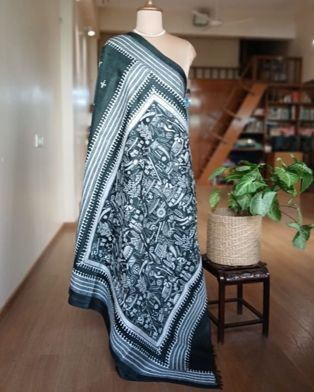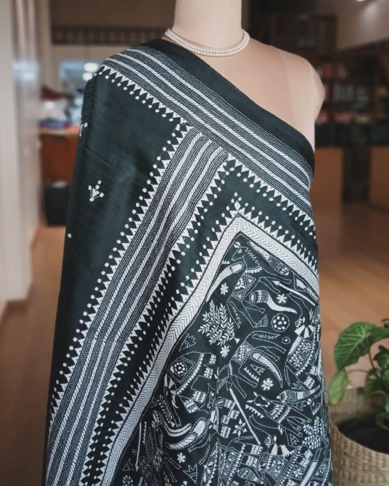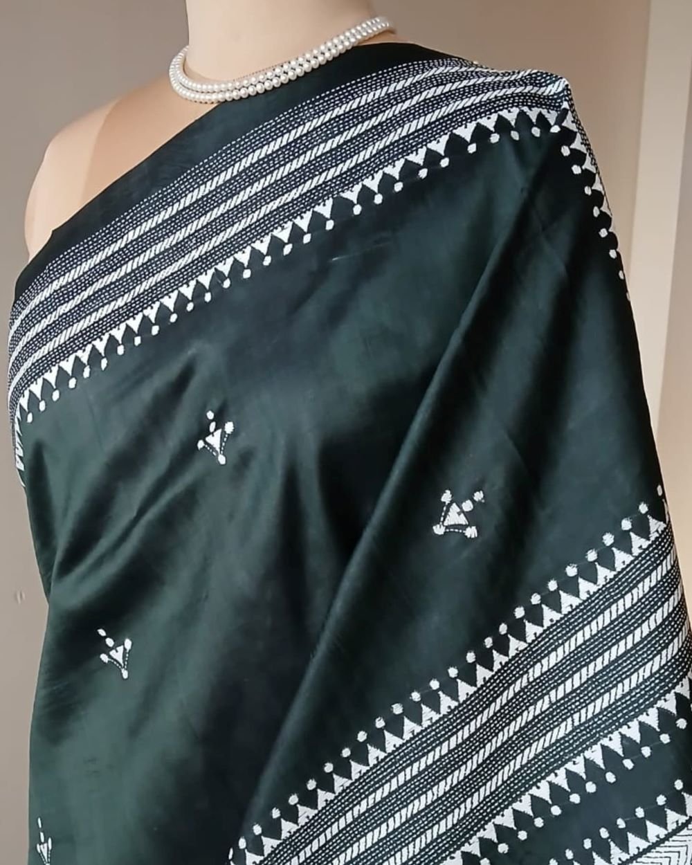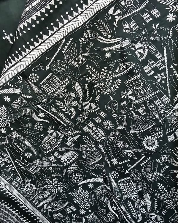 Santiniketan hand-embroidered kantha saree. The base material is pure Bisnupuri silk.