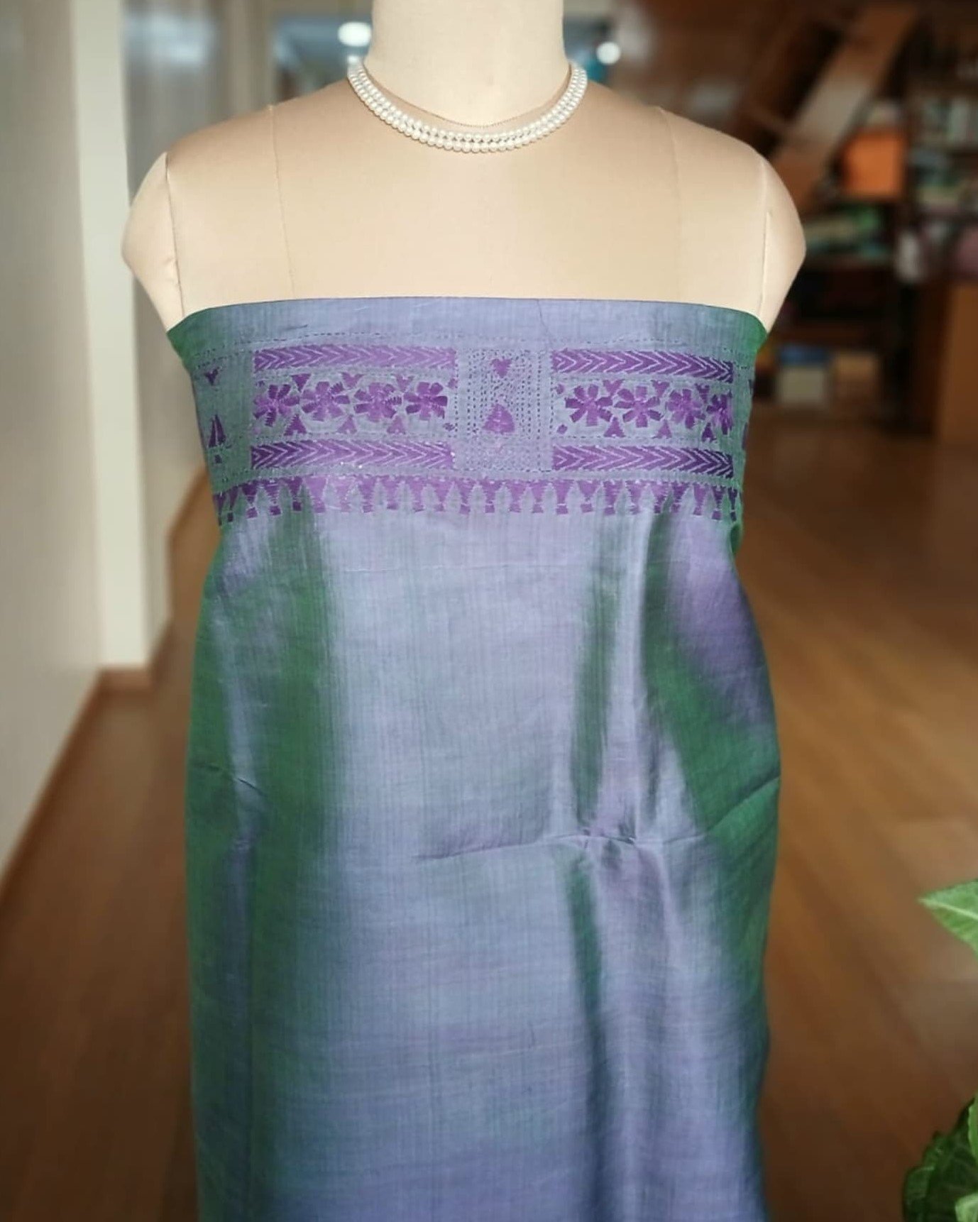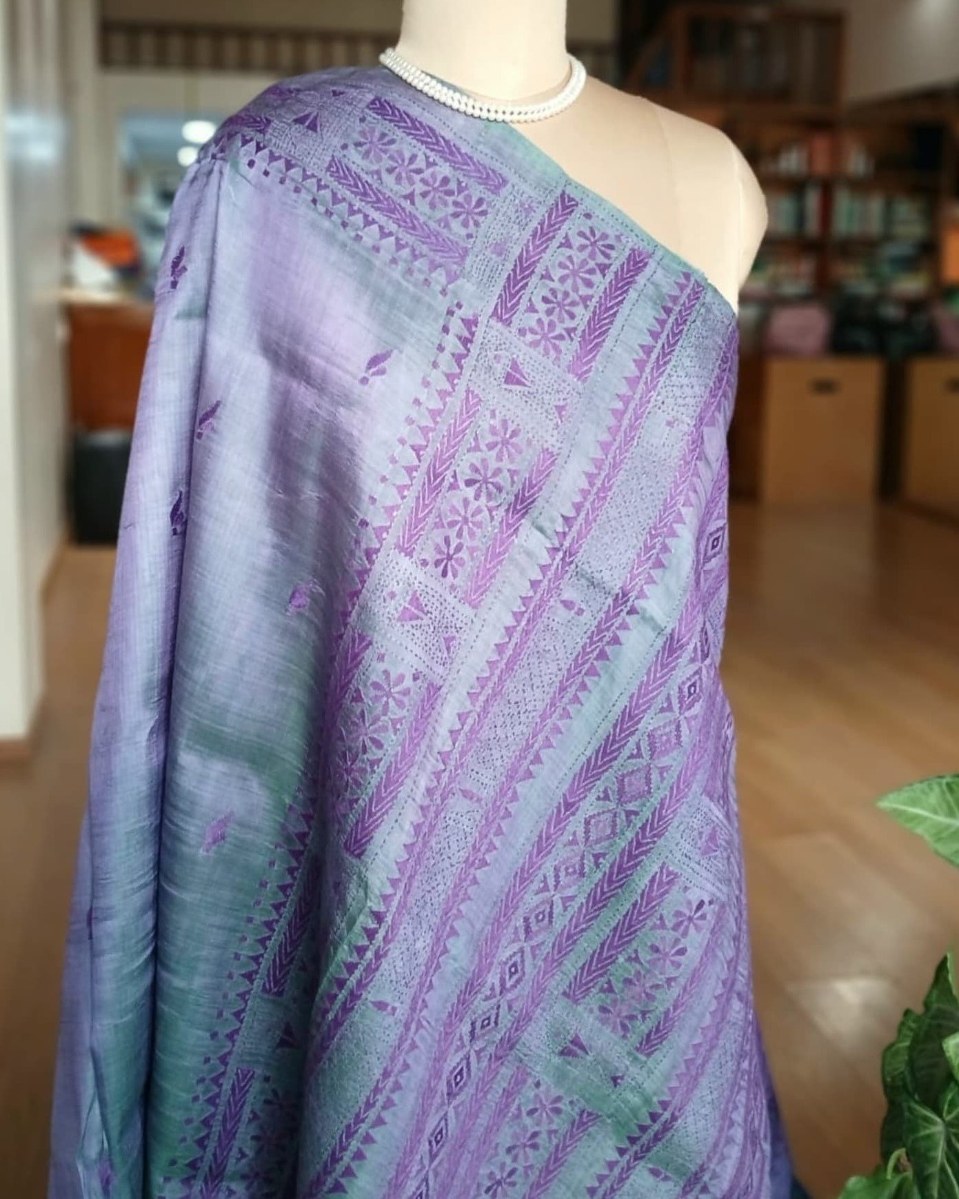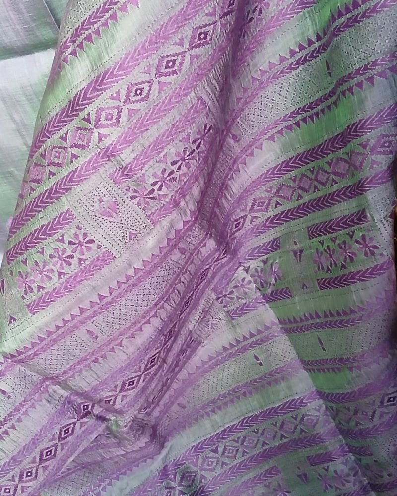 Santiniketan hand-embroidered kantha saree. The base material is pure Bisnupuri silk.