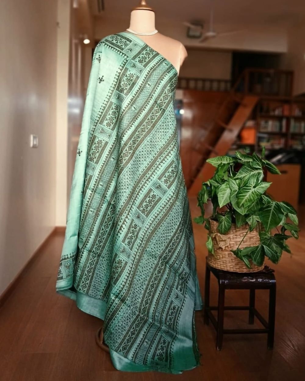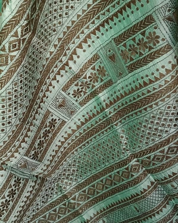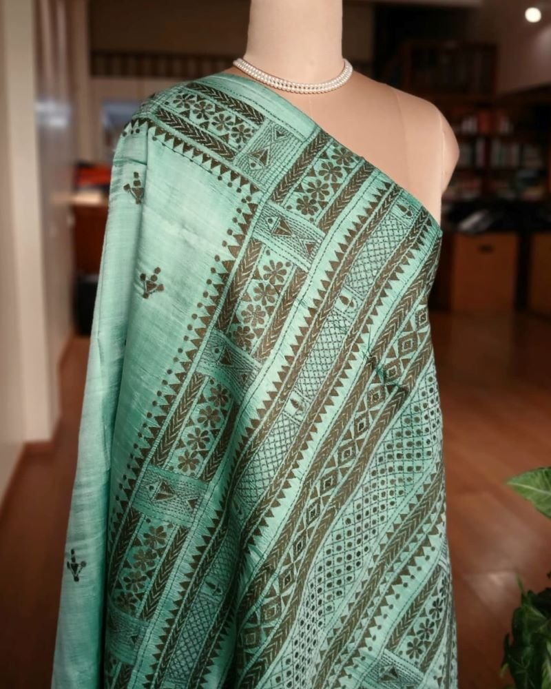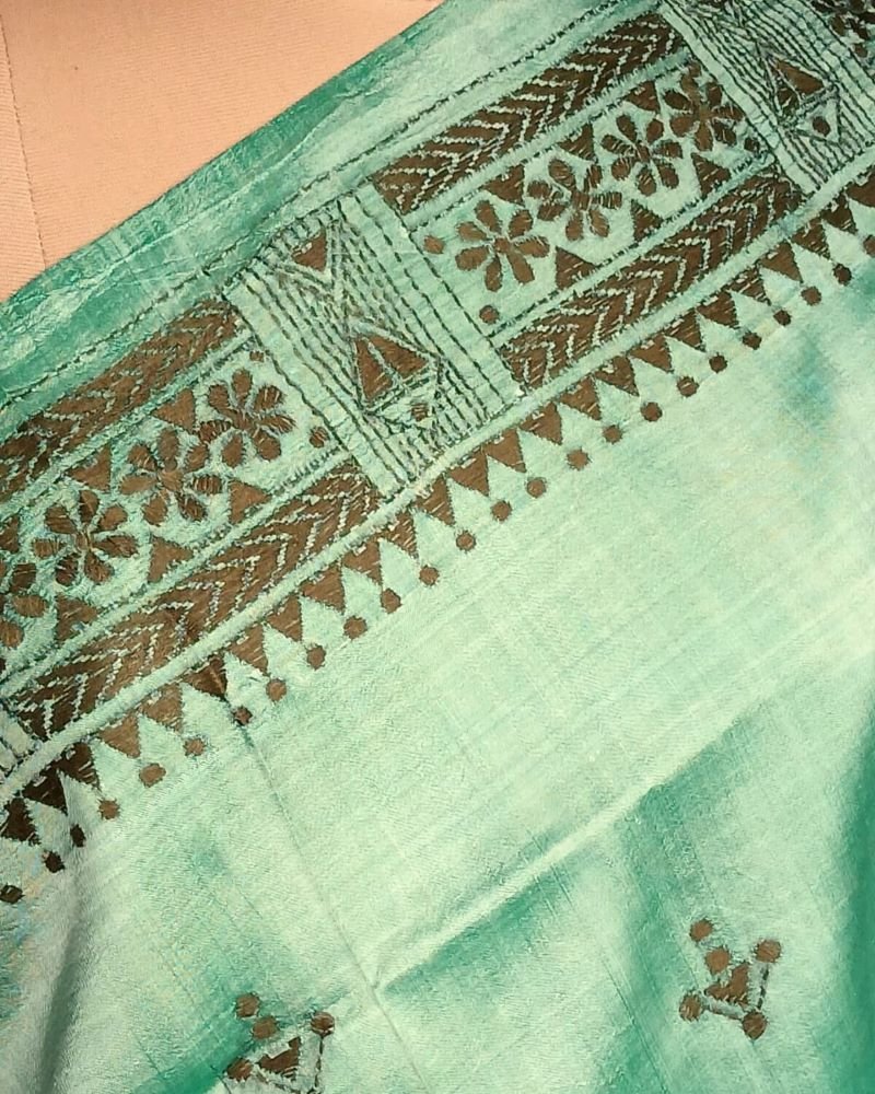 Santiniketan hand-embroidered kantha saree. The base material is pure Bisnupuri silk.