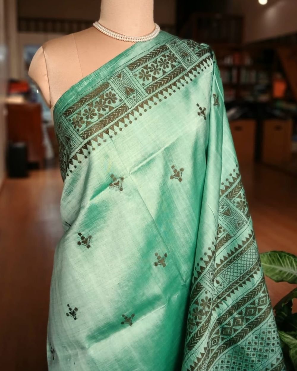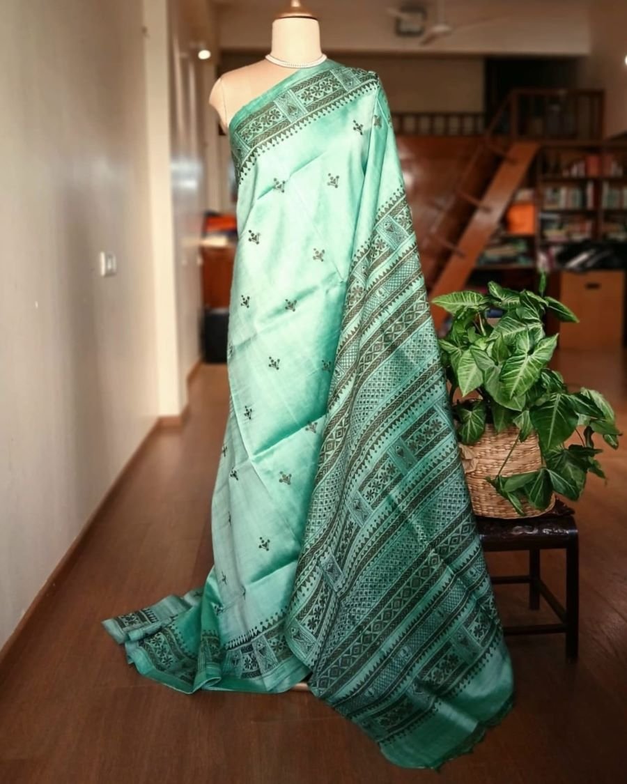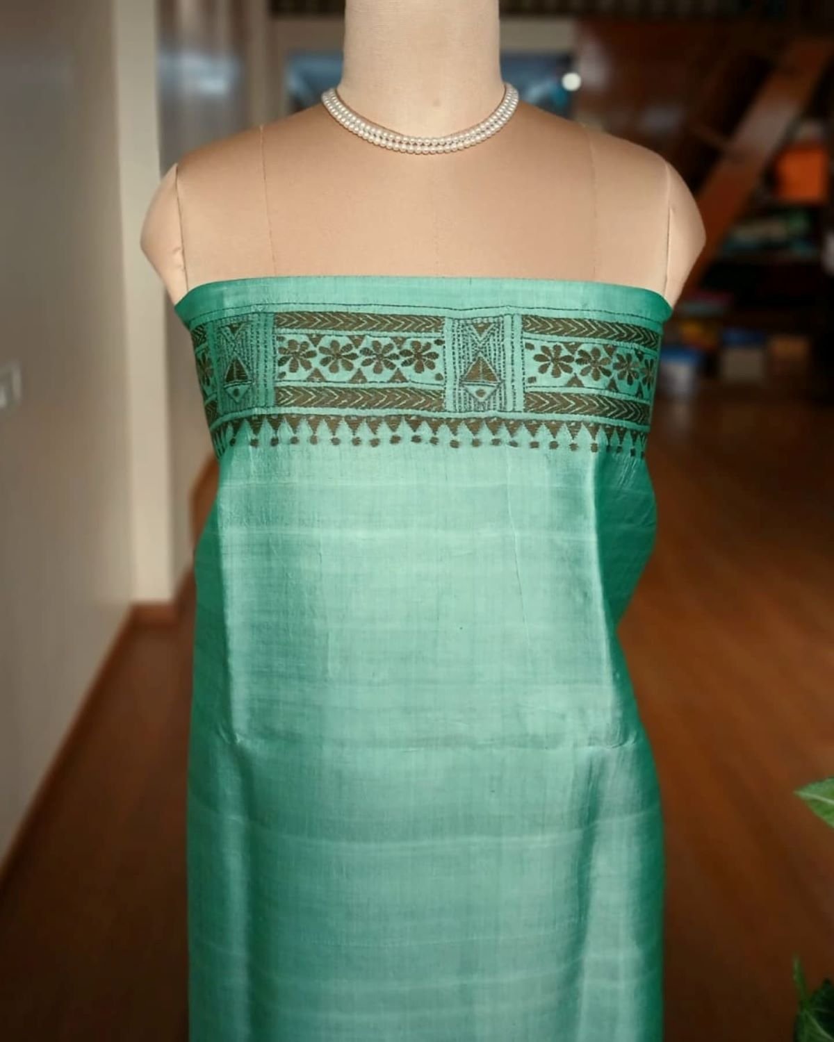 Santiniketan hand-embroidered kantha saree. The base material is pure Bisnupuri silk.