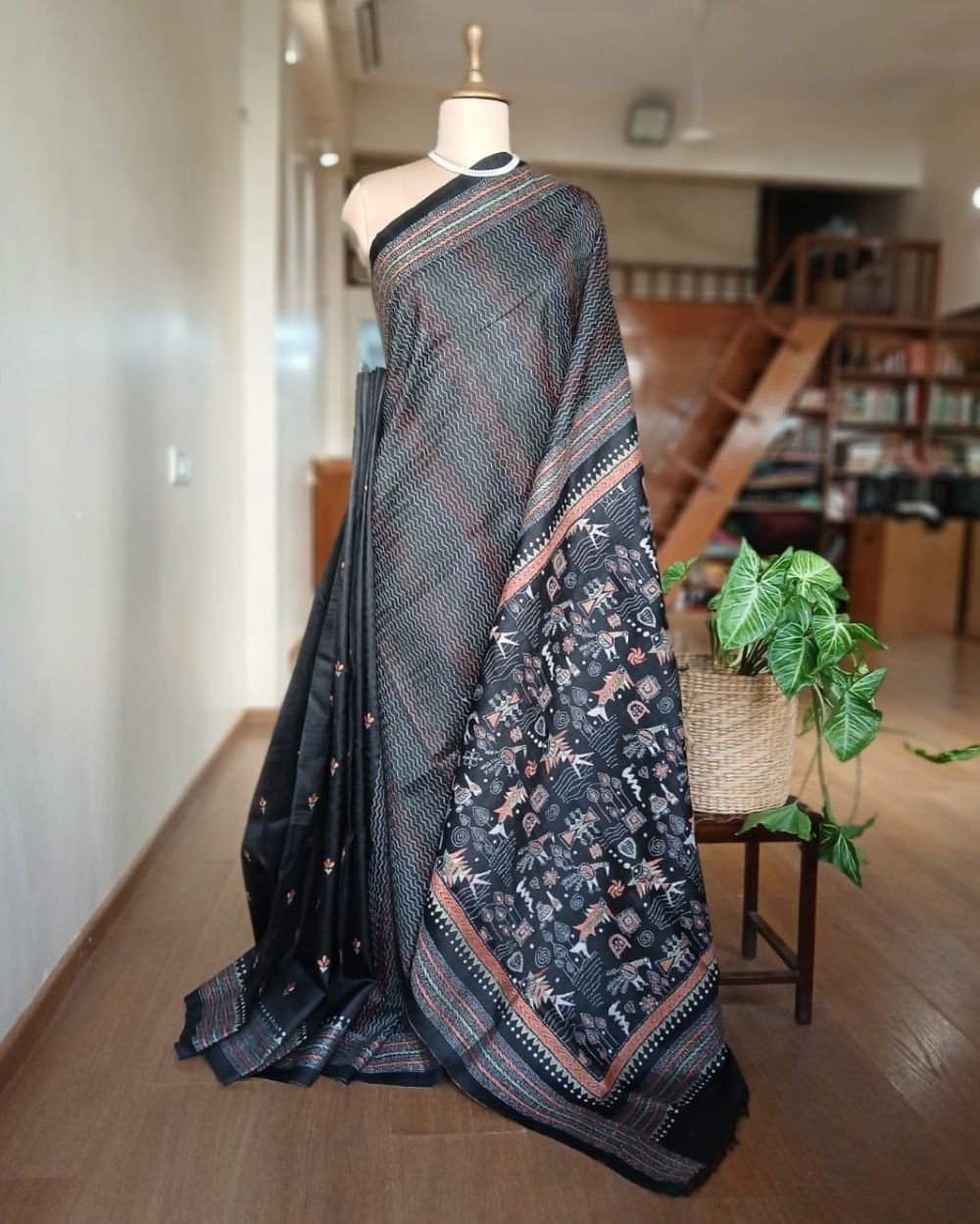 Hand embroidered Santiniketan Kantha Saree in pure Bisnupuri silk. See more details below.
