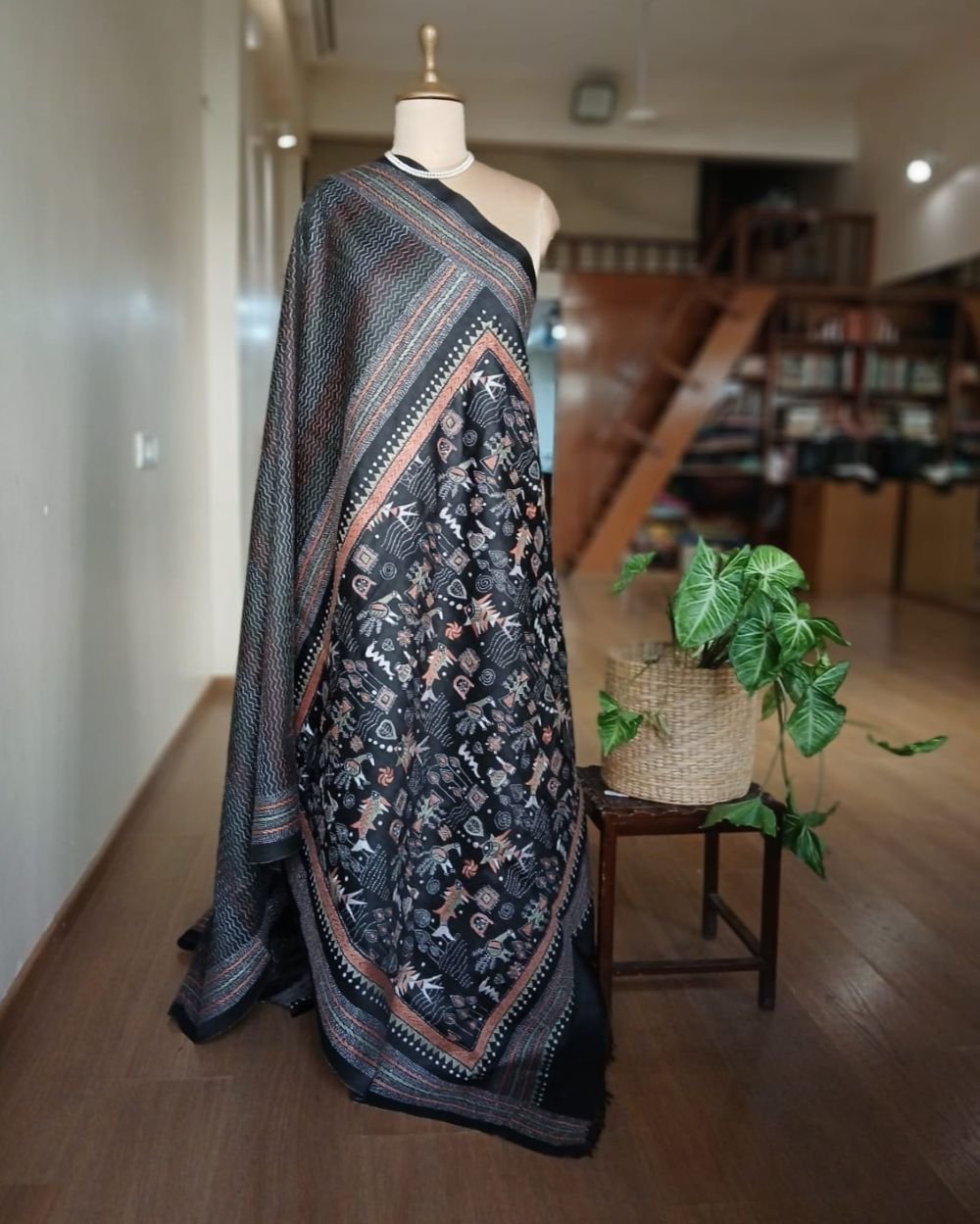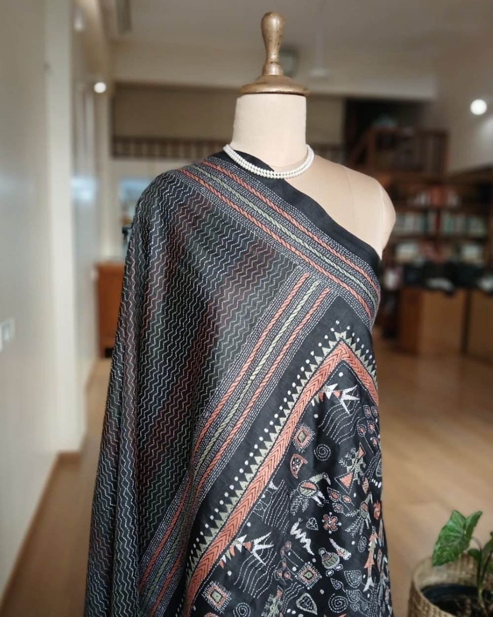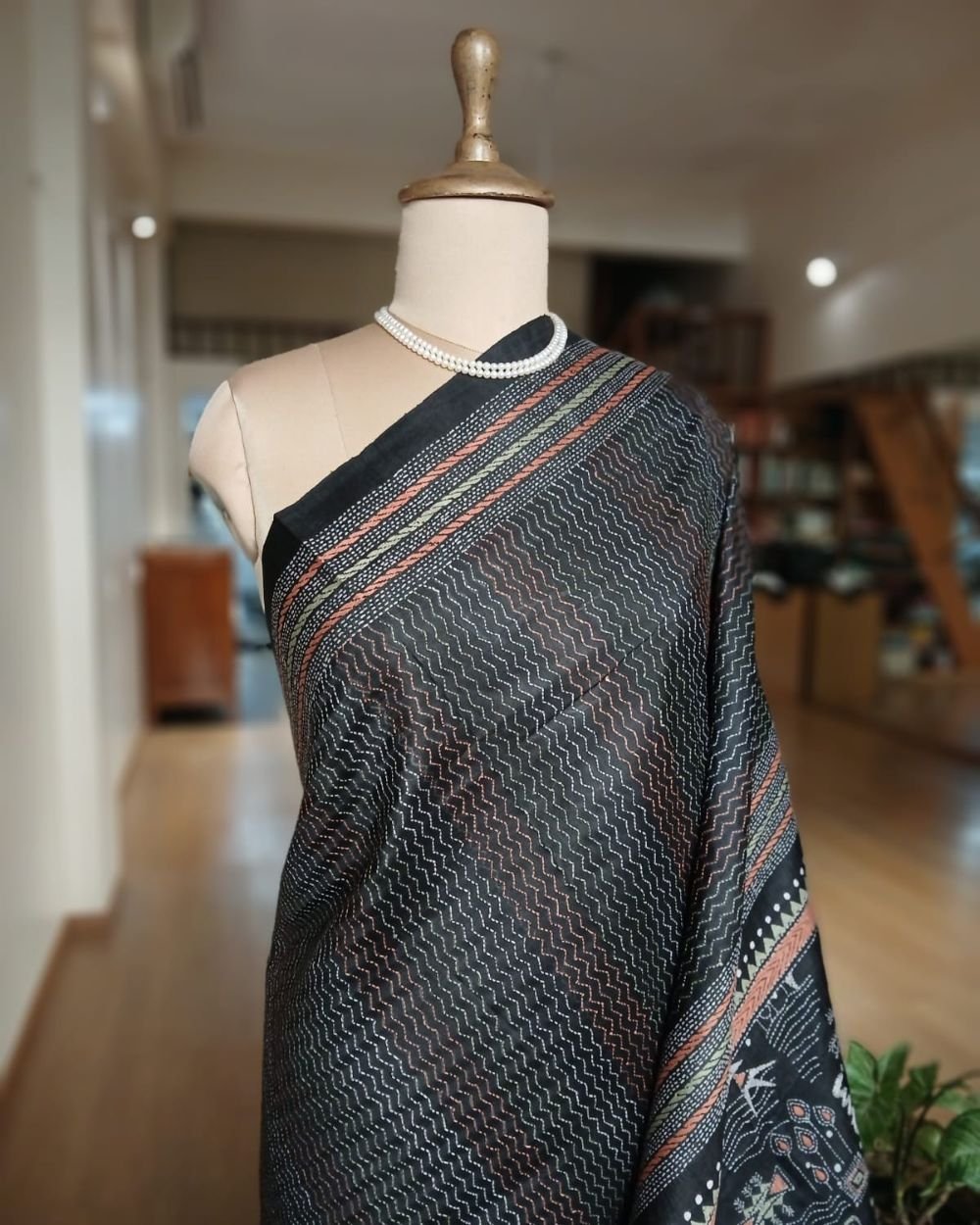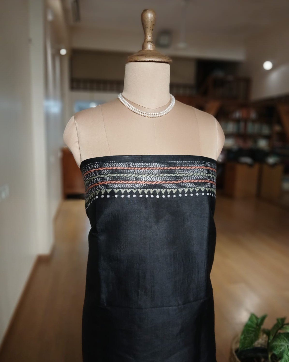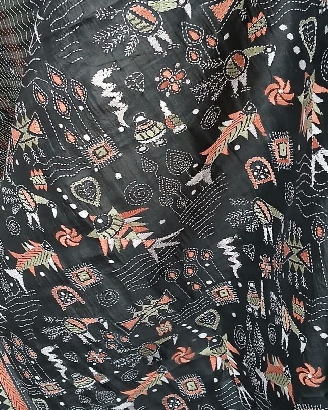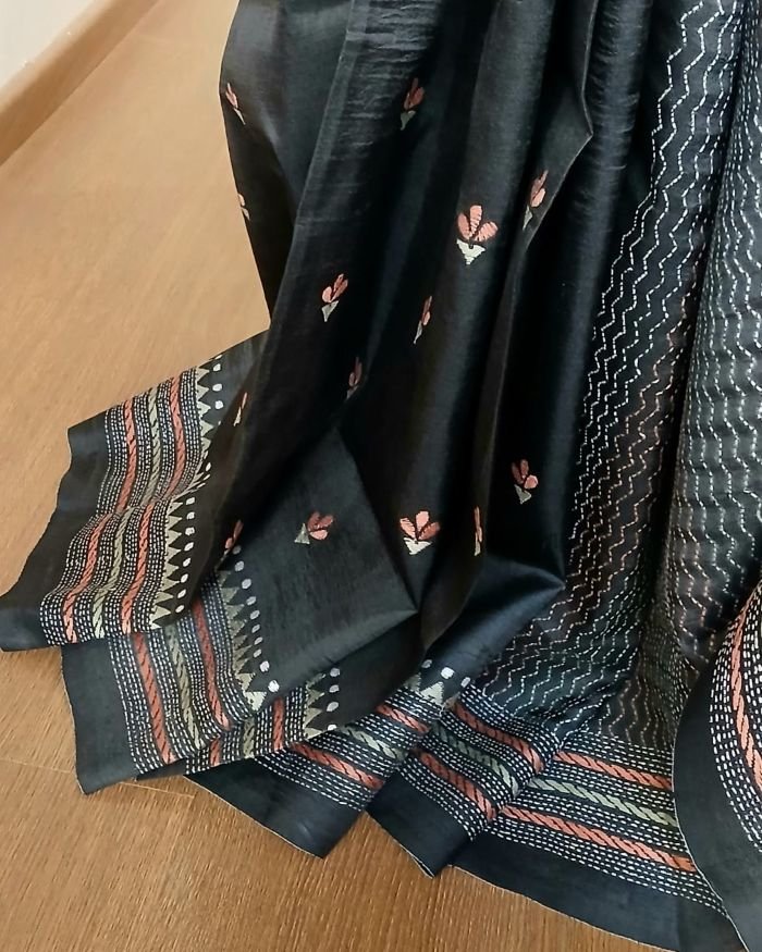 Hand embroidered Santiniketan kantha saree in pure Bisnupuri silk.