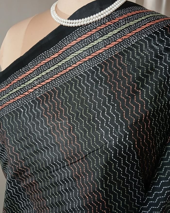 Santiniketan Kantha Saree in Pure Bisnupuri Silk – (SNBK0010)