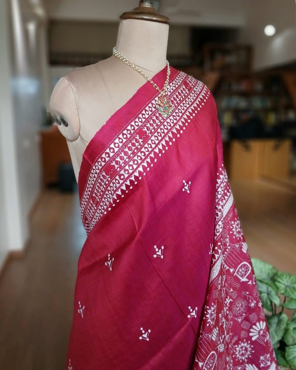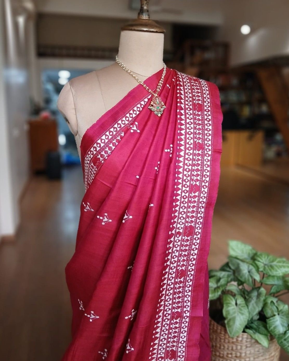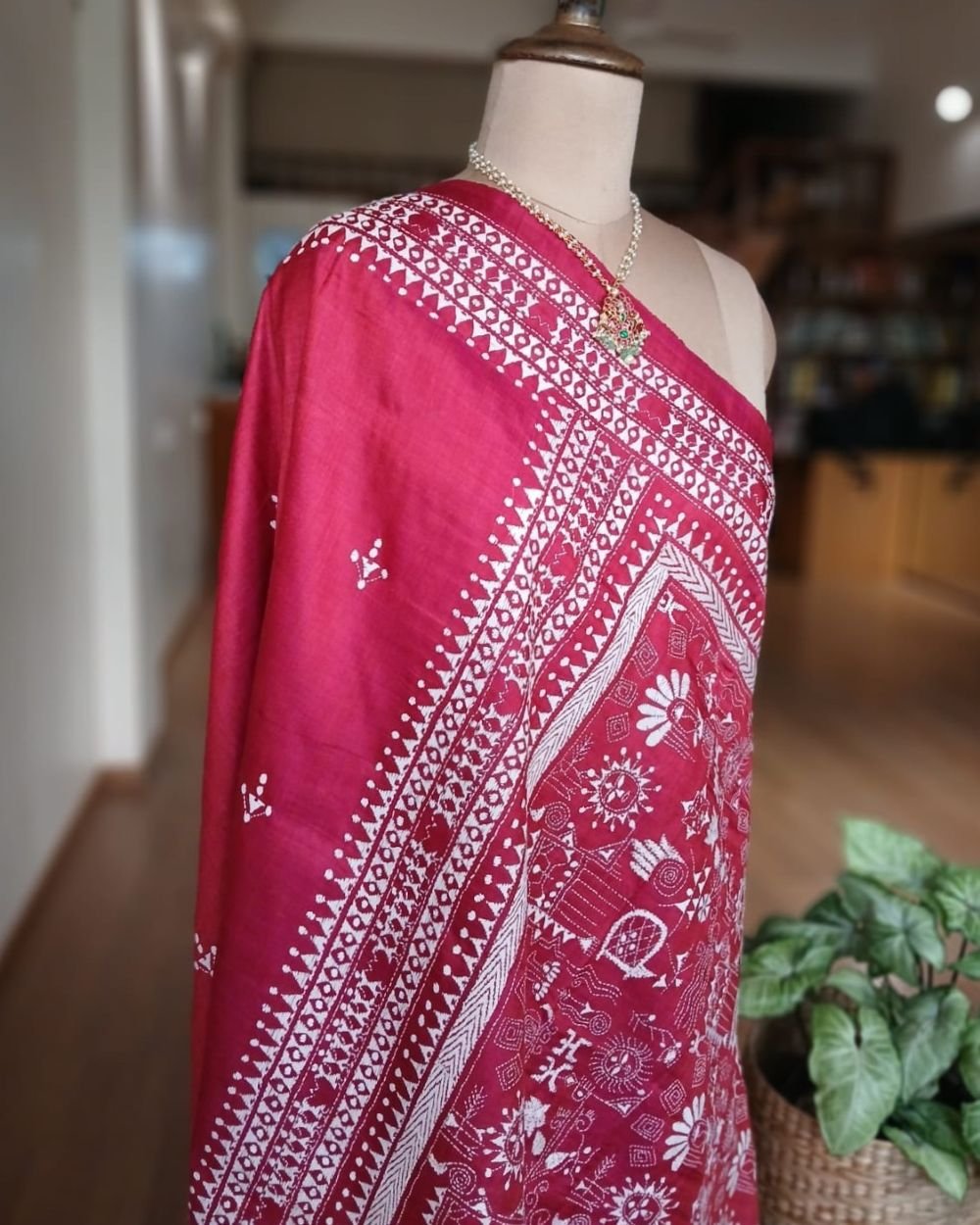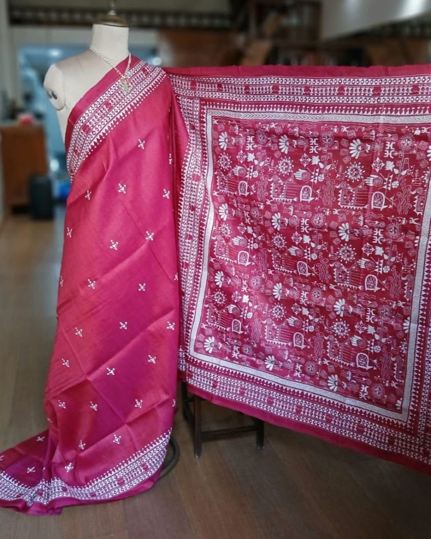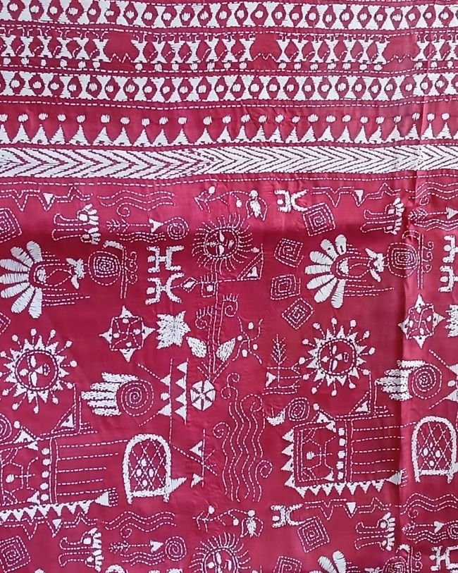 Hand embroidered Santiniketan kantha saree in pure Bisnupuri silk.