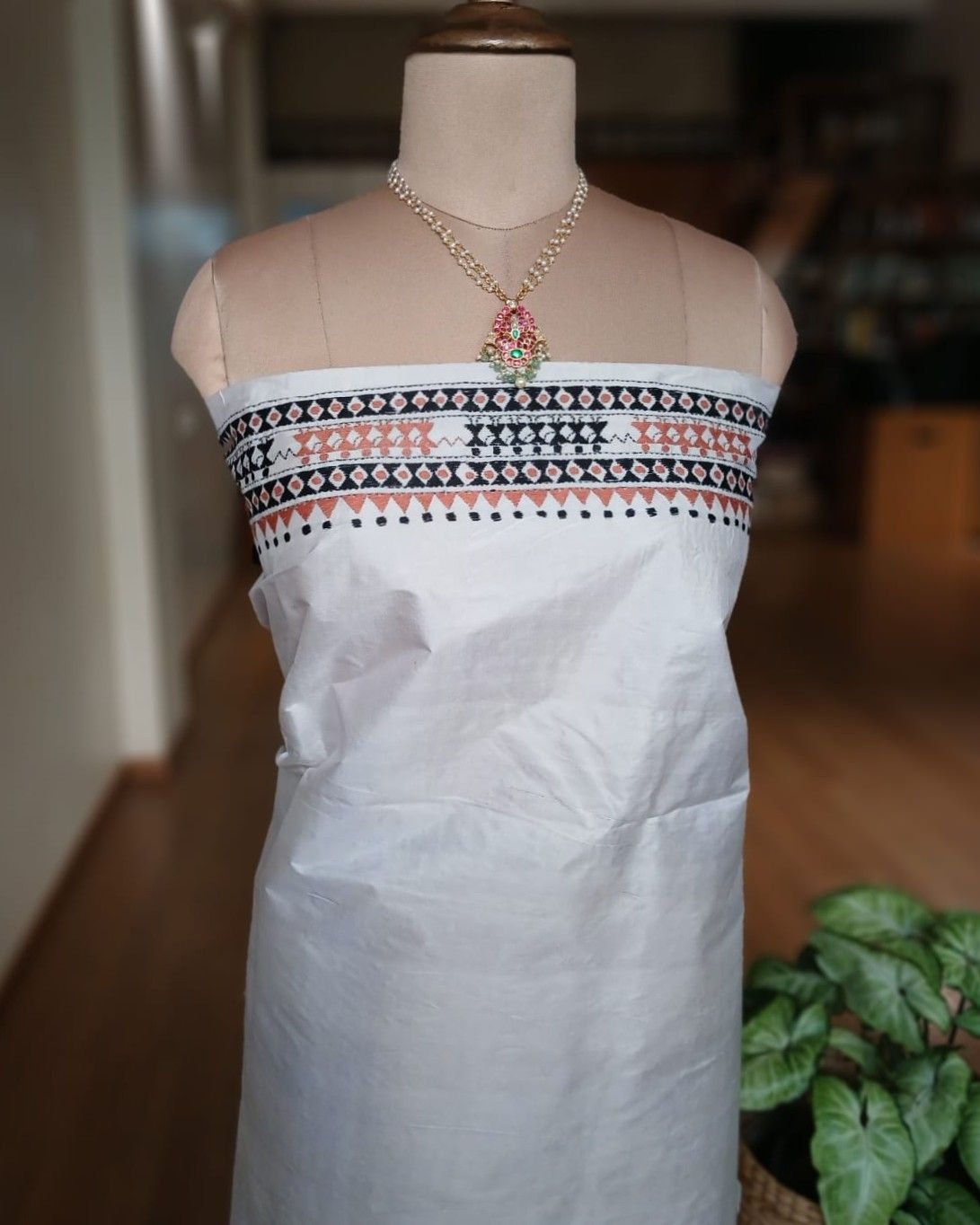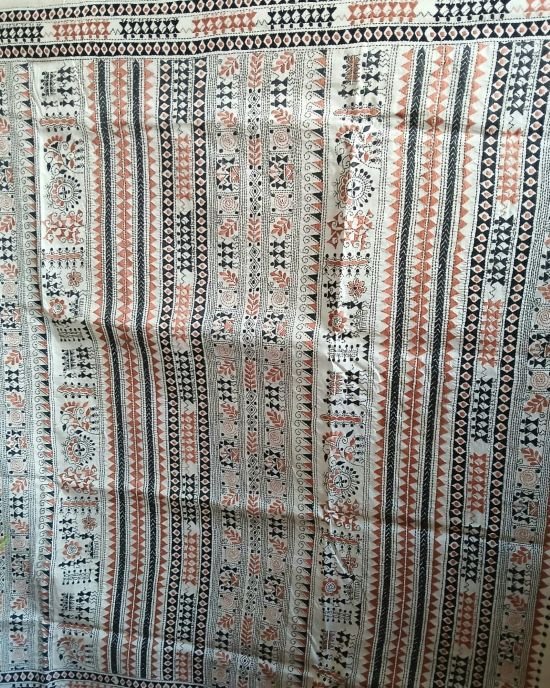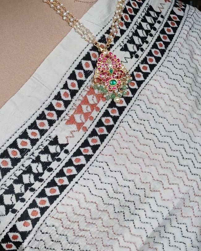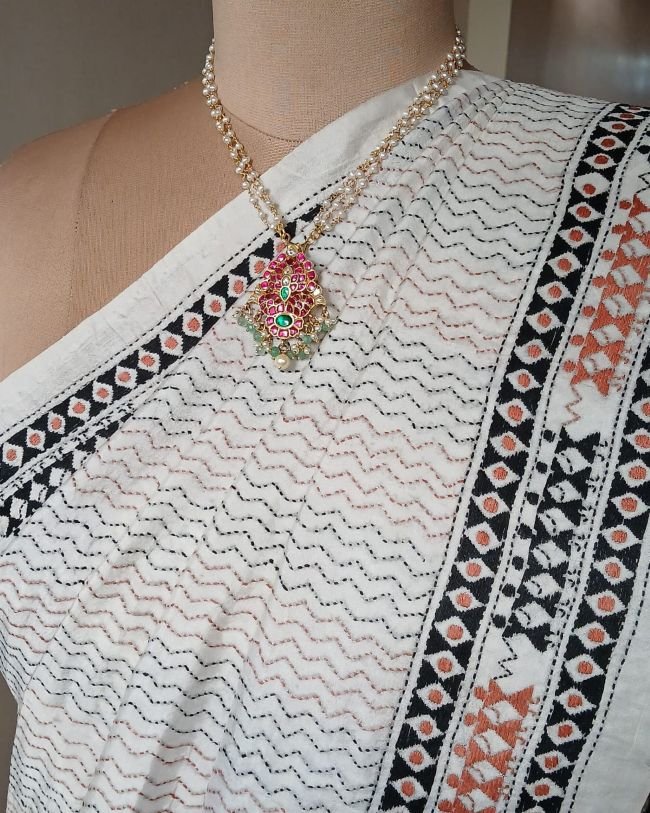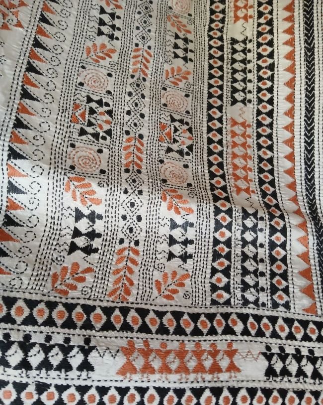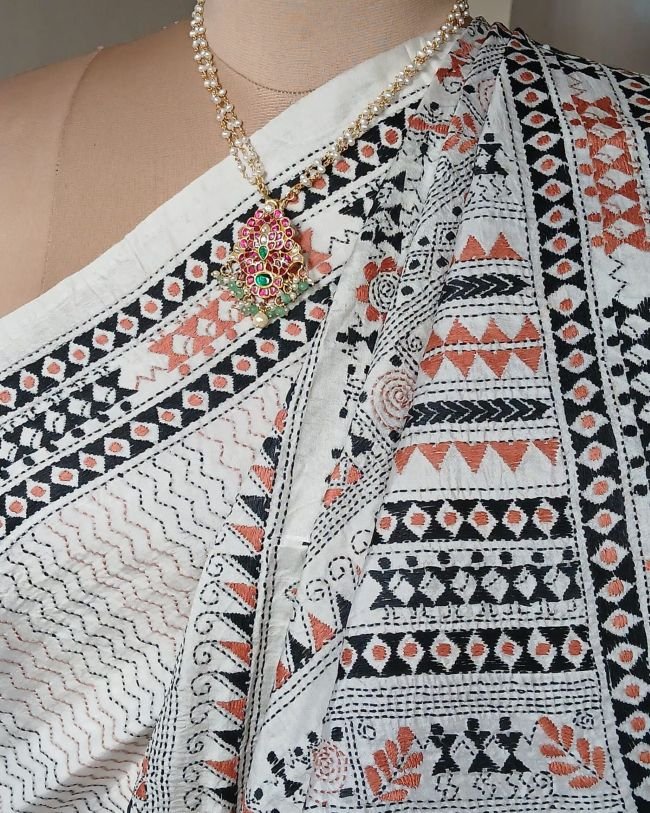Hand embroidered Santiniketan kantha saree in pure Bisnupuri silk.