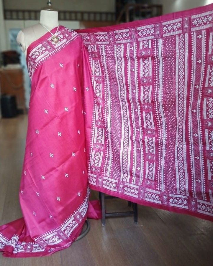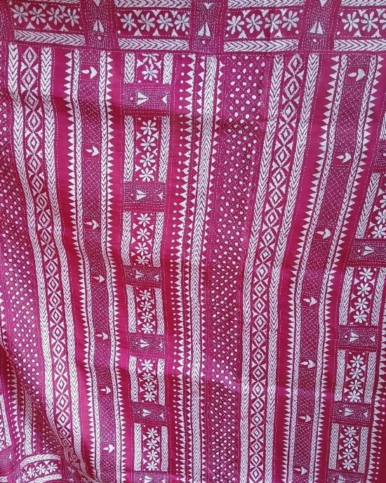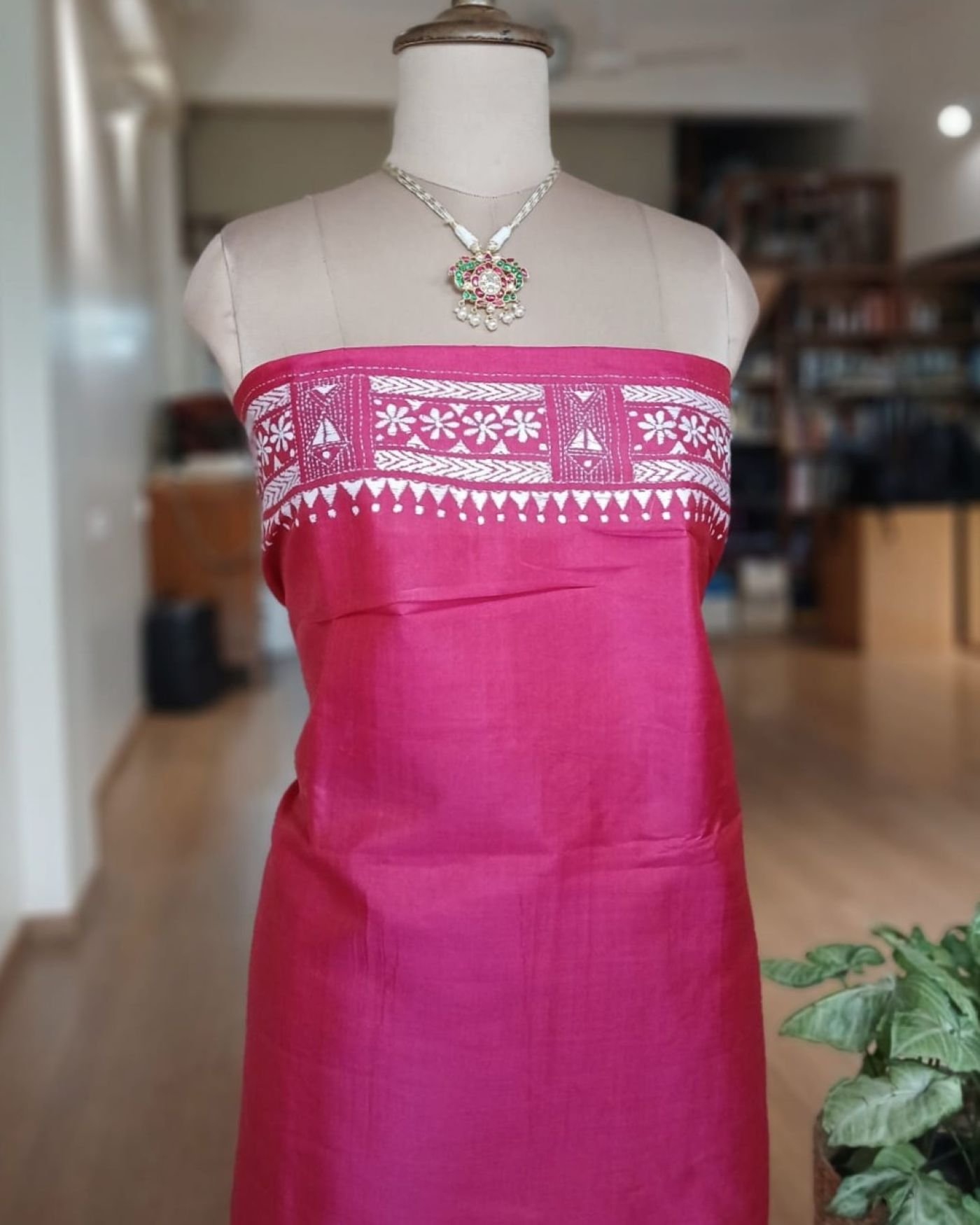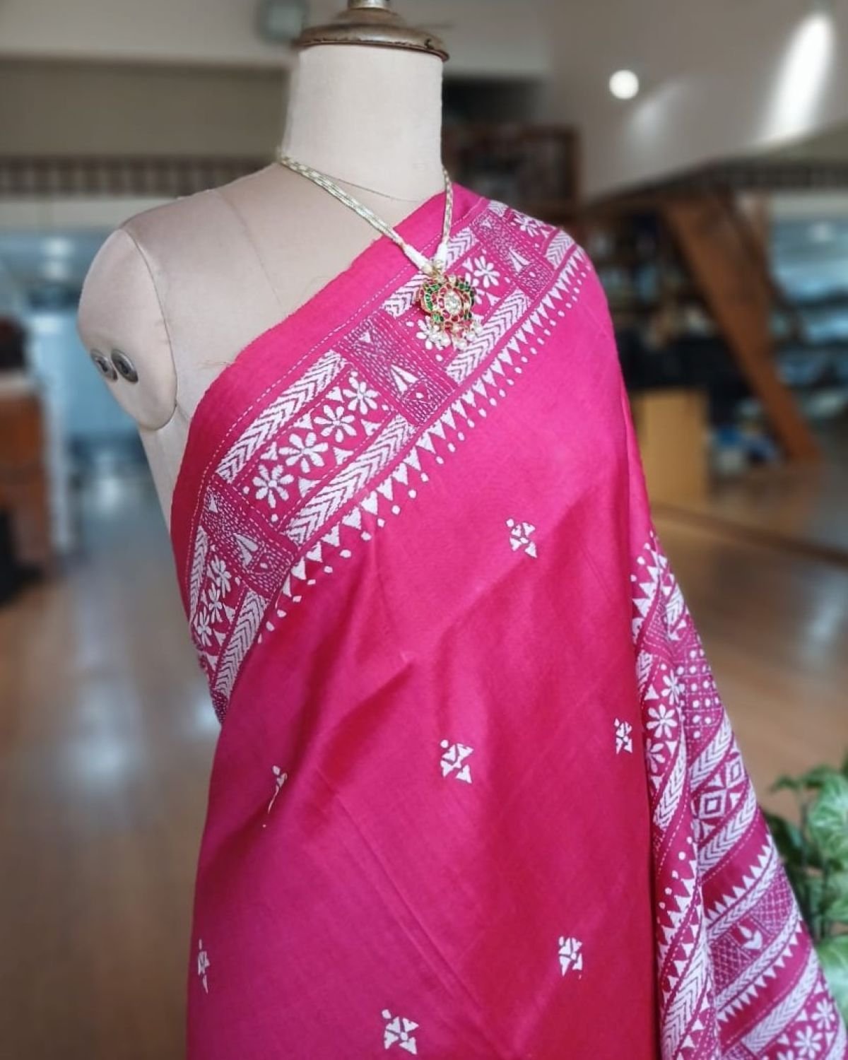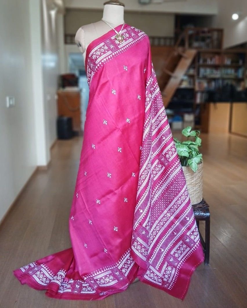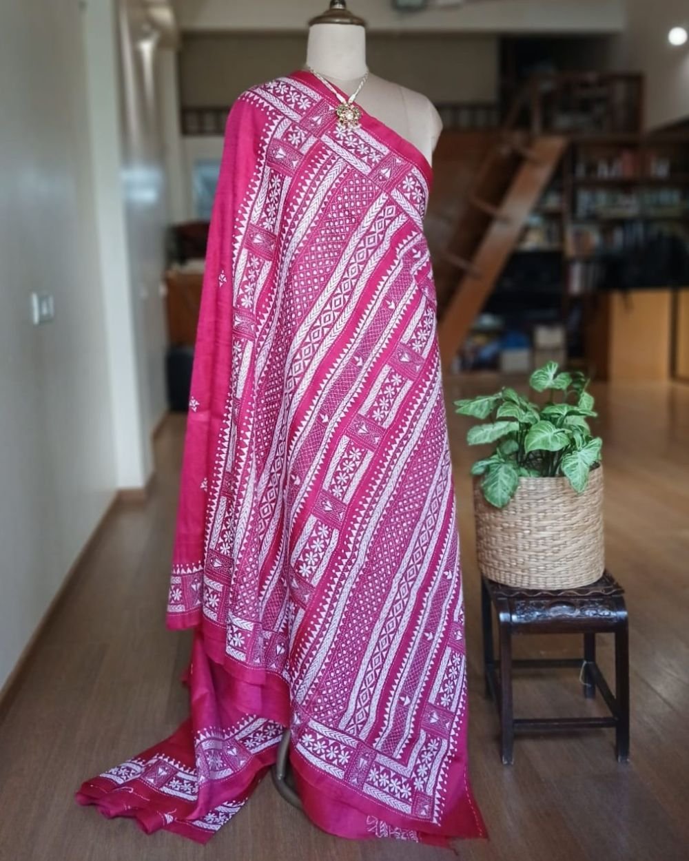 Hand embroidered Santiniketan kantha saree in pure Bisnupuri silk.