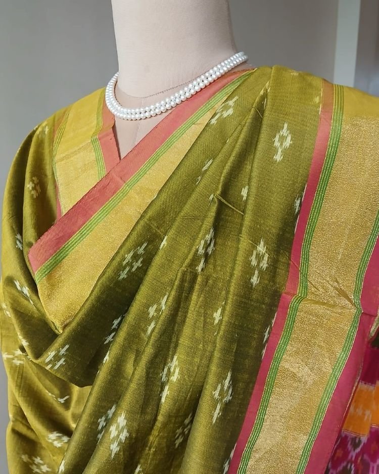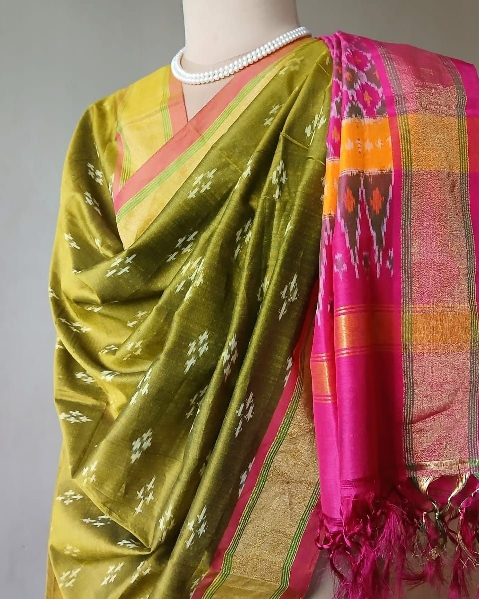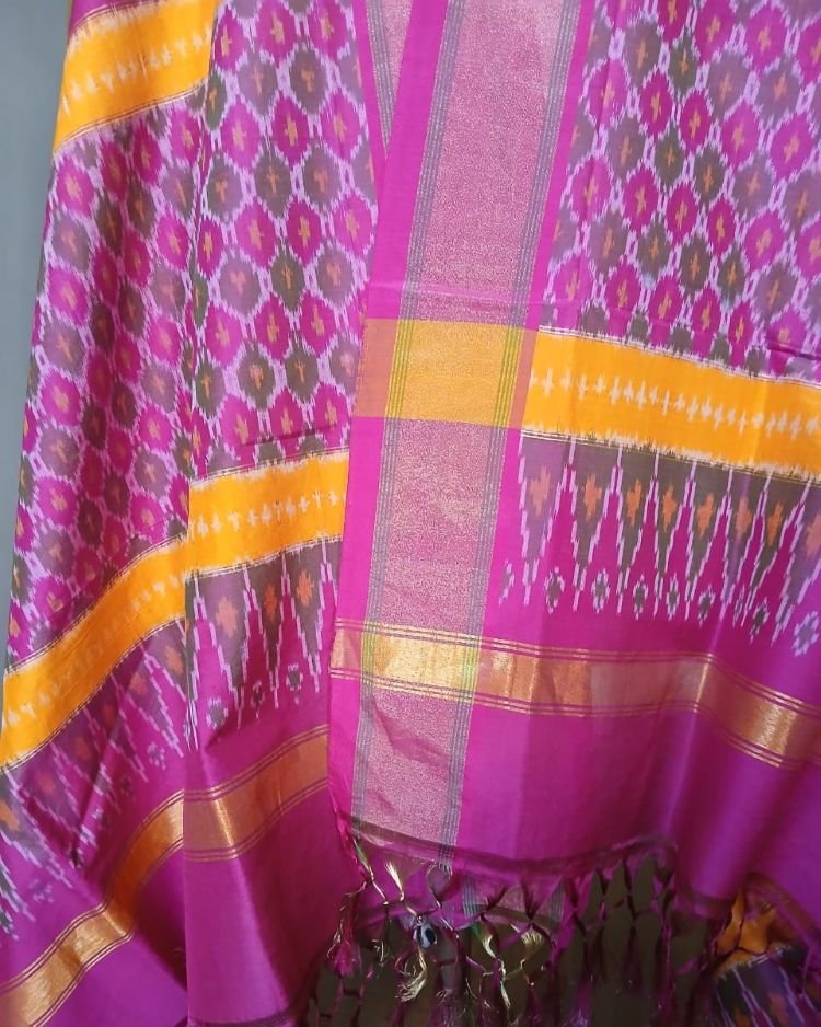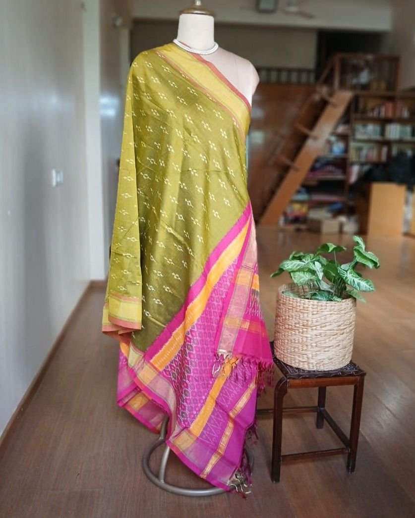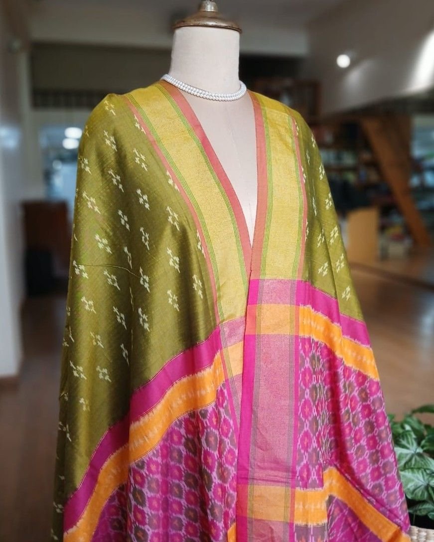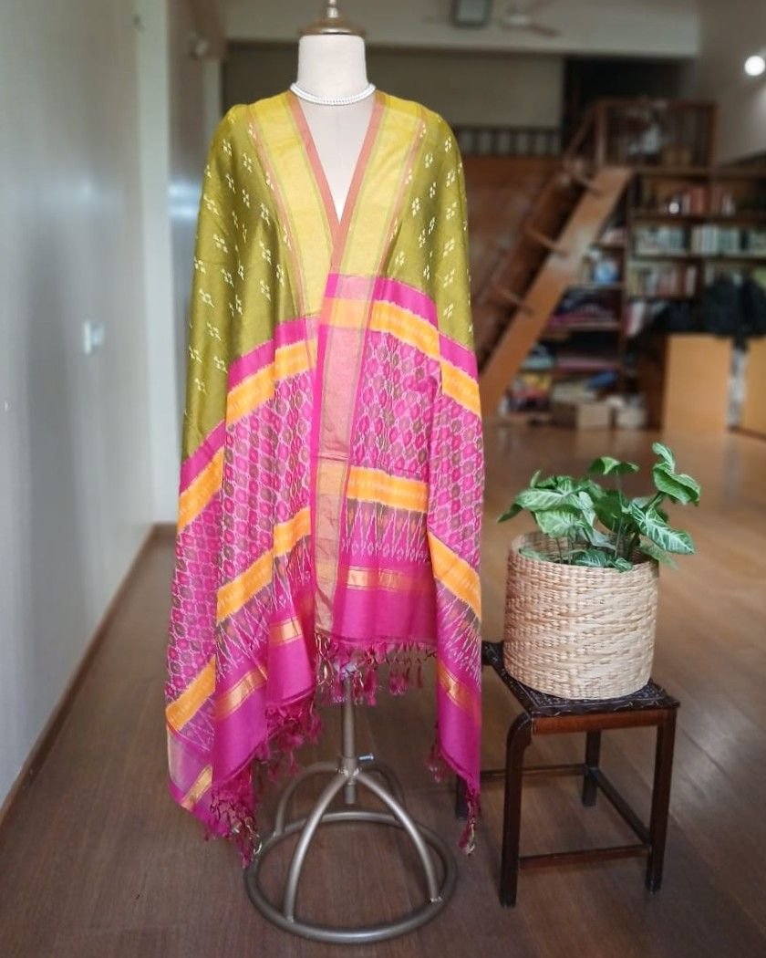 Silk-cotton dupattas from Telengana. Rich looking but not shiny like pure silk.