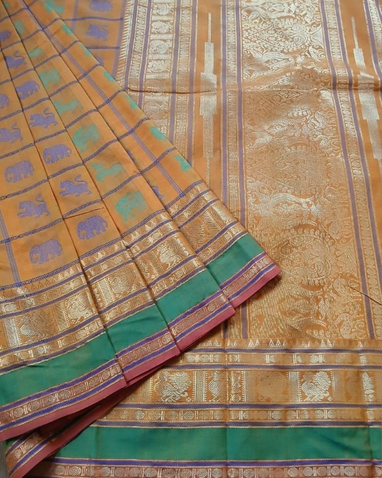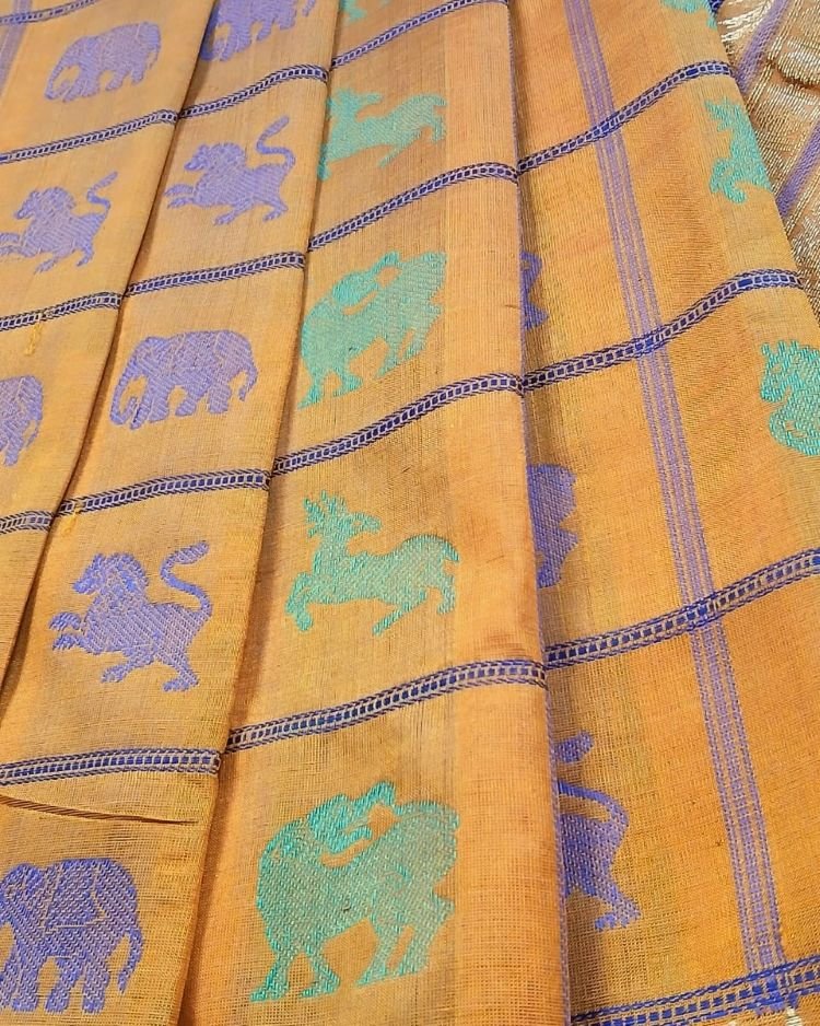 Silk-Cotton Kanchi handweave with zari and grand palla.