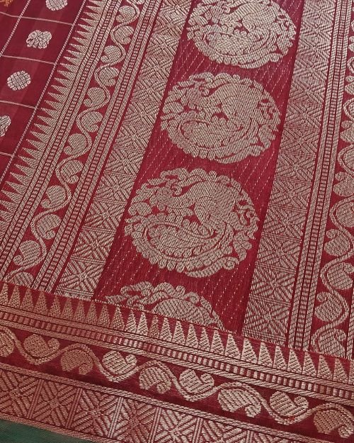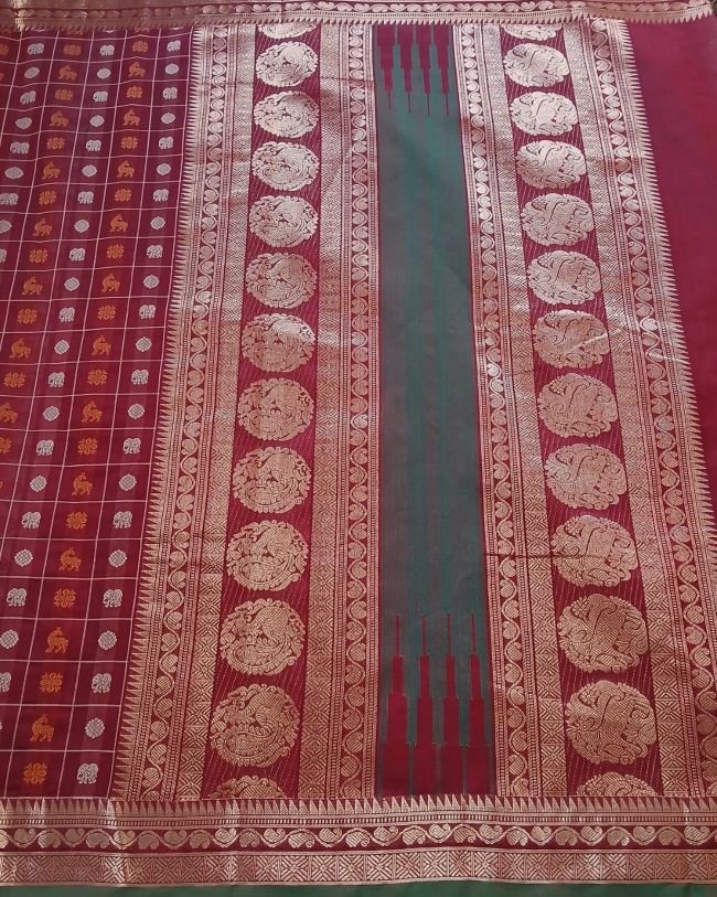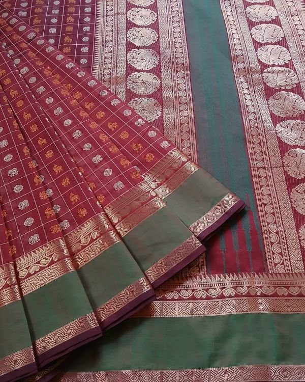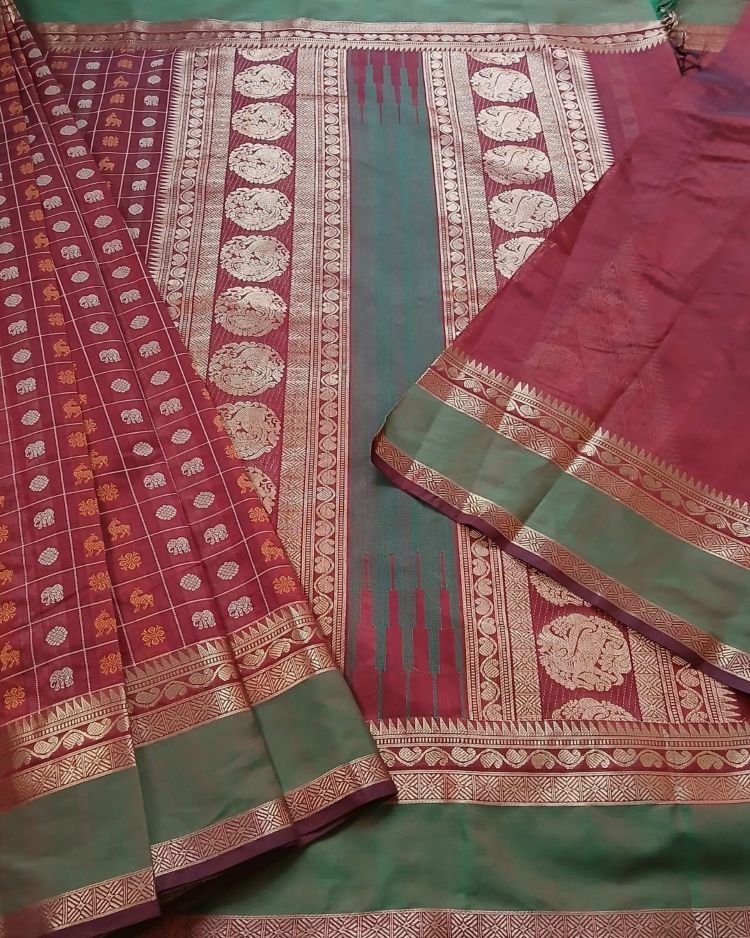 Silk-Cotton Kanchi handweave with zari and grand palla. See more details below