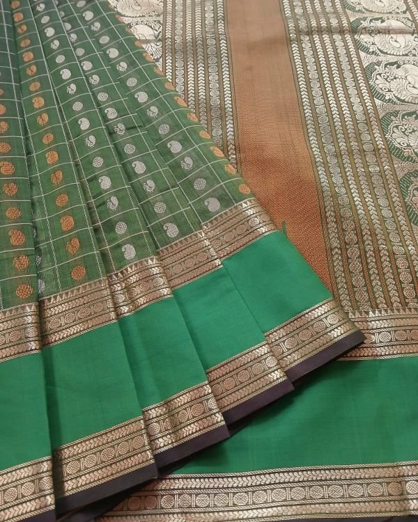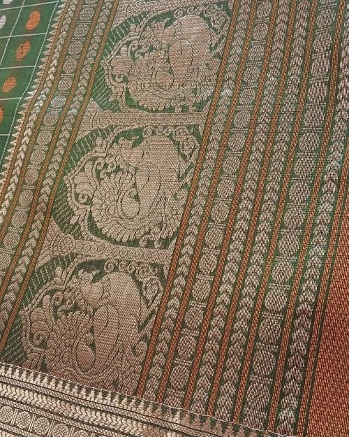 Silk-Cotton Kanchi handweave with zari and grand palla. See more details below