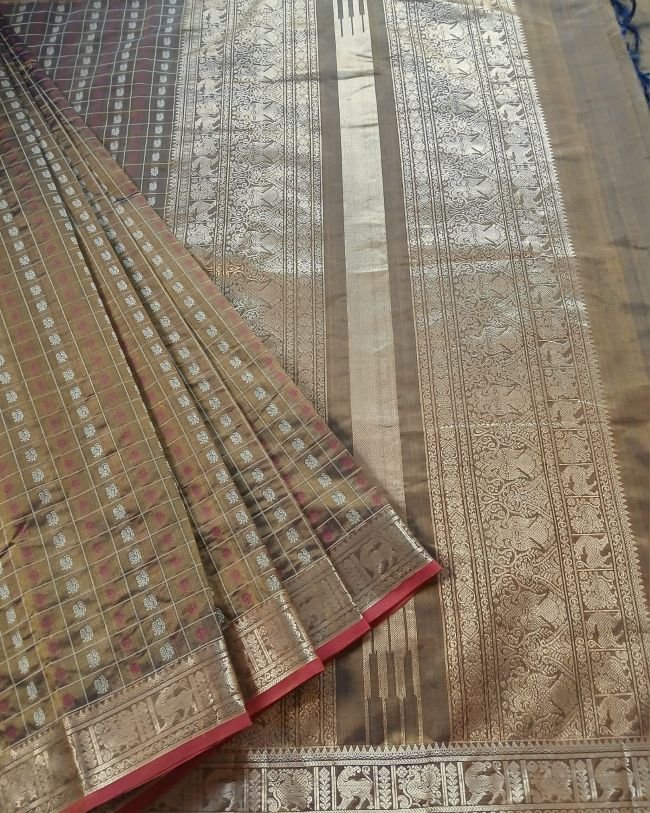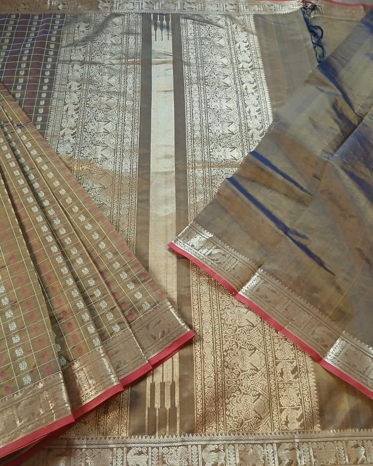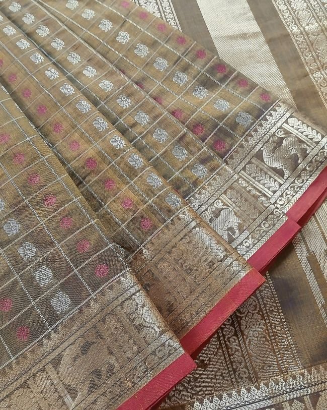 Silk-Cotton Kanchi handweave with zari and grand palla. See more details below