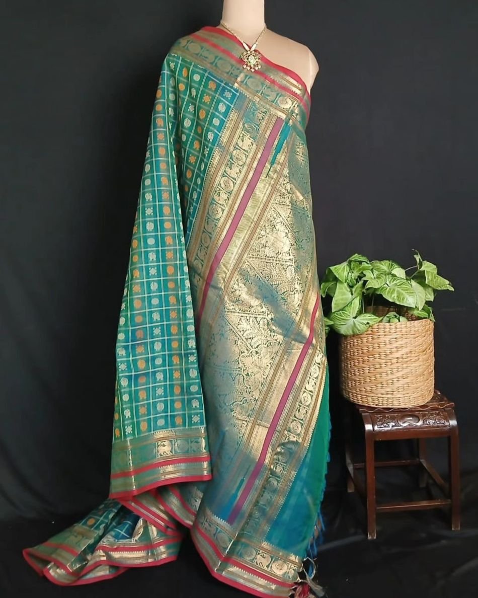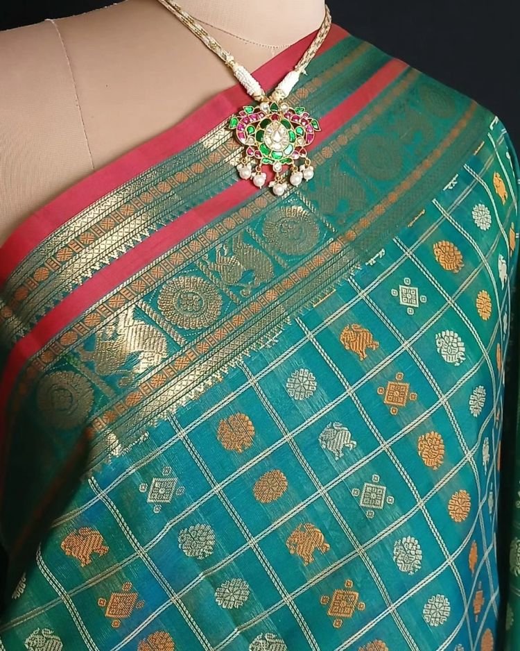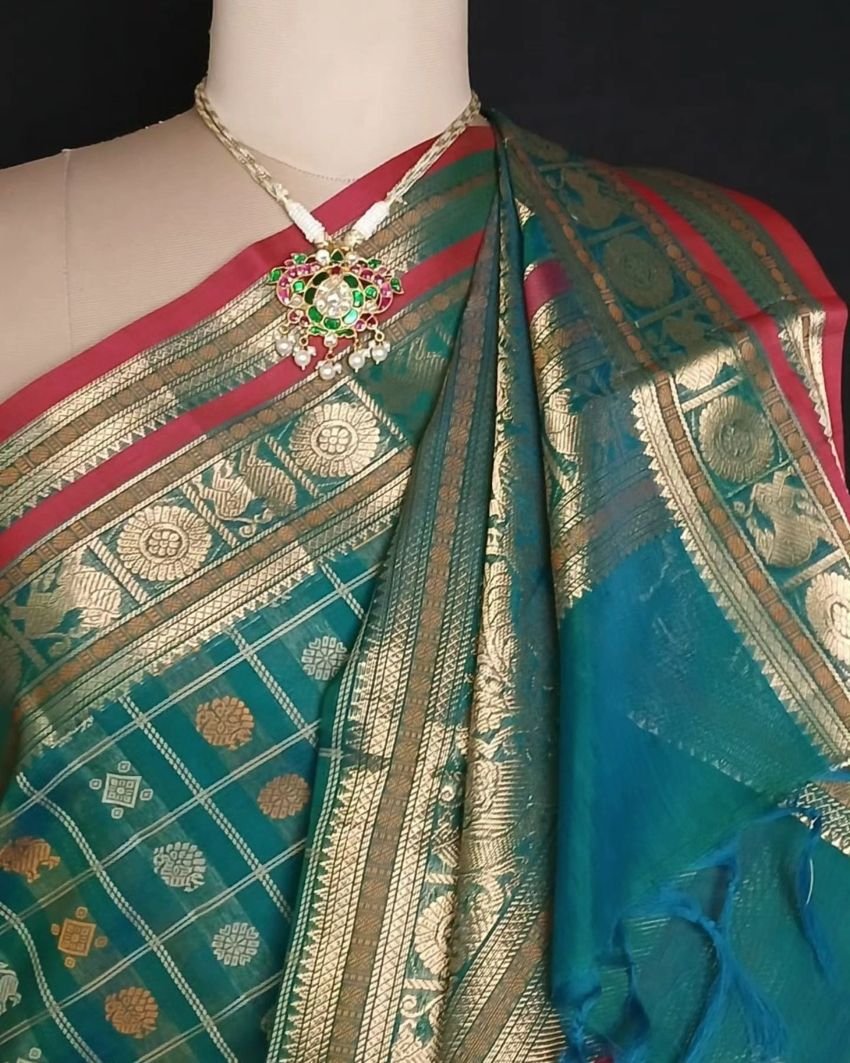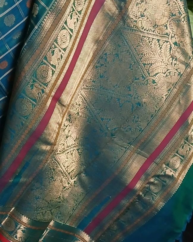 Silk-Cotton Kanchi handweave with zari and grand palla. See more details below