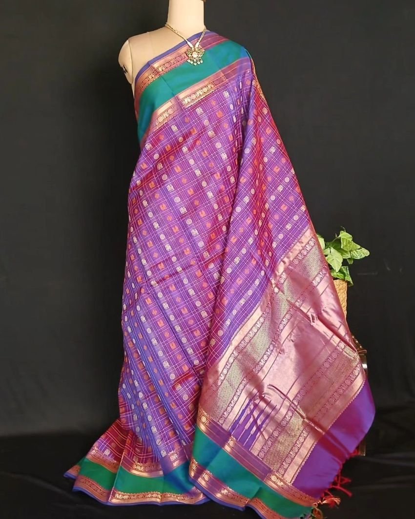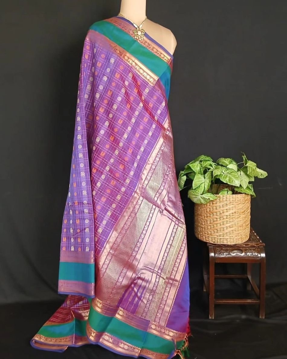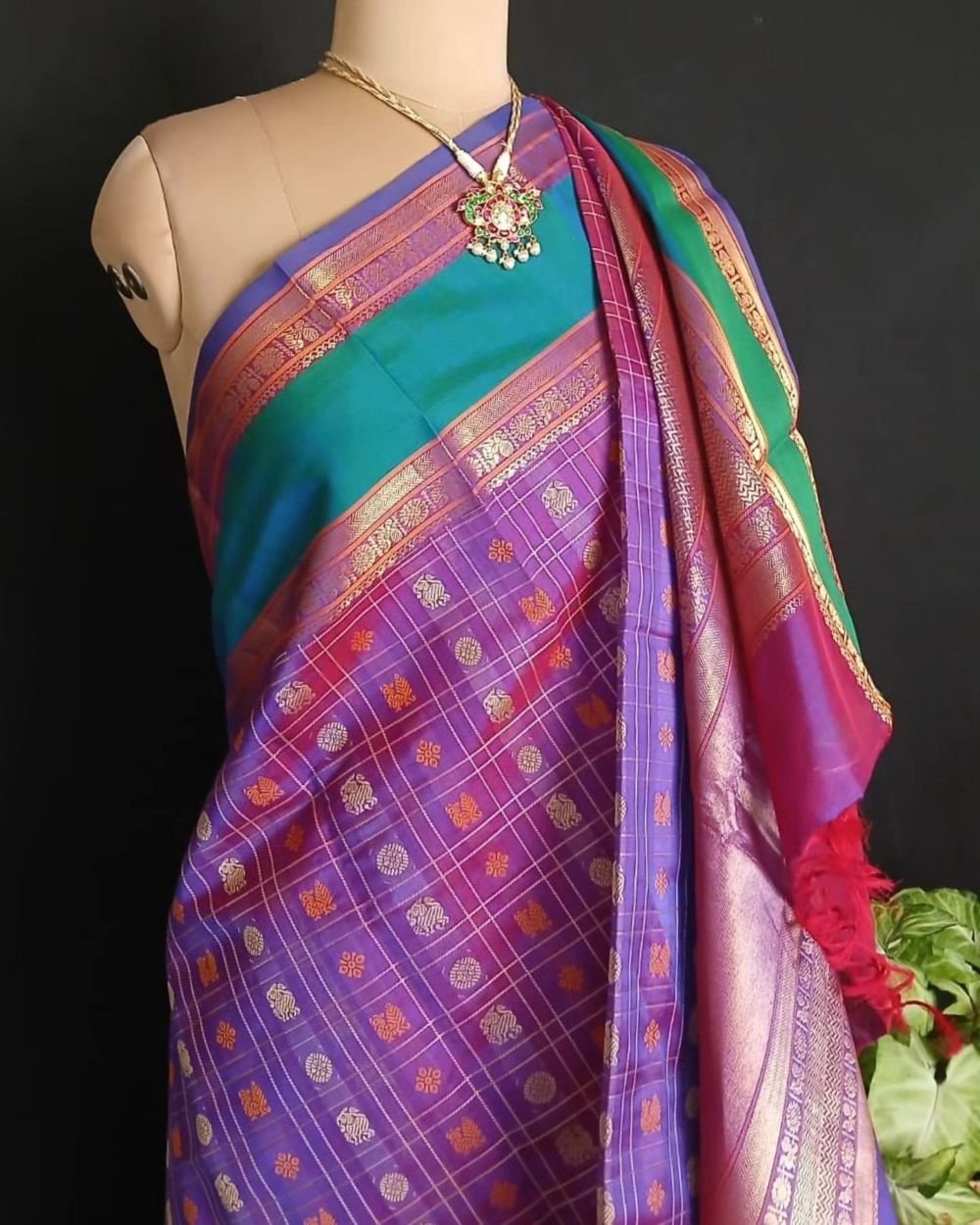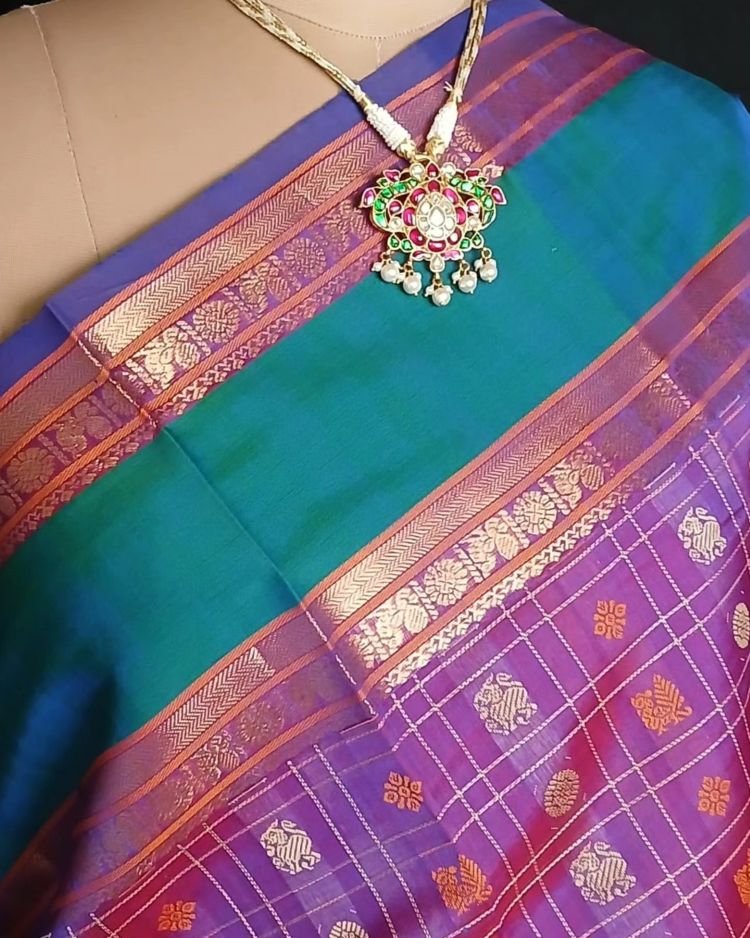 Silk-Cotton Kanchi handweave with zari and grand palla. See more details below