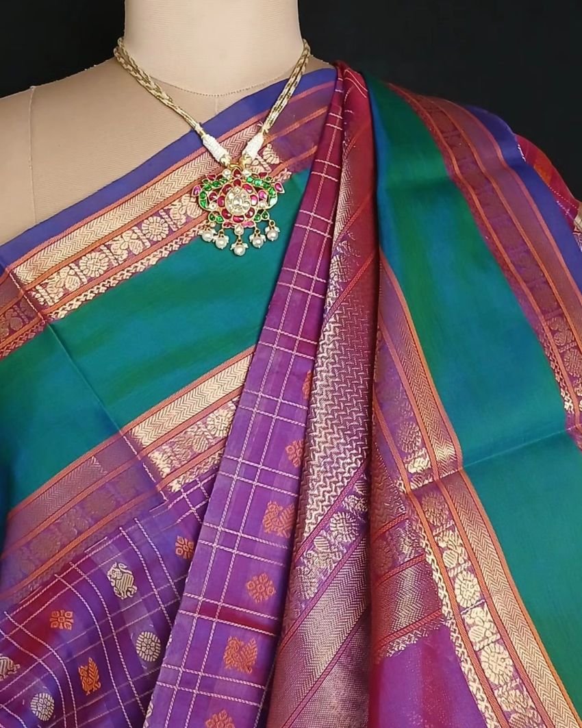 Silk-Cotton Kanchi handweave with zari and grand palla.