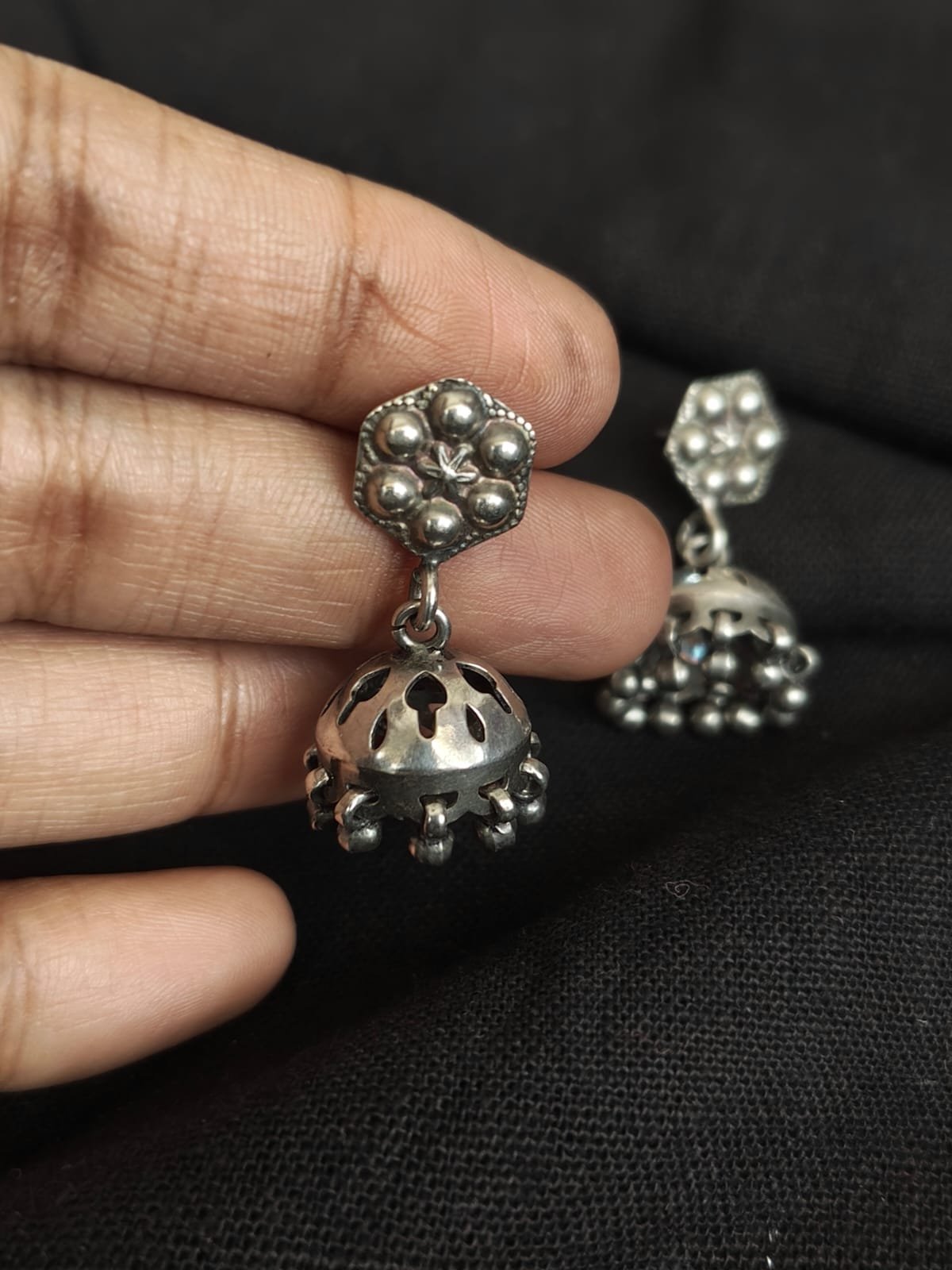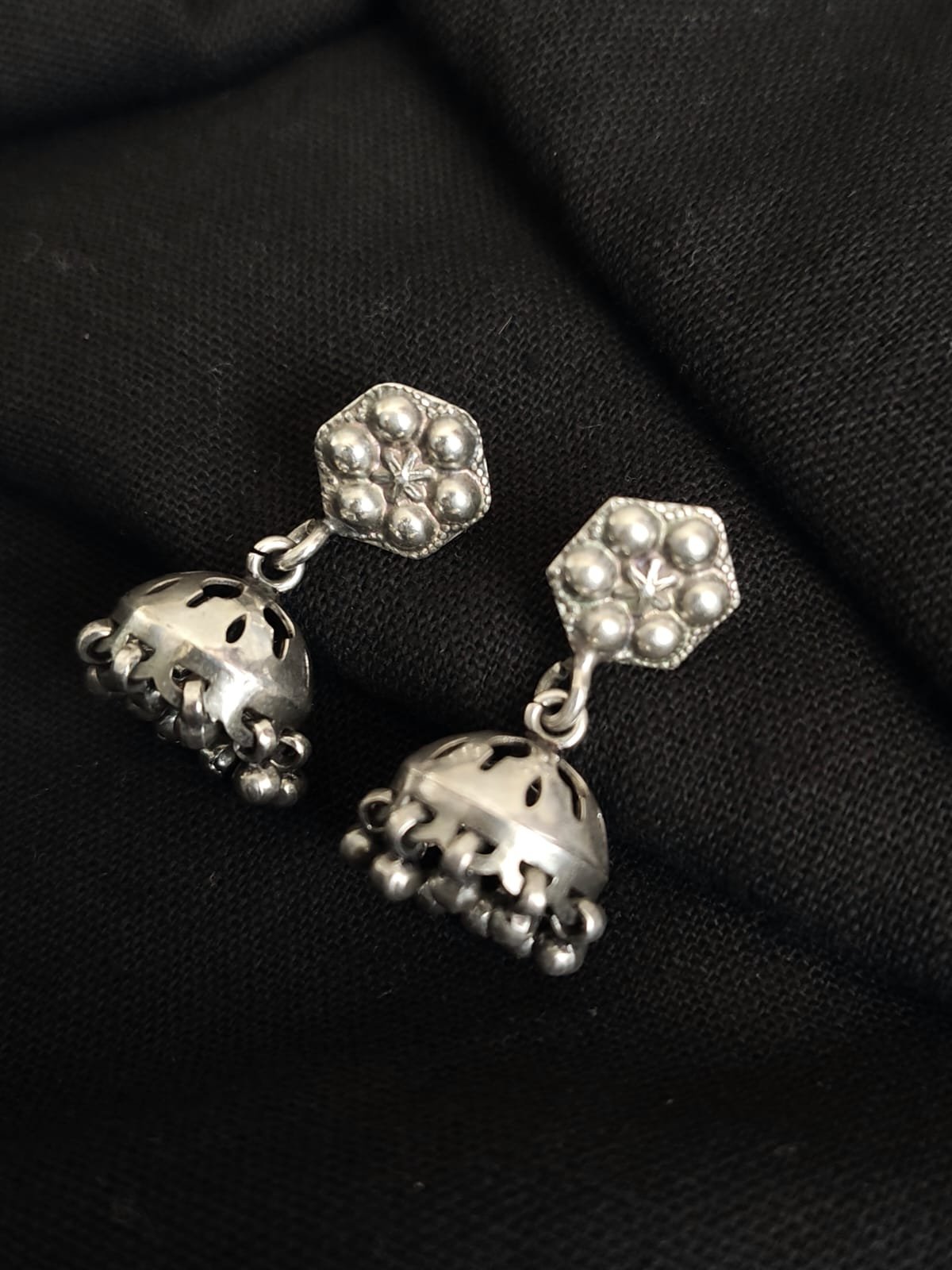 Silver Jhumkas handmade in Jaipur.
