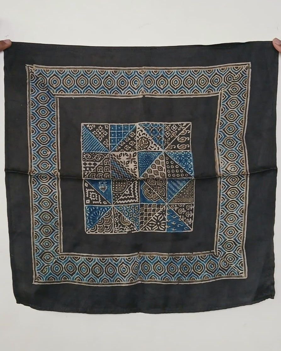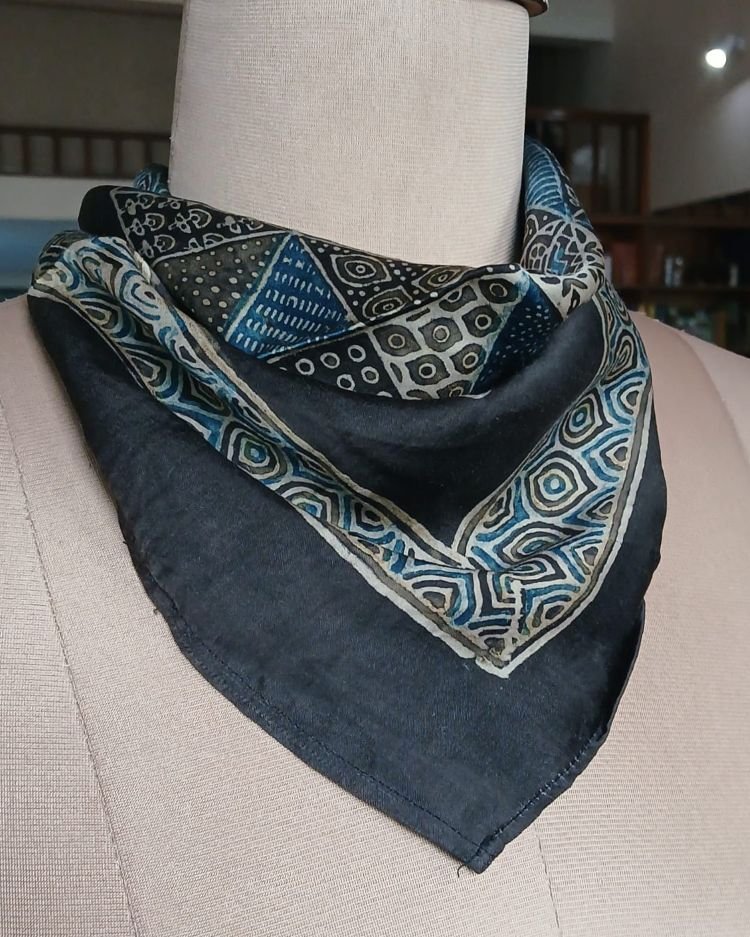 The material is mulberry silk and the scarf been hand printed in Ajrakhpur.