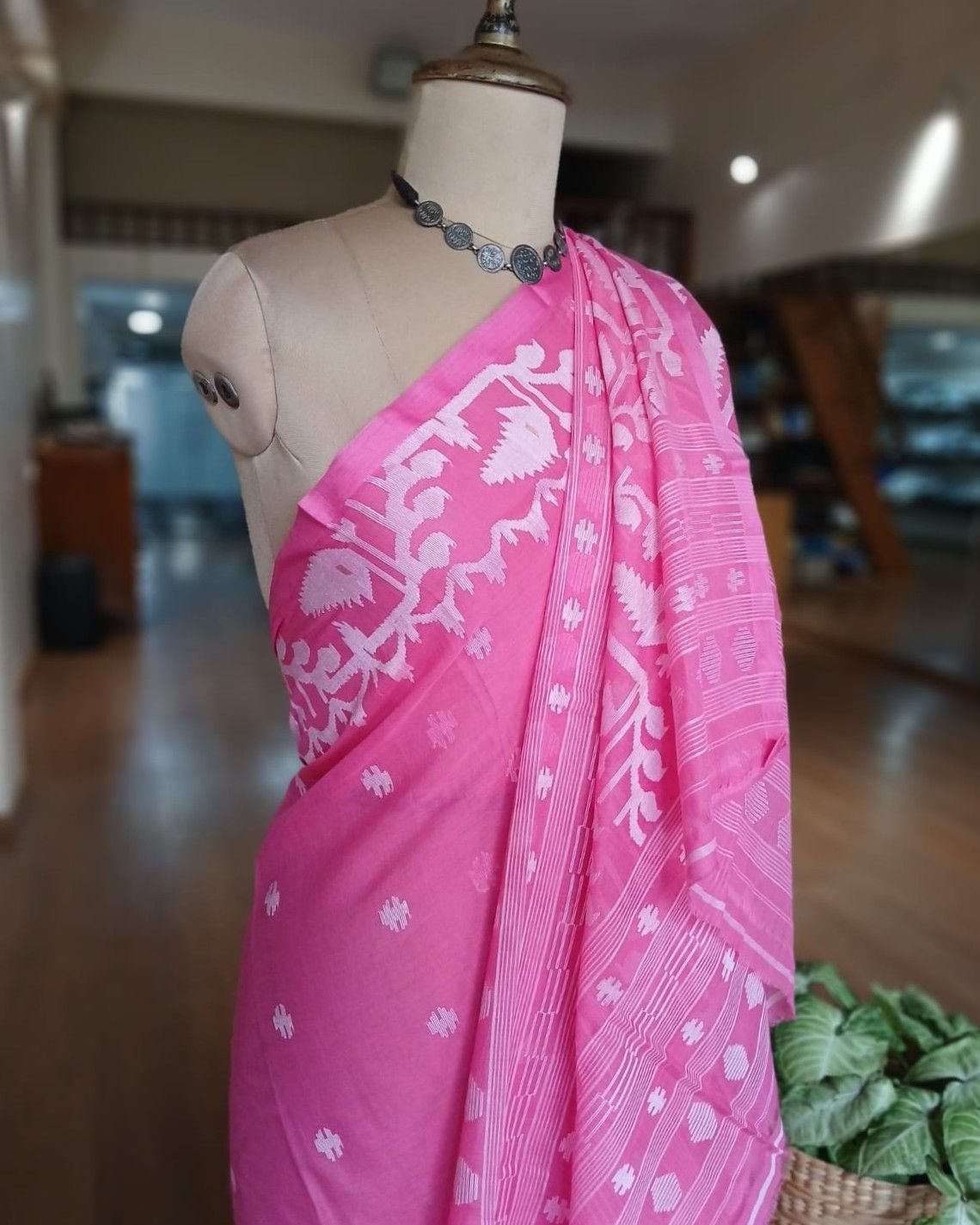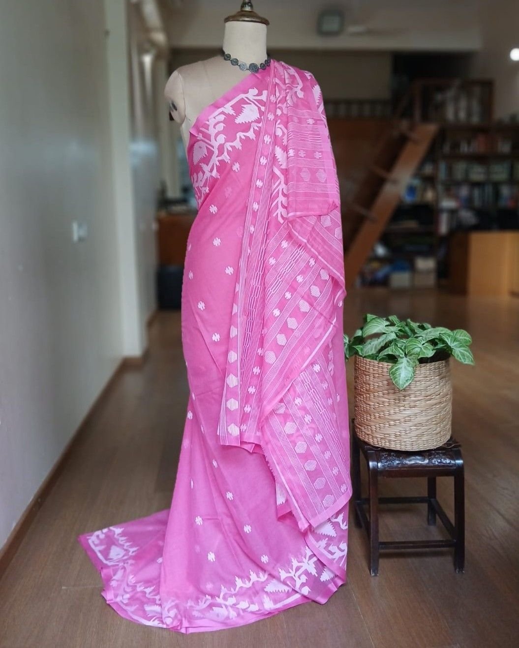 Handweave Jamdani Cotton Saree from Phulia. See more details below.