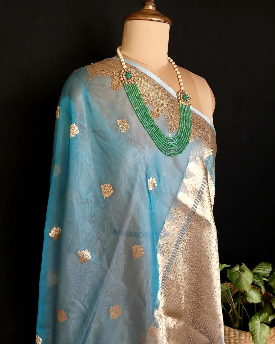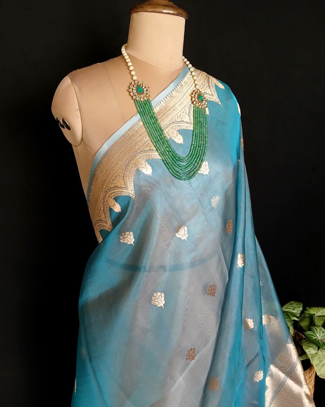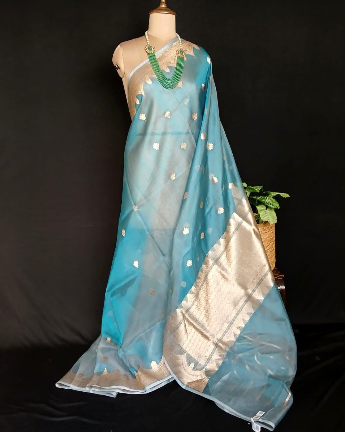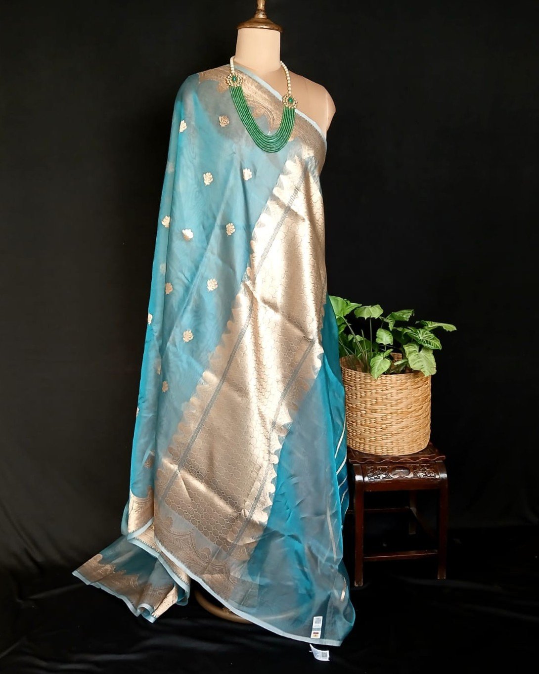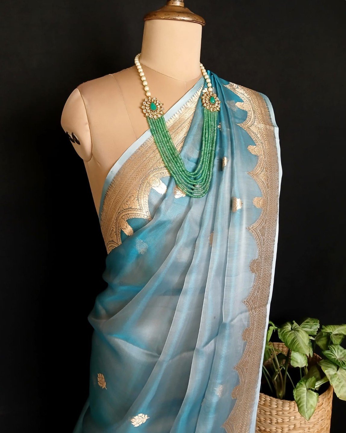 Sophisticated Tissue Zari Banarasi, ideal for wedding events and cocktail parties.