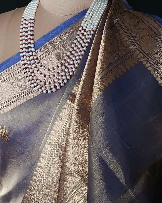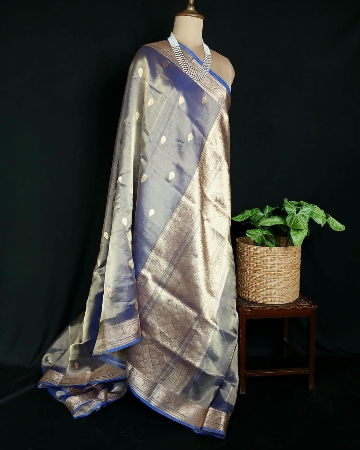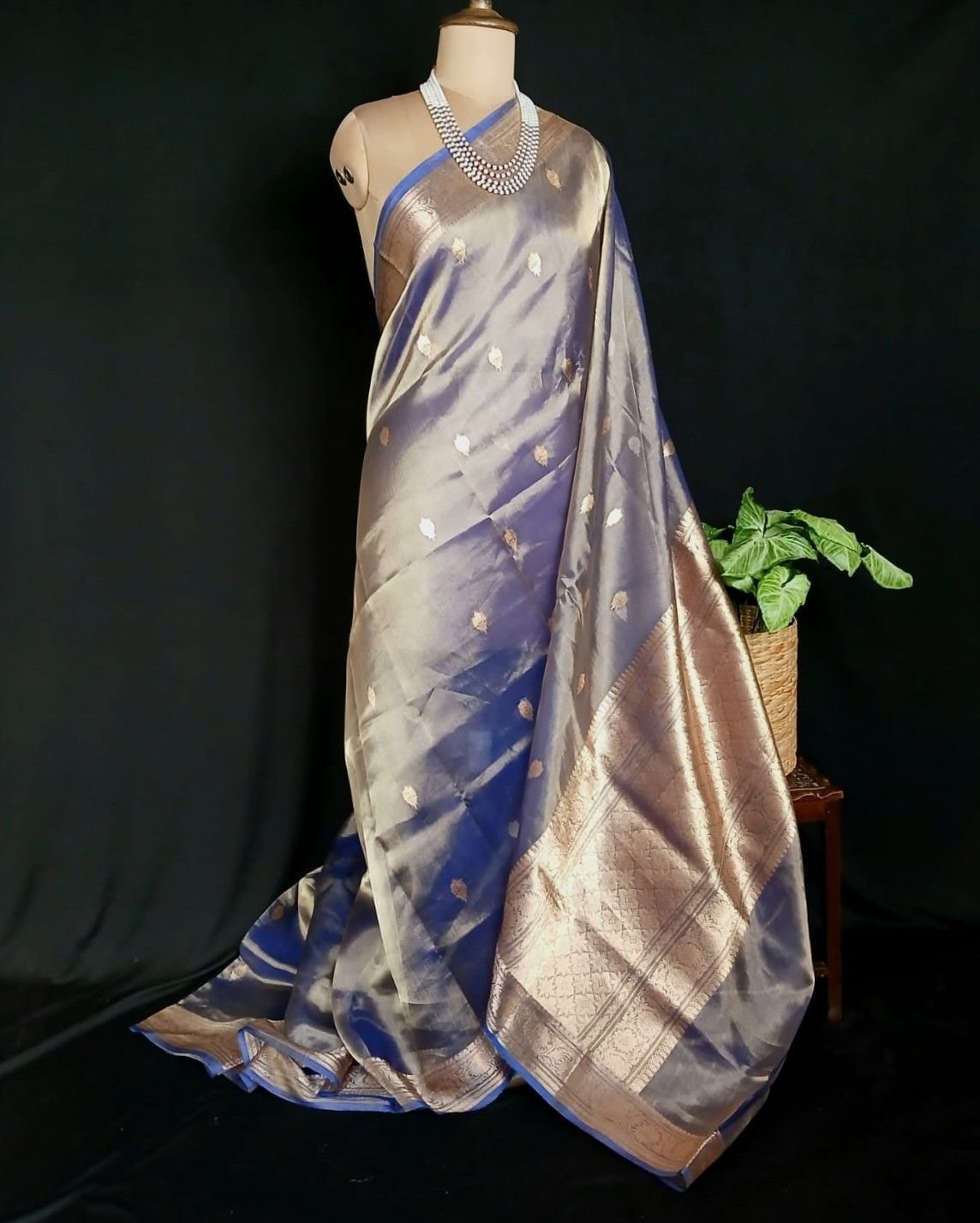 Sophisticated Tissue Zari Banarasi, ideal for wedding events and cocktail parties. See more details below