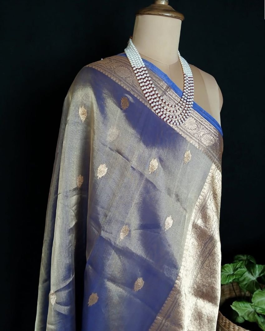 Sophisticated Tissue Zari Banarasi, ideal for wedding events and cocktail parties.