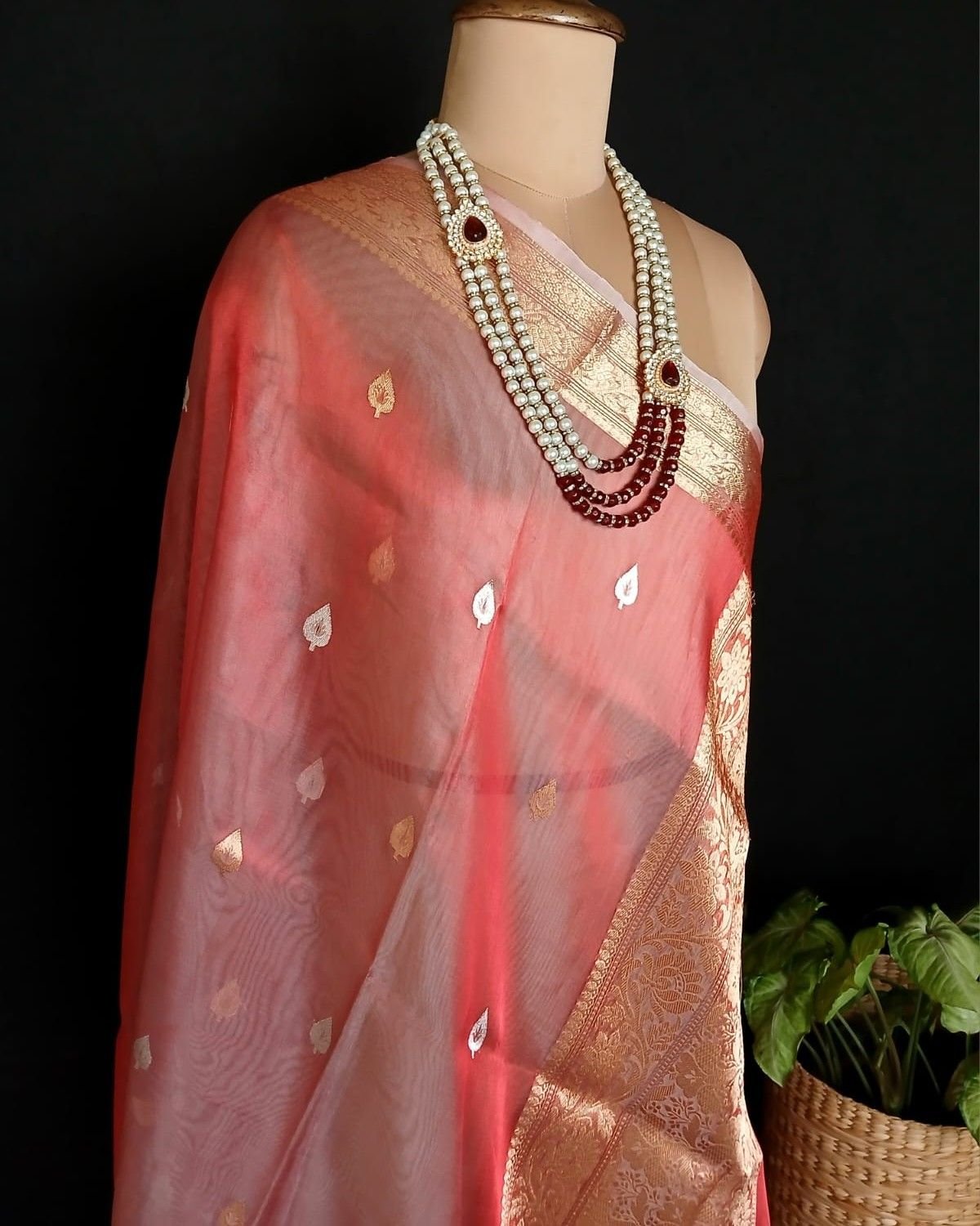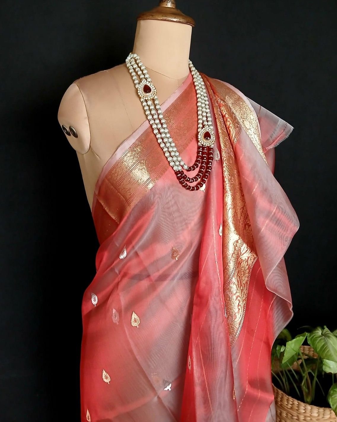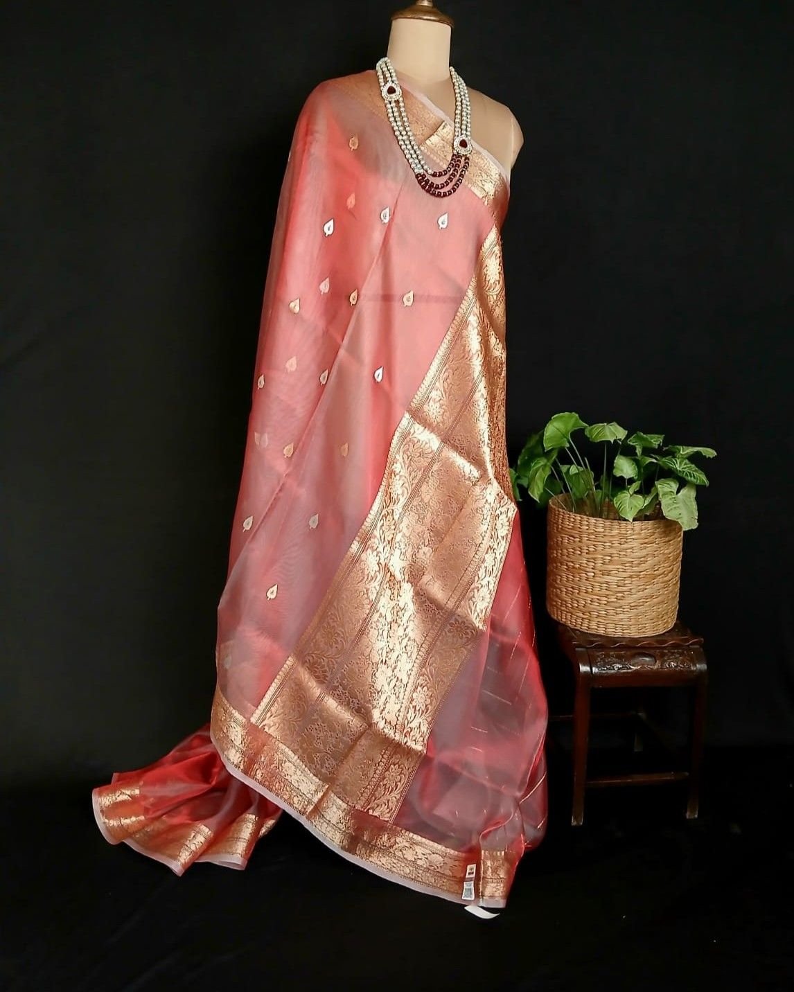 Sophisticated Tissue Zari Banarasi, ideal for wedding events and cocktail parties. See more details below.