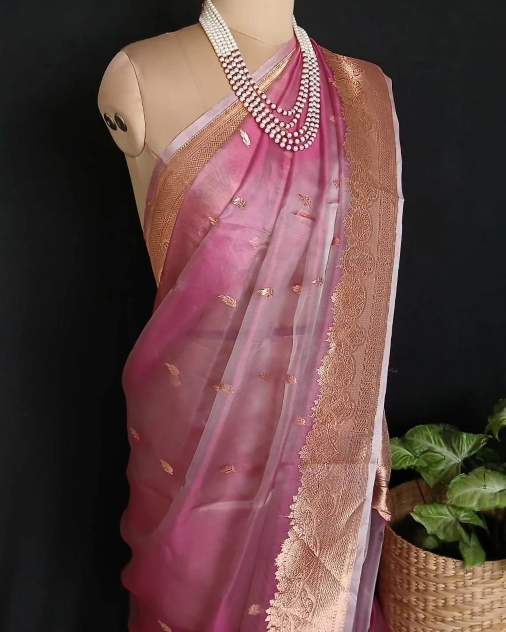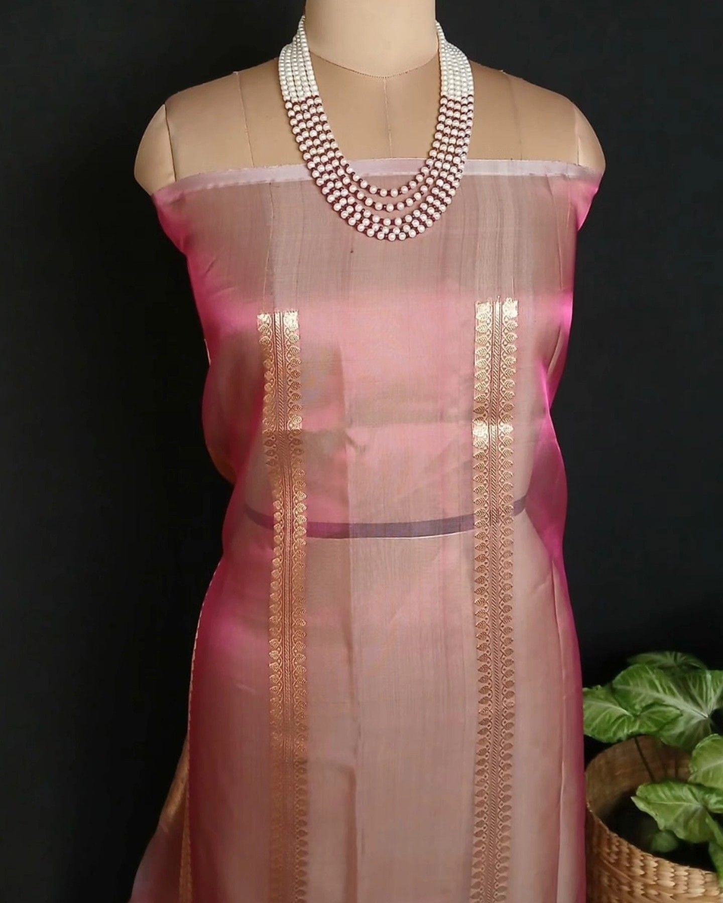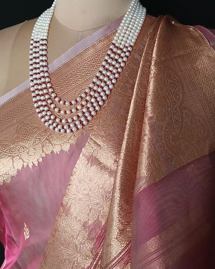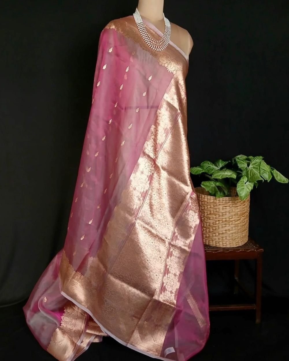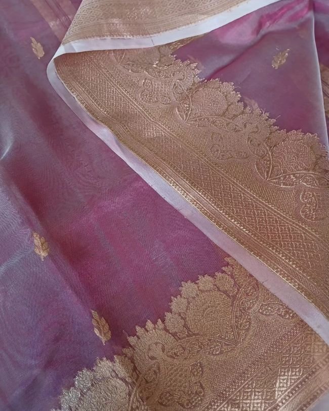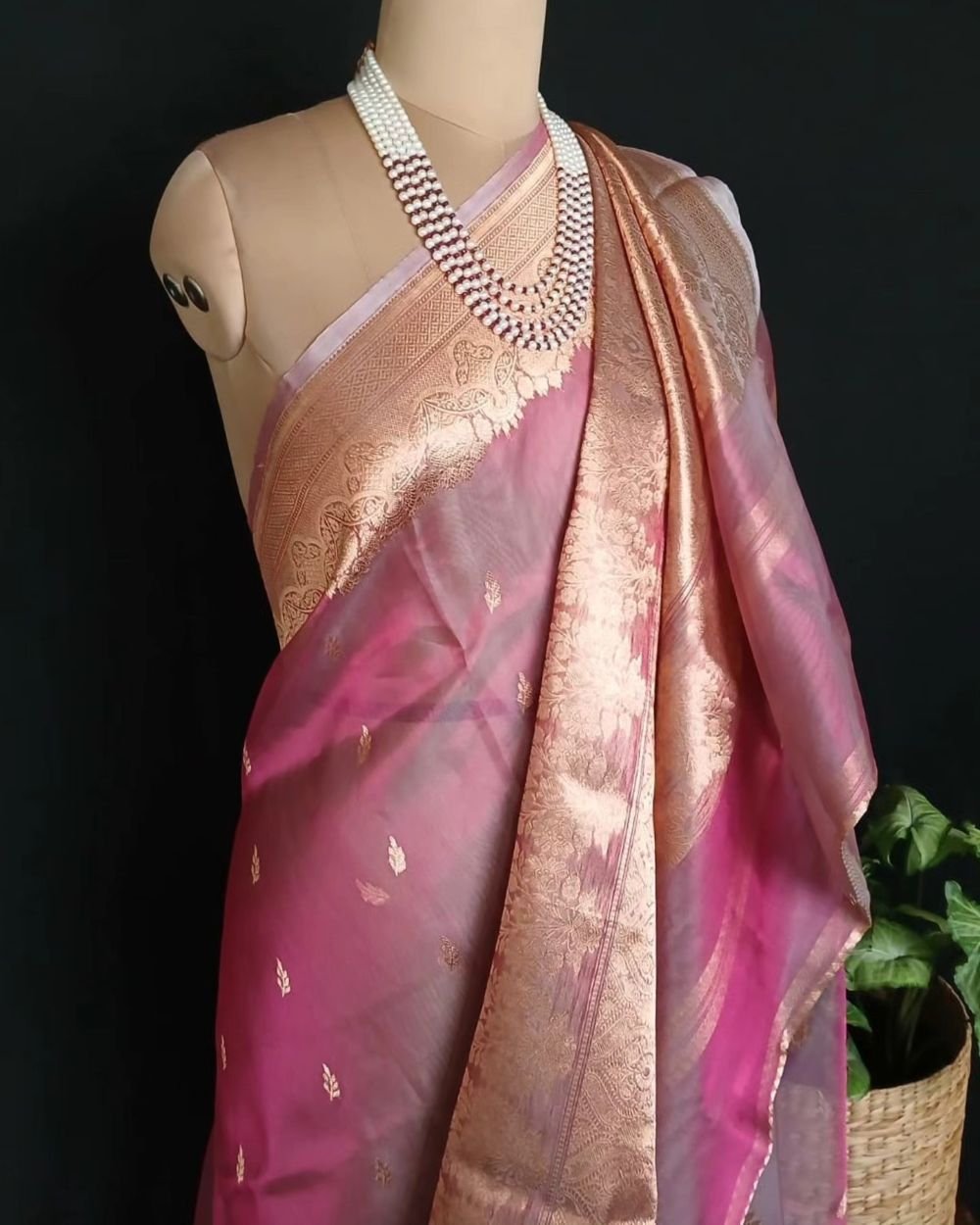 Sophisticated Tissue Zari Banarasi, ideal for wedding events and cocktail parties.