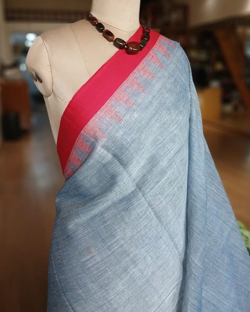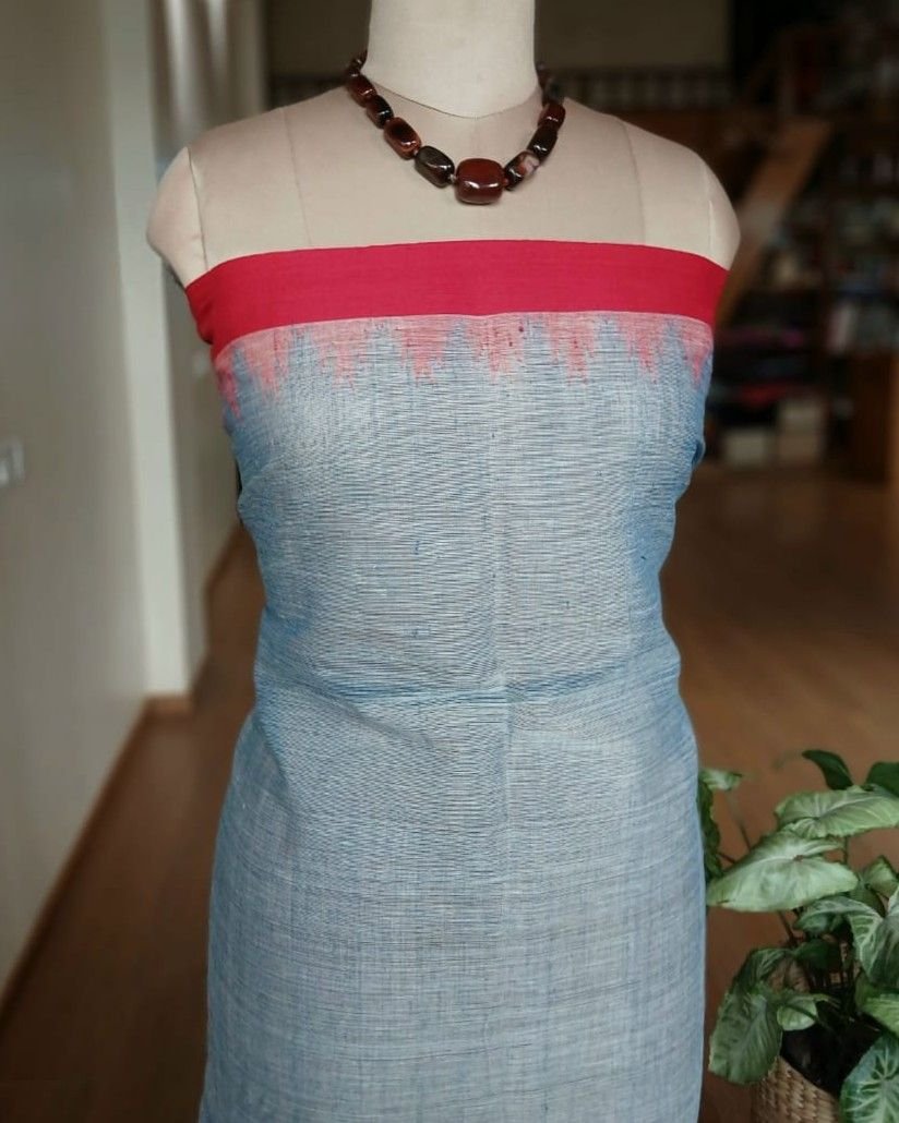 It’s an airy and light saree, with a kuppadam temple border and striped palla. Perfect for summer season.