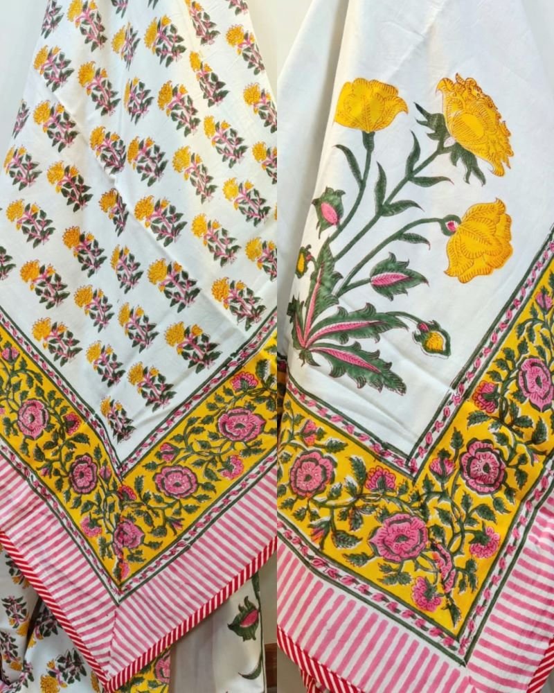 Light Reversible Cotton Handblock Dohar. Dohars are light comforters with a flannel cloth lining inside.
