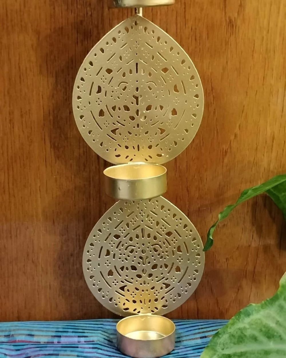 Tall Wall Candle Holder with 6 leaves from Kutch.