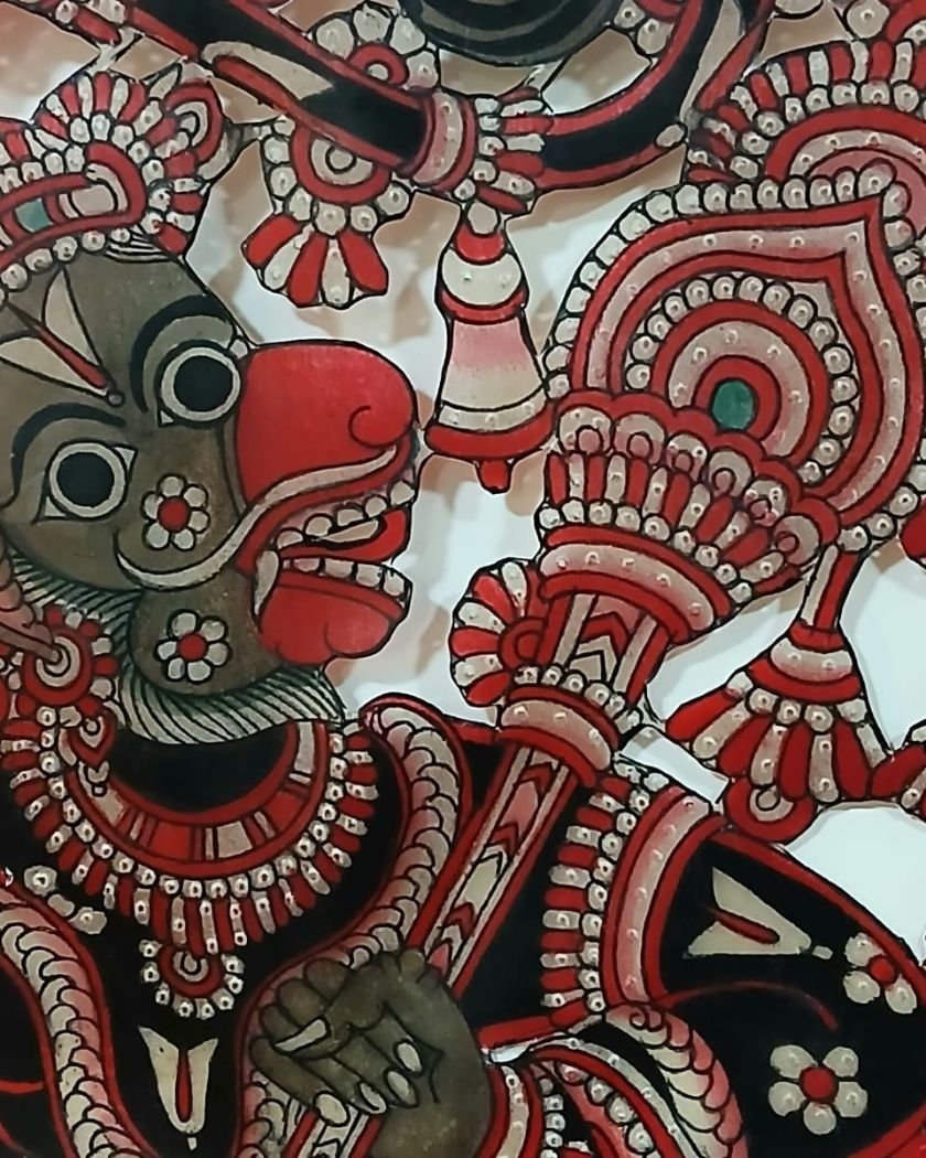 Hanuman holding Rama’s signet ring and Gada – Size 27 x 20 inches