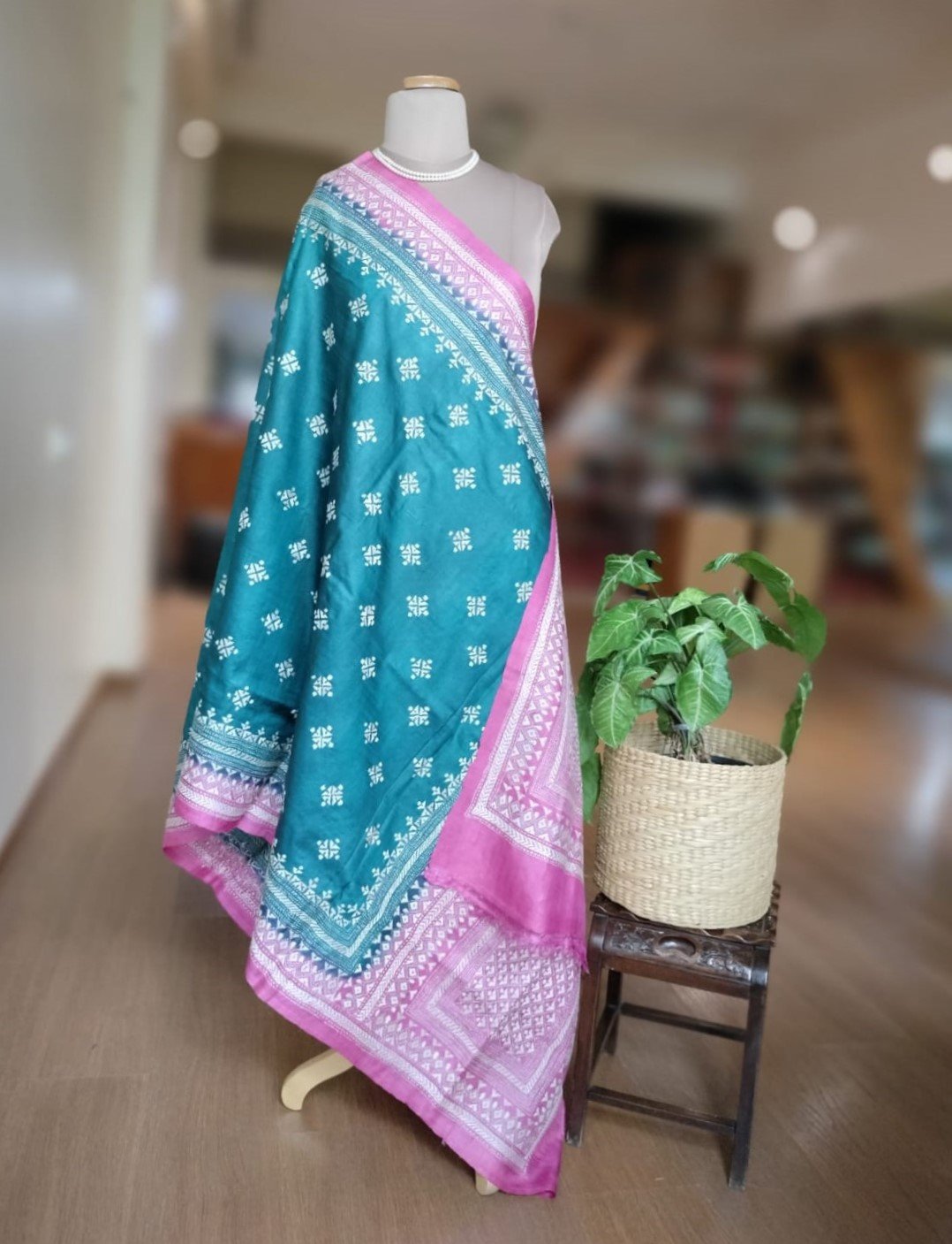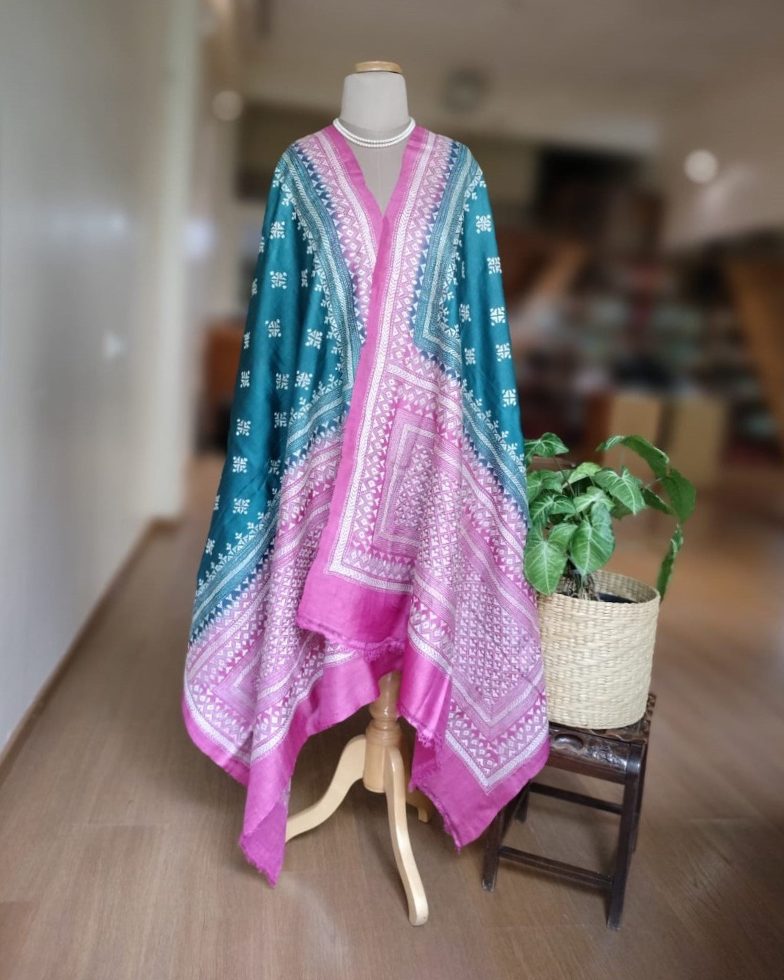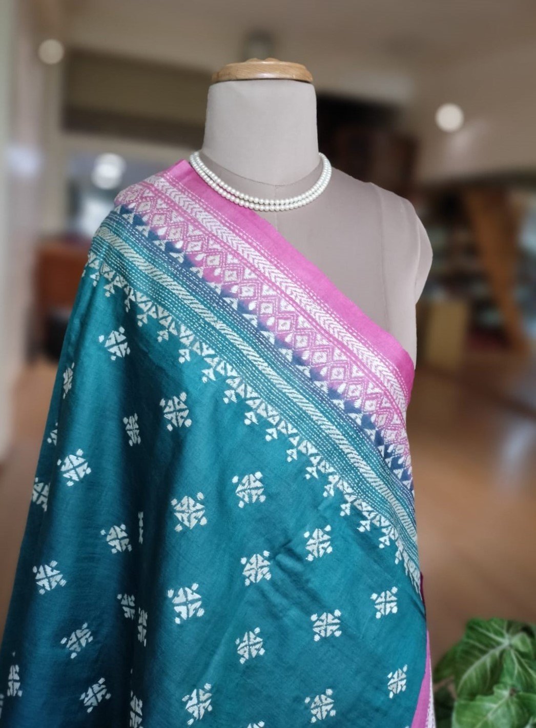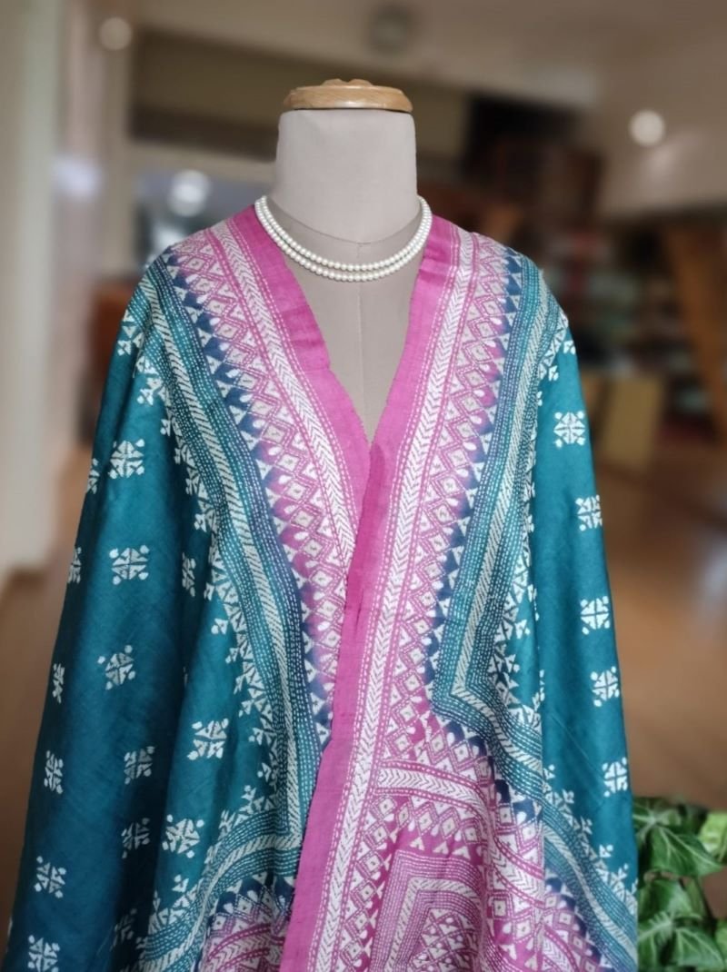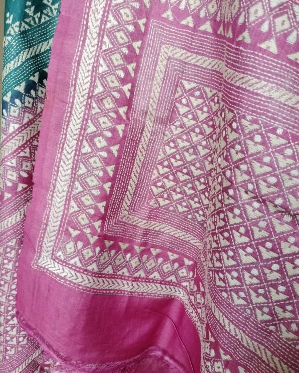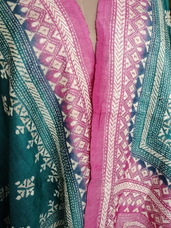 Tussar Silk Kantha Dupatta hand embroidered in Santiniketan in West Bengal