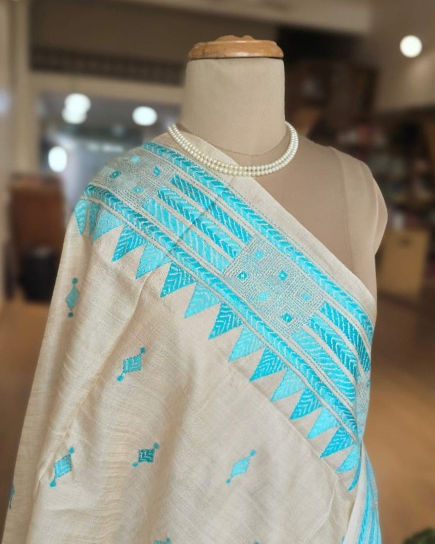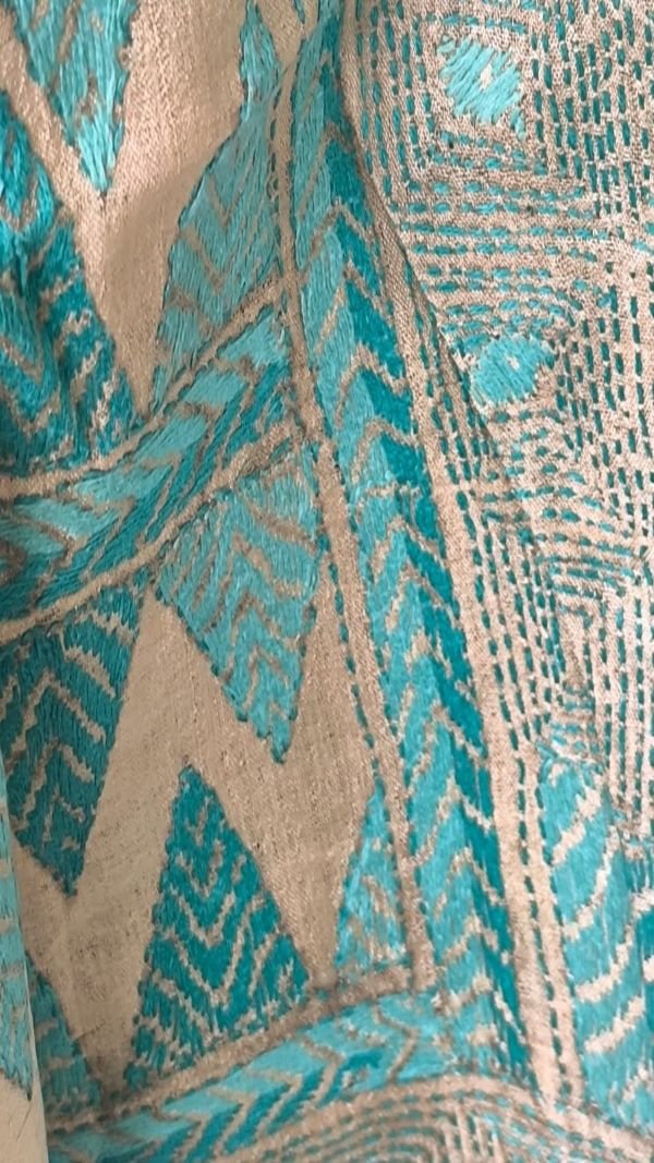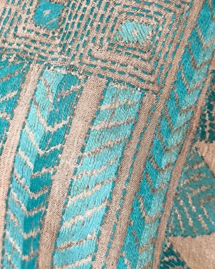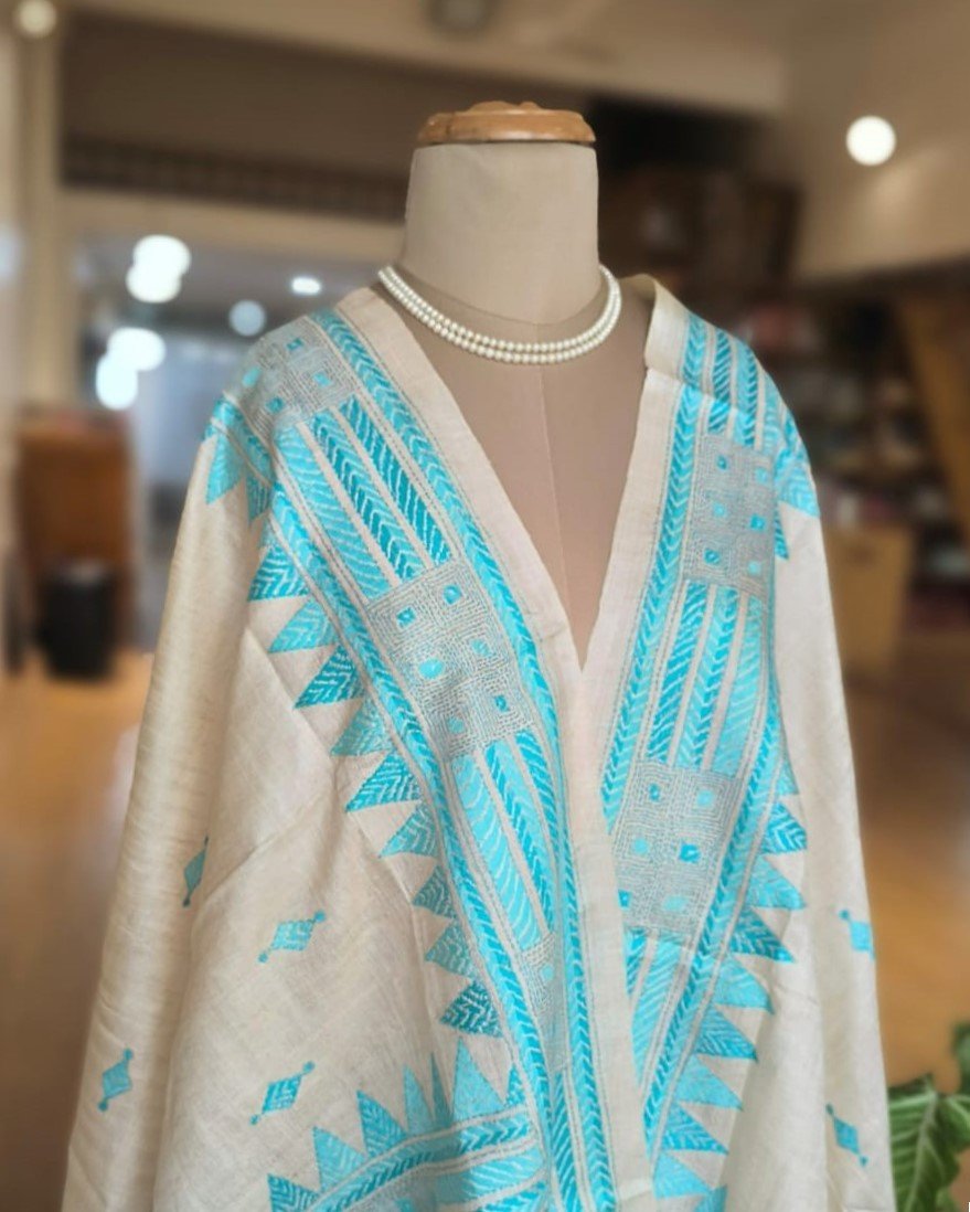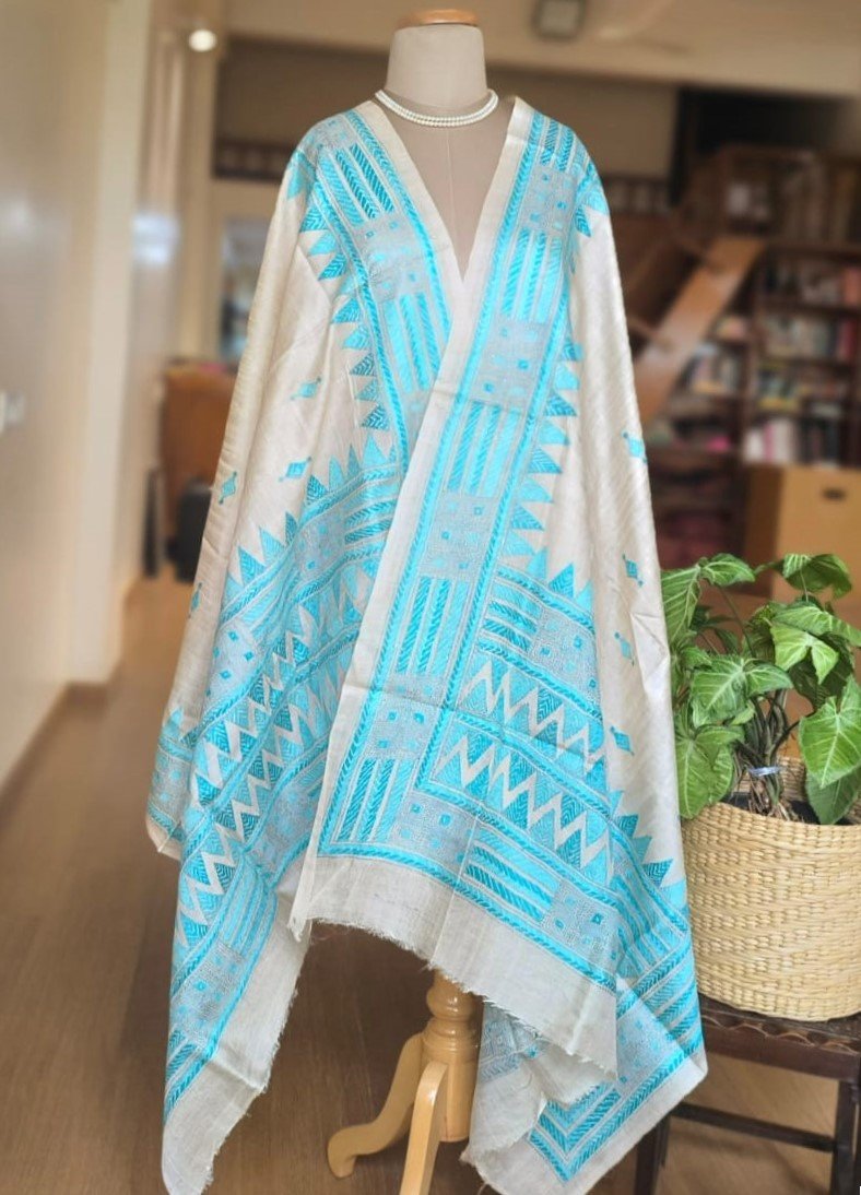Tussar Silk Kantha Dupatta hand embroidered in Santiniketan in West Bengal