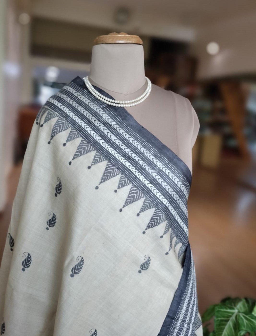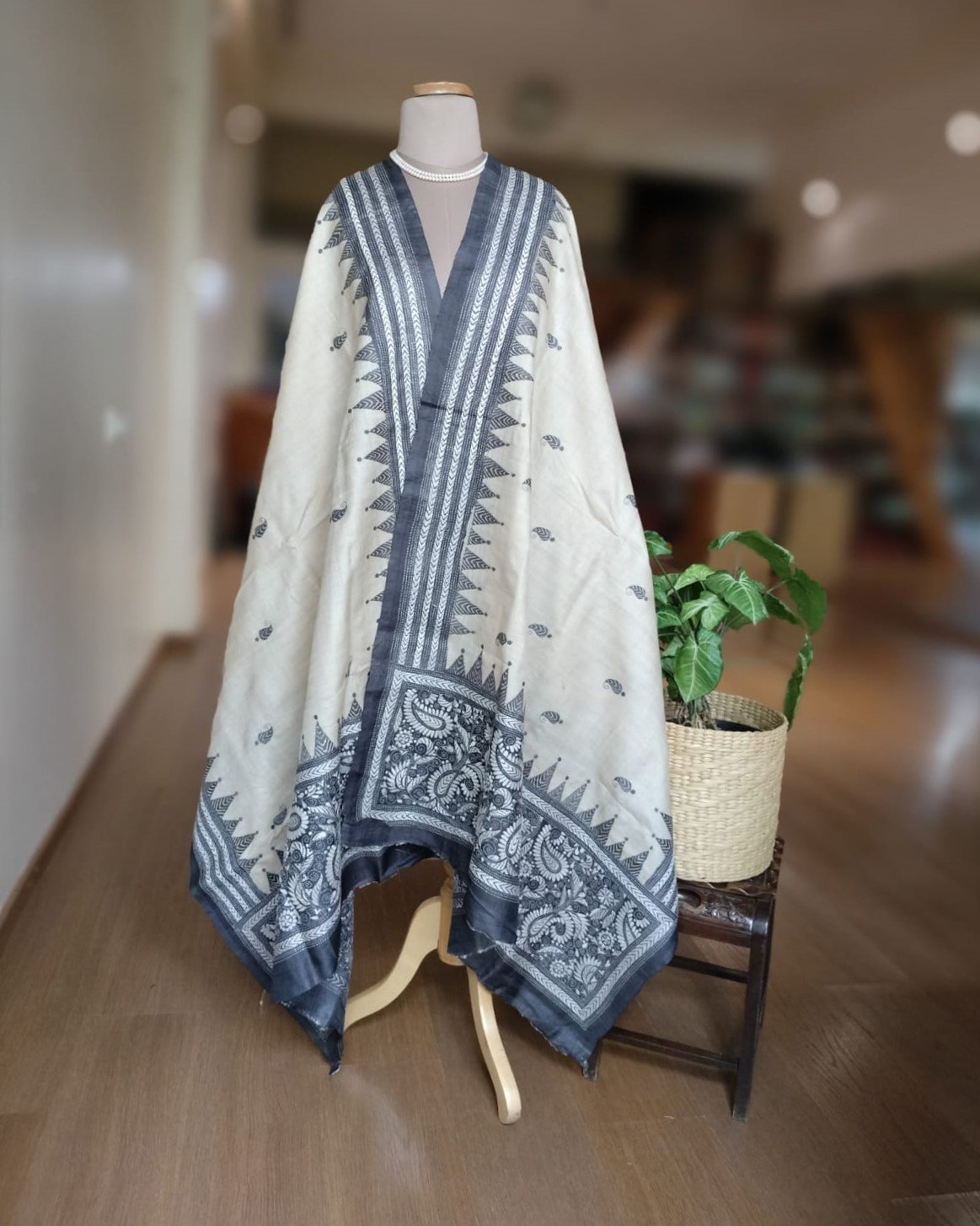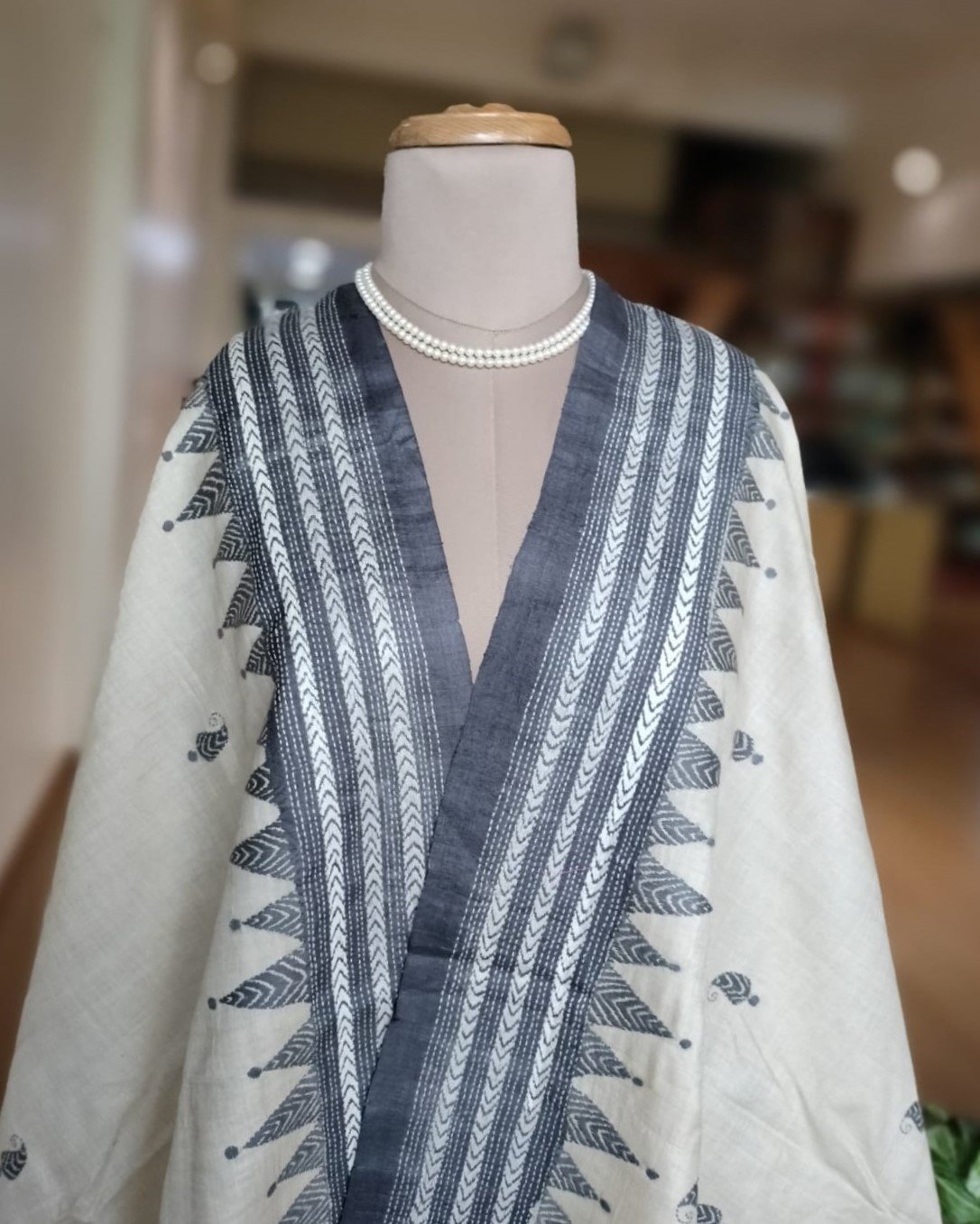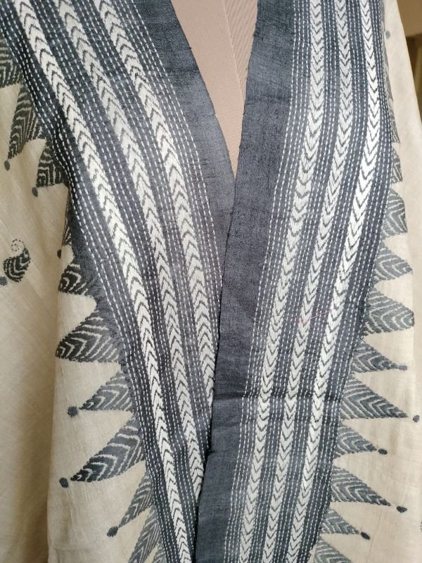 Tussar Silk Kantha Dupatta hand embroidered in Santiniketan in West Bengal