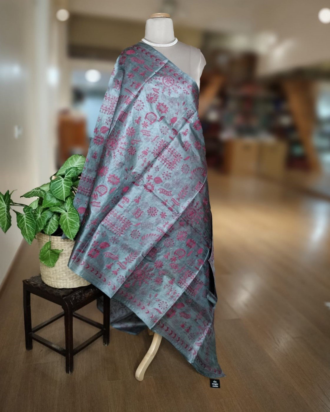 Tussar Silk Kantha Dupatta – Grey