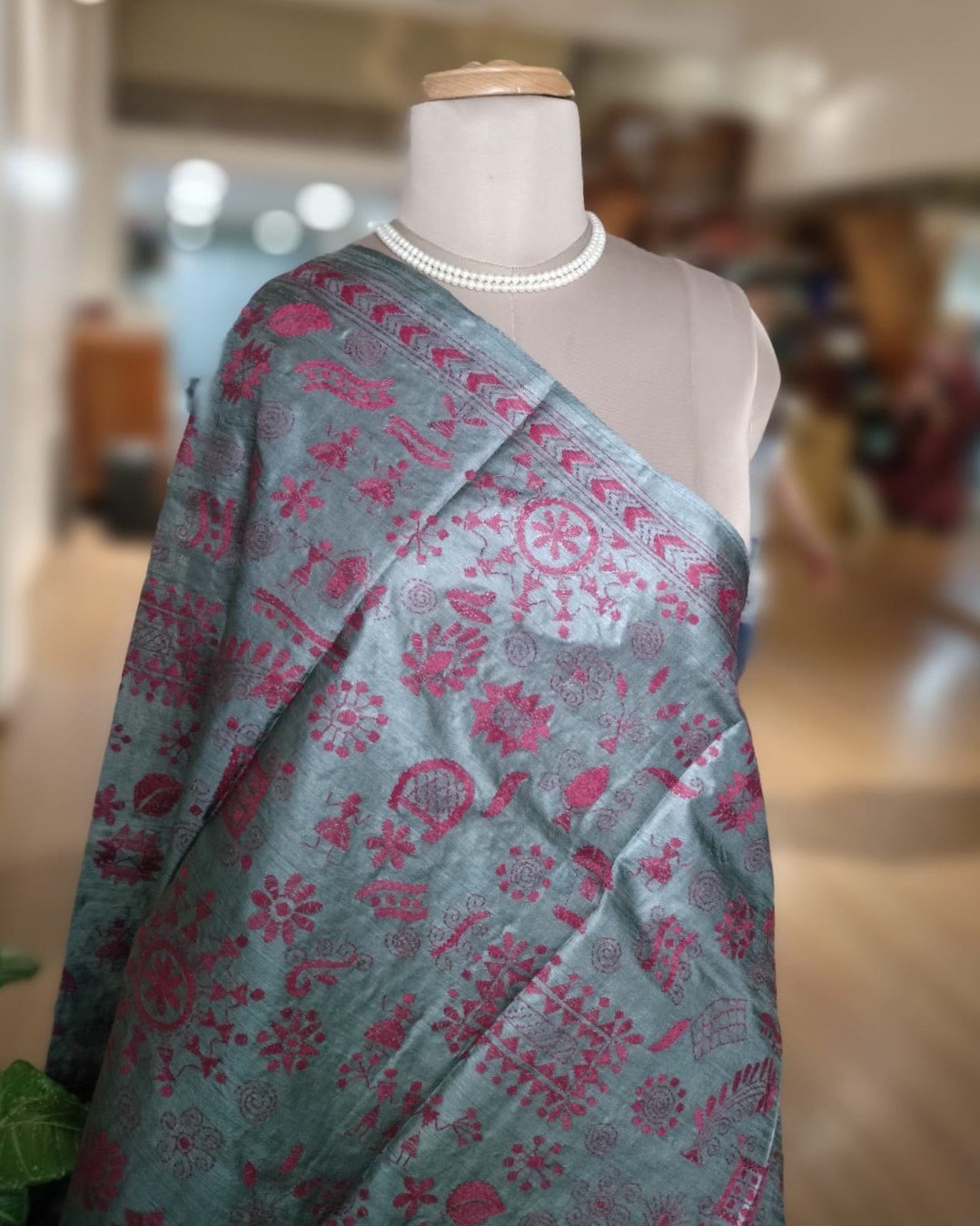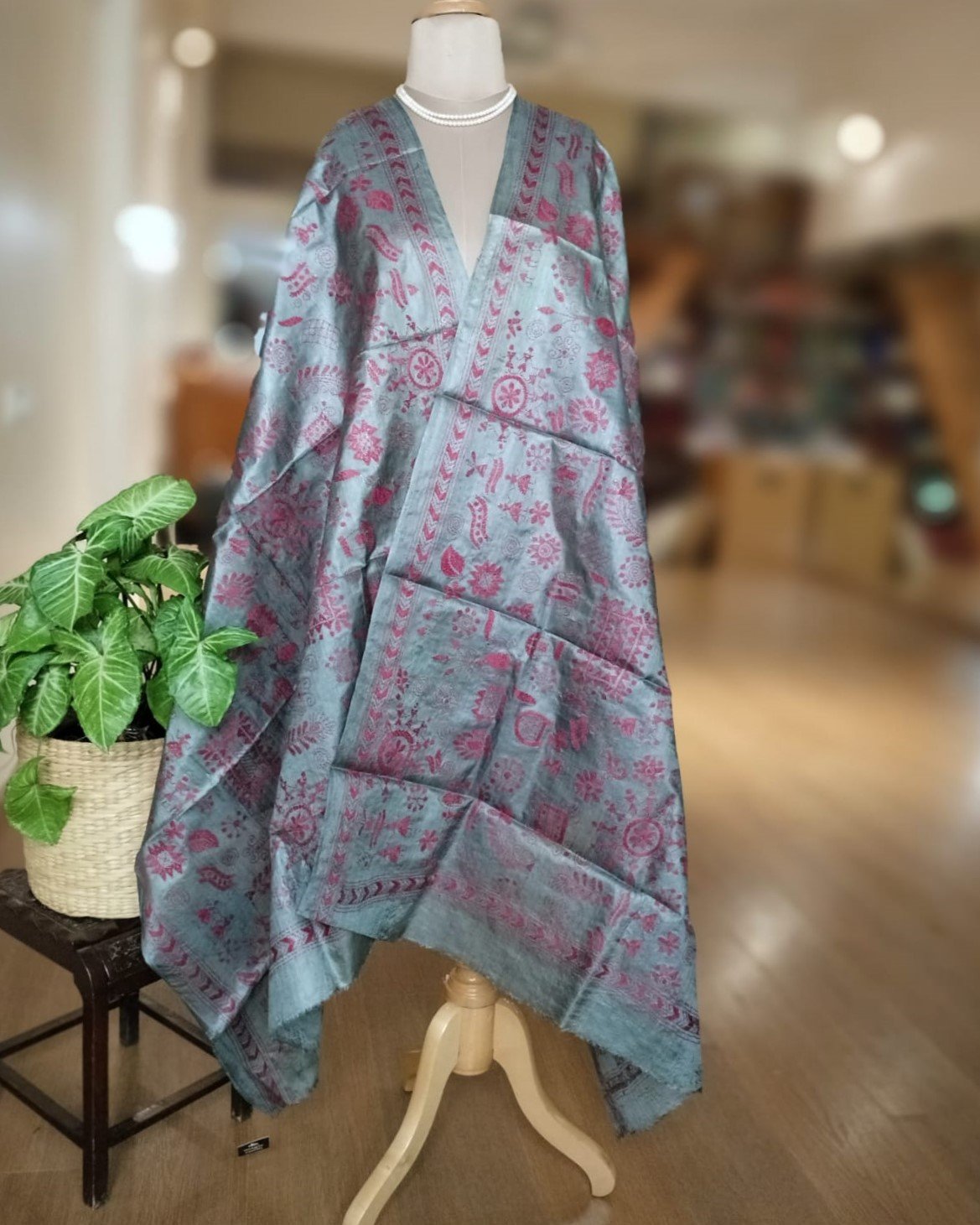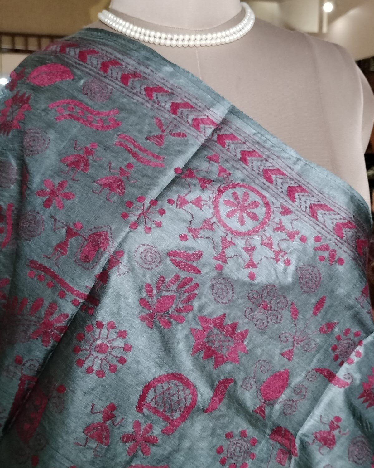 Tussar Silk Kantha Dupatta hand embroidered in Tantipur village of Bolpur in West Bengal