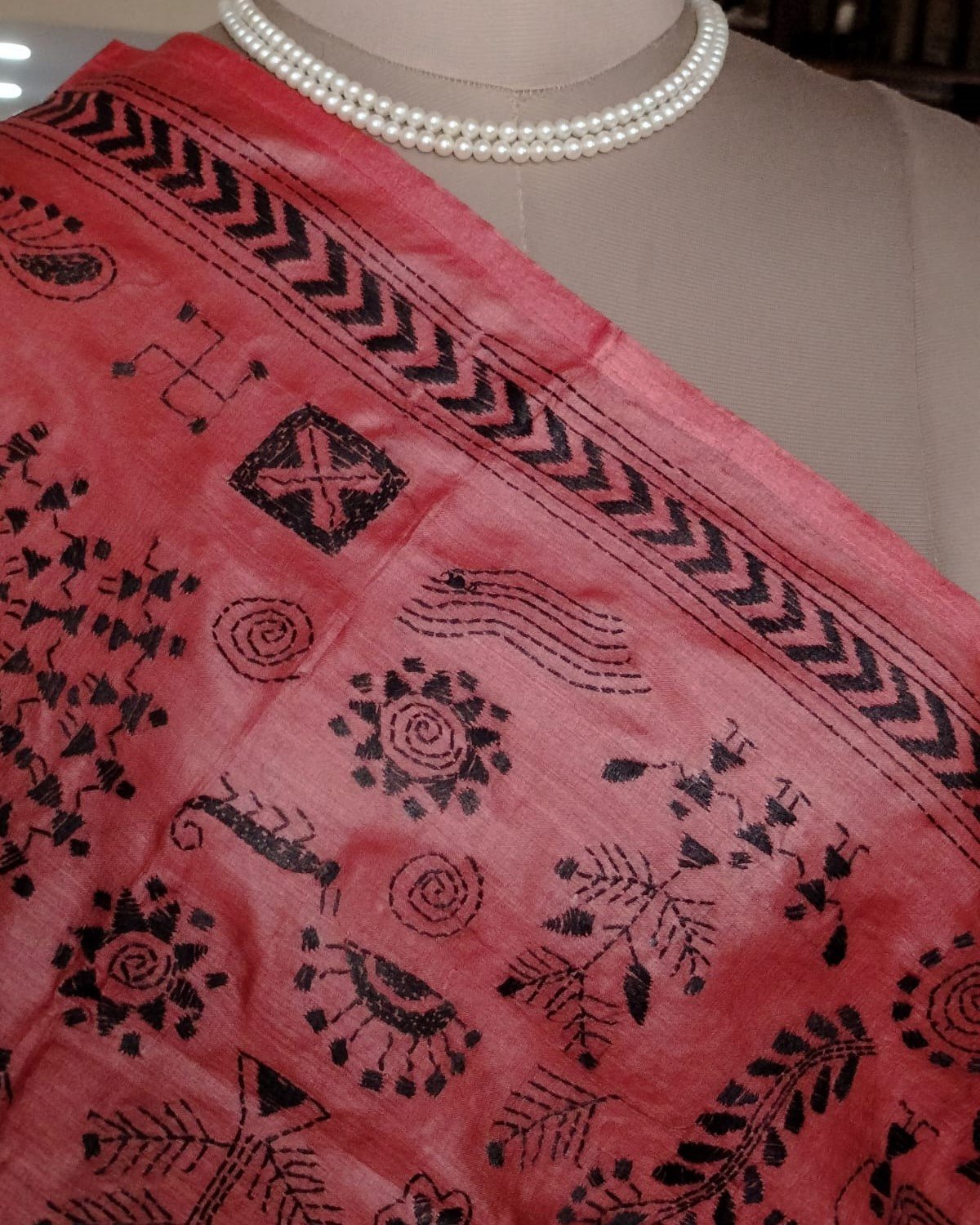 Tussar Silk Kantha Dupatta hand embroidered in Tantipur village of Bolpur in West Bengal