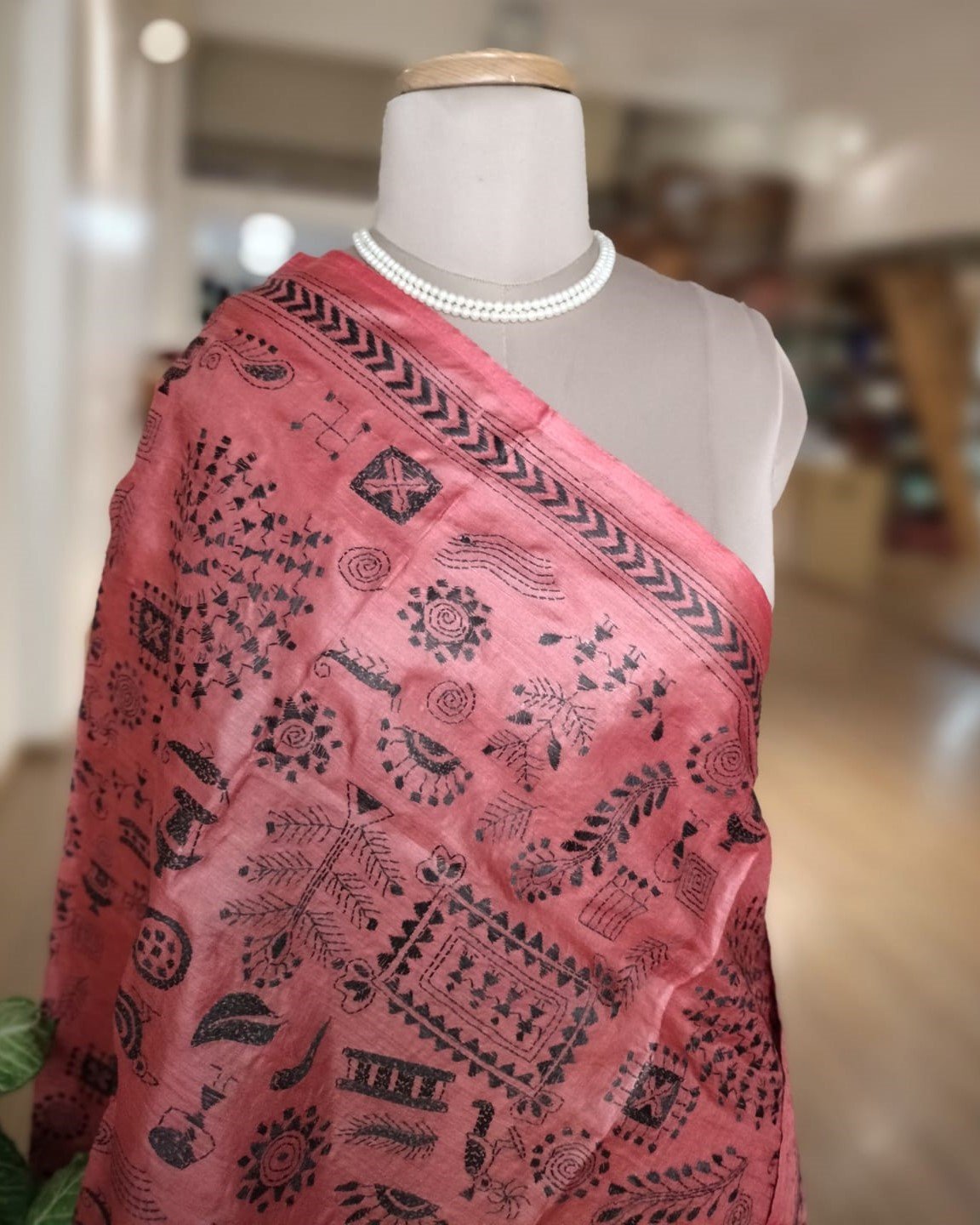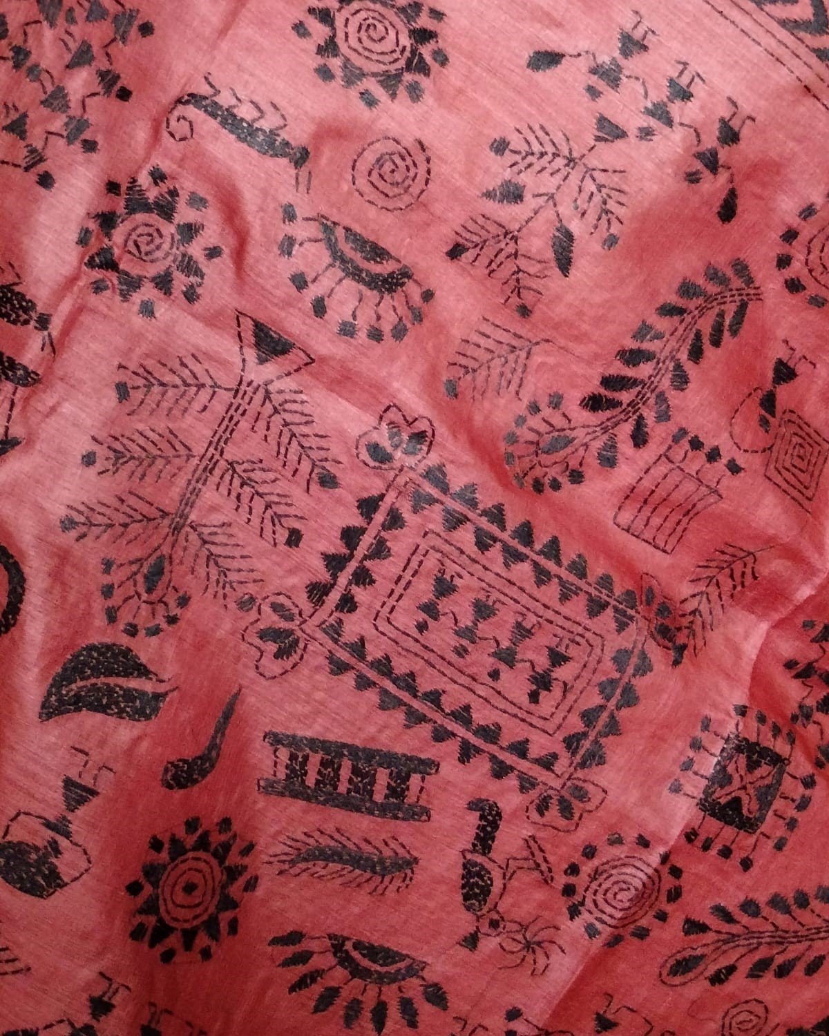 Tussar Silk Kantha Dupatta hand embroidered in West Bengal – Rust Brown