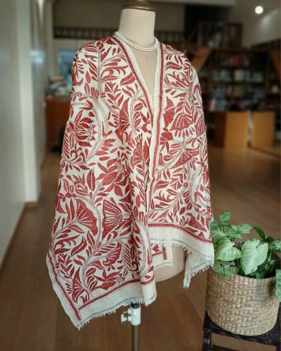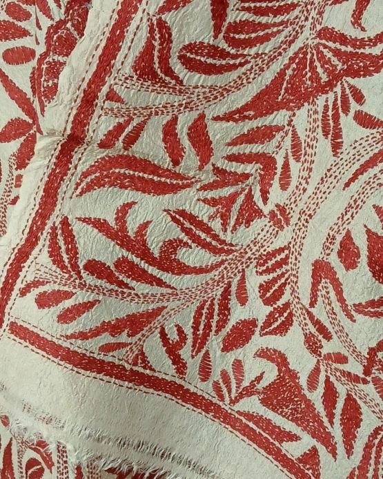 Tussar silk stole with kantha hand-embroidery, made in Santiniketan.